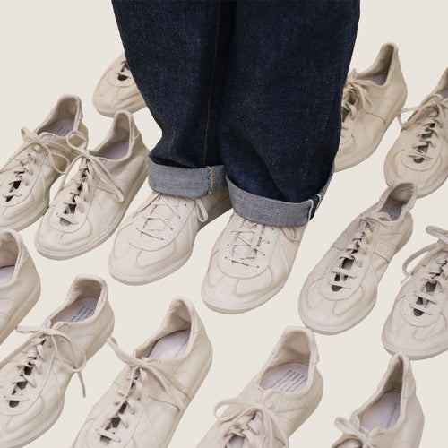 Kaptain Sunshinen Unlined KS Trainer PANNA on harkittu uudelleentulkinta klassisesta German Army Trainer -kengästä. Yhteistyössä Reproduction of Foundin kanssa valmistettu malli säilyttää alkuperäisen sotilaallisen DNA:n, mutta jalostaa sitä Kaptain Sunshinen tasapainoisella muotokielellä ja hienovaraisilla yksityiskohdilla.