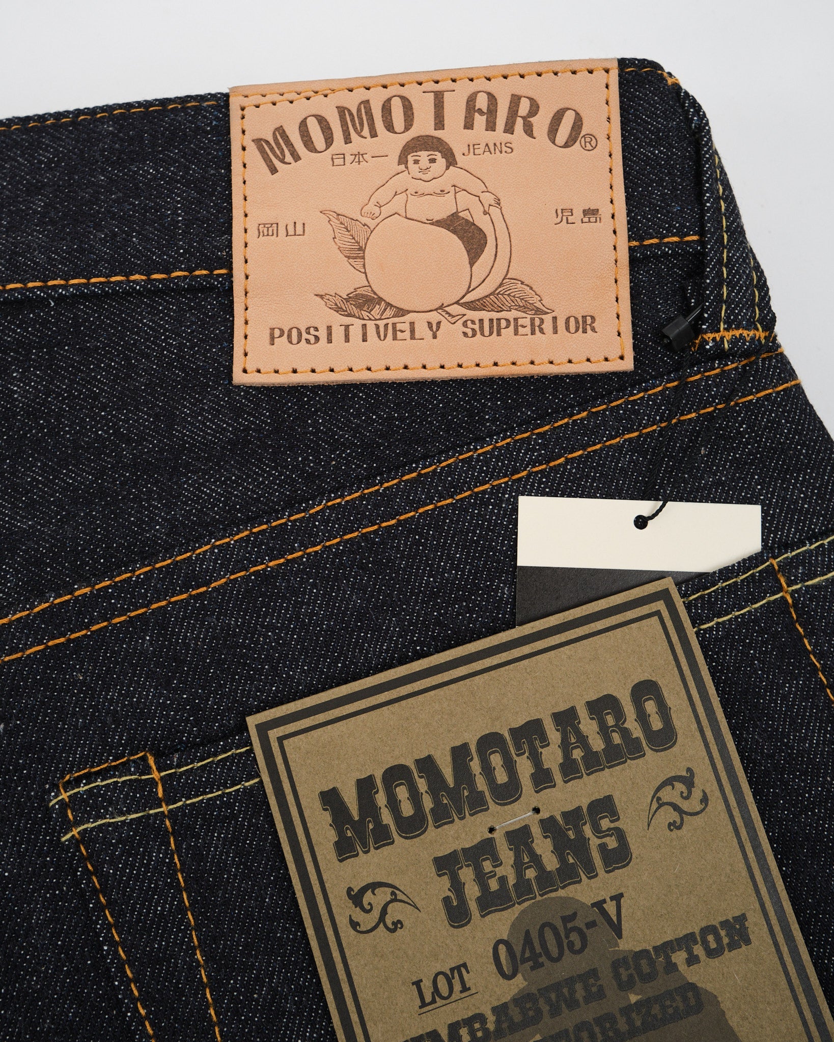 Koe käsityön huippu ja innovatiivinen kangassuunnittelu Momotaron 0405-V High Tapered -farkuissa. Collect Mills -osana Momotarolla on autonomia suunnitella ja kehittää räätälöityjä kankaita, yhdistäen edistynyttä teknologiaa ja ainutlaatuisia ominaisuuksia tuottaakseen laadukasta denimiä. Tämä erityinen 15,7 unssin reunasilkkikangas on valmistettu talon sisällä, käyttäen pitkäkuituista Zimbabwelaista puuvillaa, mikä tuloksena on kangas, joka on sekä pehmeämpi että vahvempi kuin kilpailijoillaan.