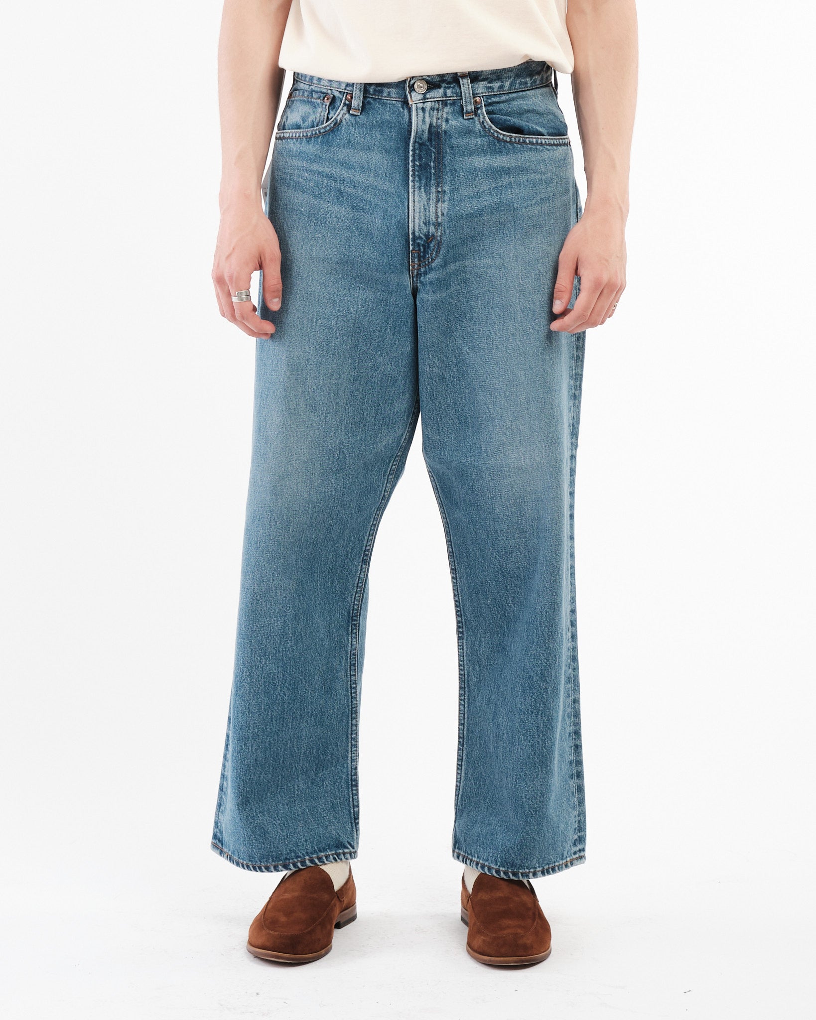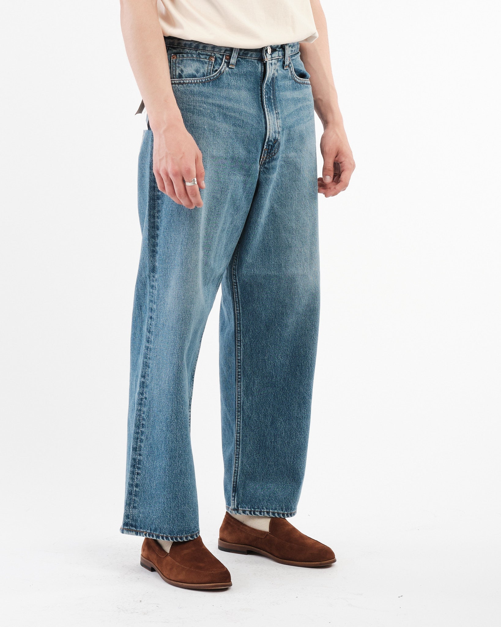 Valmistettu korkealaatuisesta japanilaisesta denimistä, nämä housut on esipesty saavuttamaan pehmeä, sisäänajettu tunne heti ensimmäisestä käytöstä. "Denim Used" viimeistely tarjoaa vintage, eletyn näköisen ulkonäön, lisäten luonnetta vaatteeseen. Klassinen viiden taskun rakenne takaa käytännöllisyyden, kun taas vetoketjusepalus ja räätälöidyt metalliosat parantavat kestävyyttä ja toiminnallisuutta.