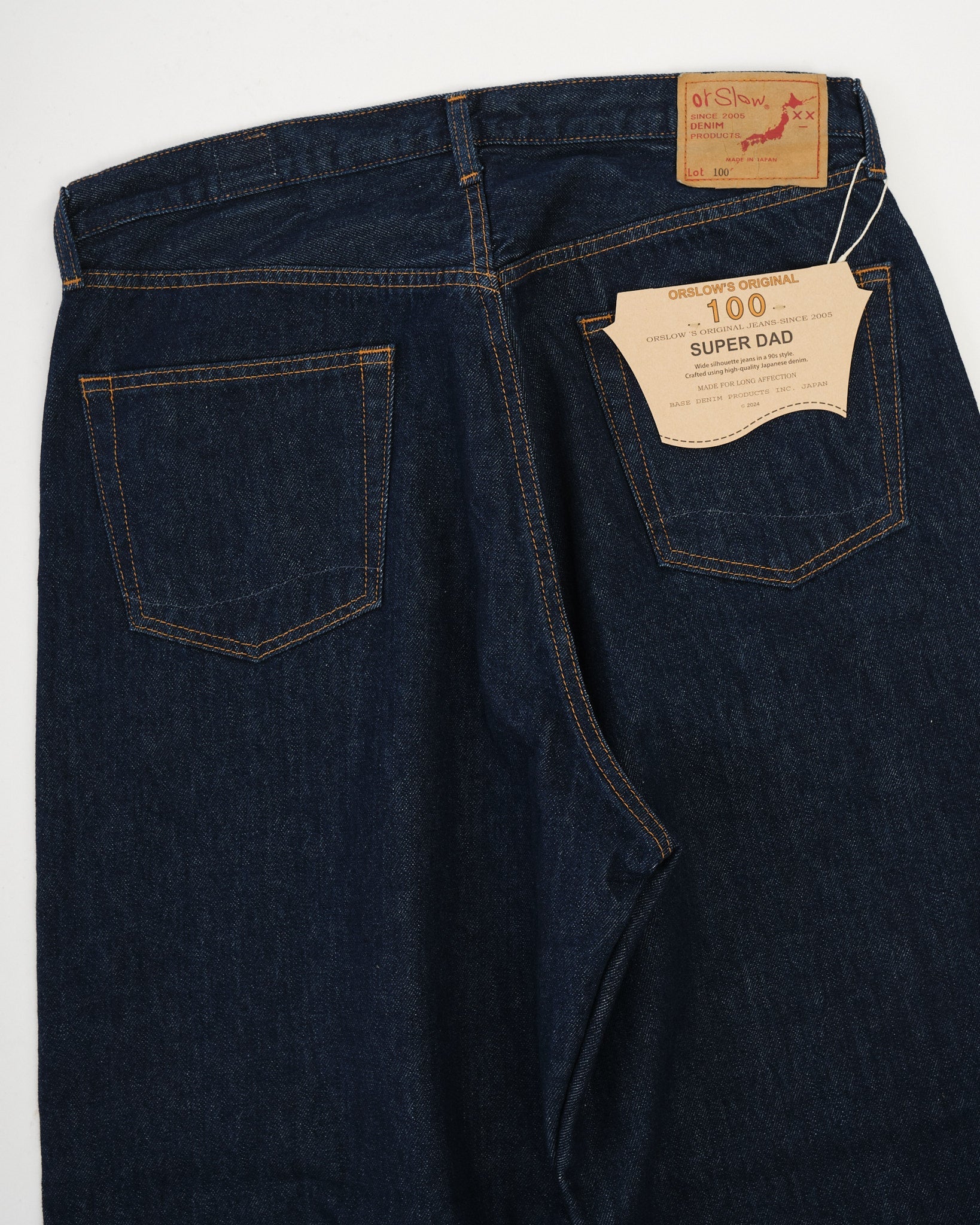 Löydä uudelleen 90-luvun ydin Orslows 100 Super Dads Denim -housuilla. Nämä farkut on suunniteltu herättämään nostalgian tunnetta samalla kun ne sisältävät tyylikkään ilmeen, joka tarjoaa mukavan ja tilavan istuvuuden, mikä täydentää tämän päivän muotitrendejä. Laadukkaasta 13,5 unssin japanilaisesta denimi-kankaasta valmistetut ja erikoisella yhden pesun käsittelyllä viimeistellyt housut yhdistävät saumattomasti huippuluokan käsityötaitoa rennon mutta tyylikkään viban kanssa.