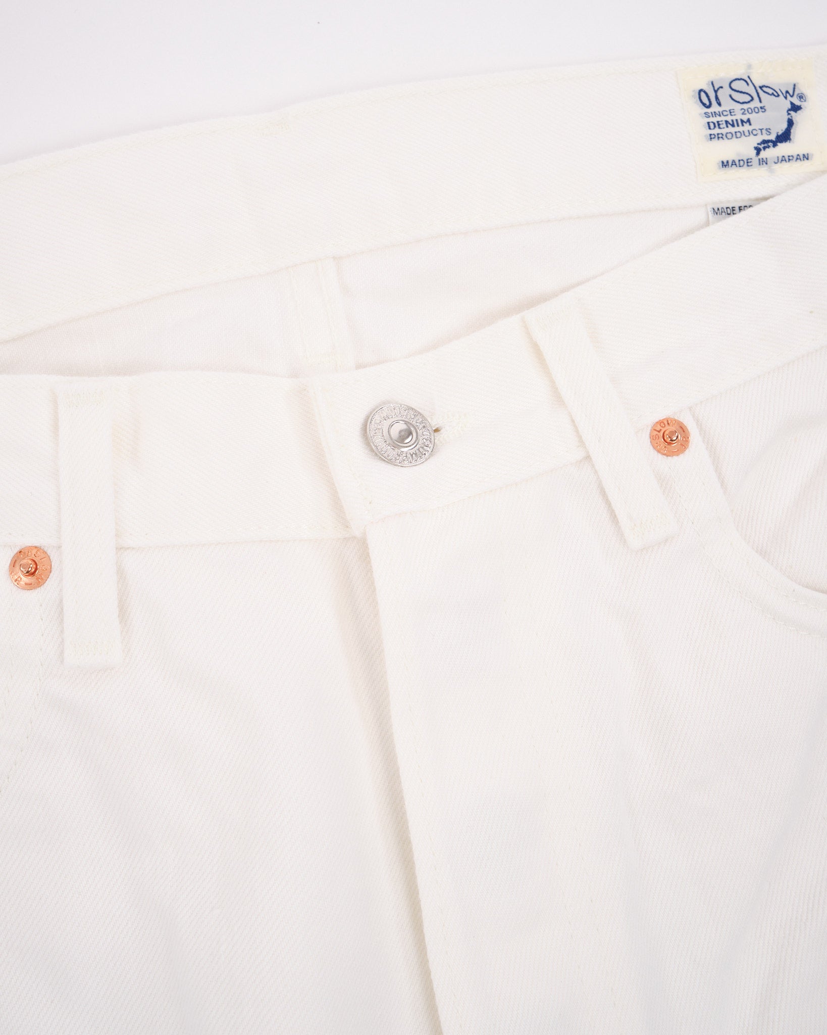 Koe yksinkertaisuuden ja kestävyyden yhdistelmä orSlows 105 80s White -farkuissa. Japanissa taidokkaasti valmistetut farkut henkivät 80-luvun tunnelmaa niiden rentojen linjojen ja korkealaatuisen 13,5 oz:n ei-selvää denimin ansiosta. Monikäyttöiset ja tyyliltään ajattomat nämä farkut eivät sovi ainoastaan kesäkauteen. 100% puuvillakangas takaa mukavuuden, kun taas nappilista ja viiden taskun design lisäävät käytännöllisyyttä. Yhdistä nämä valkoiset farkut tennareiden ja farkkupaidan kanssa ajattomaan lookiin tai pue päälle M 65 -takki tehdäksesi rohkean muotilauseen.