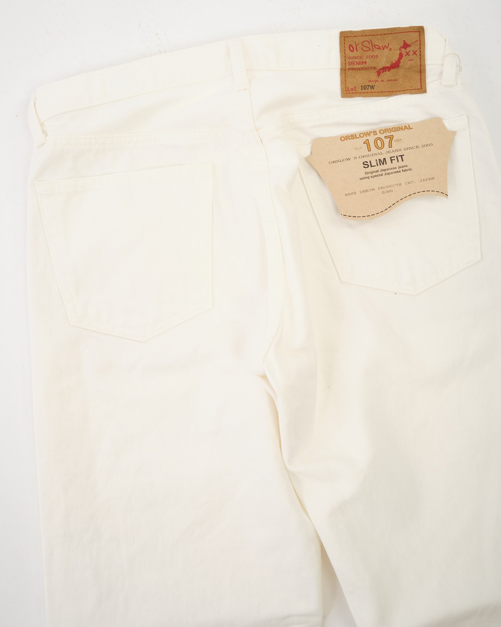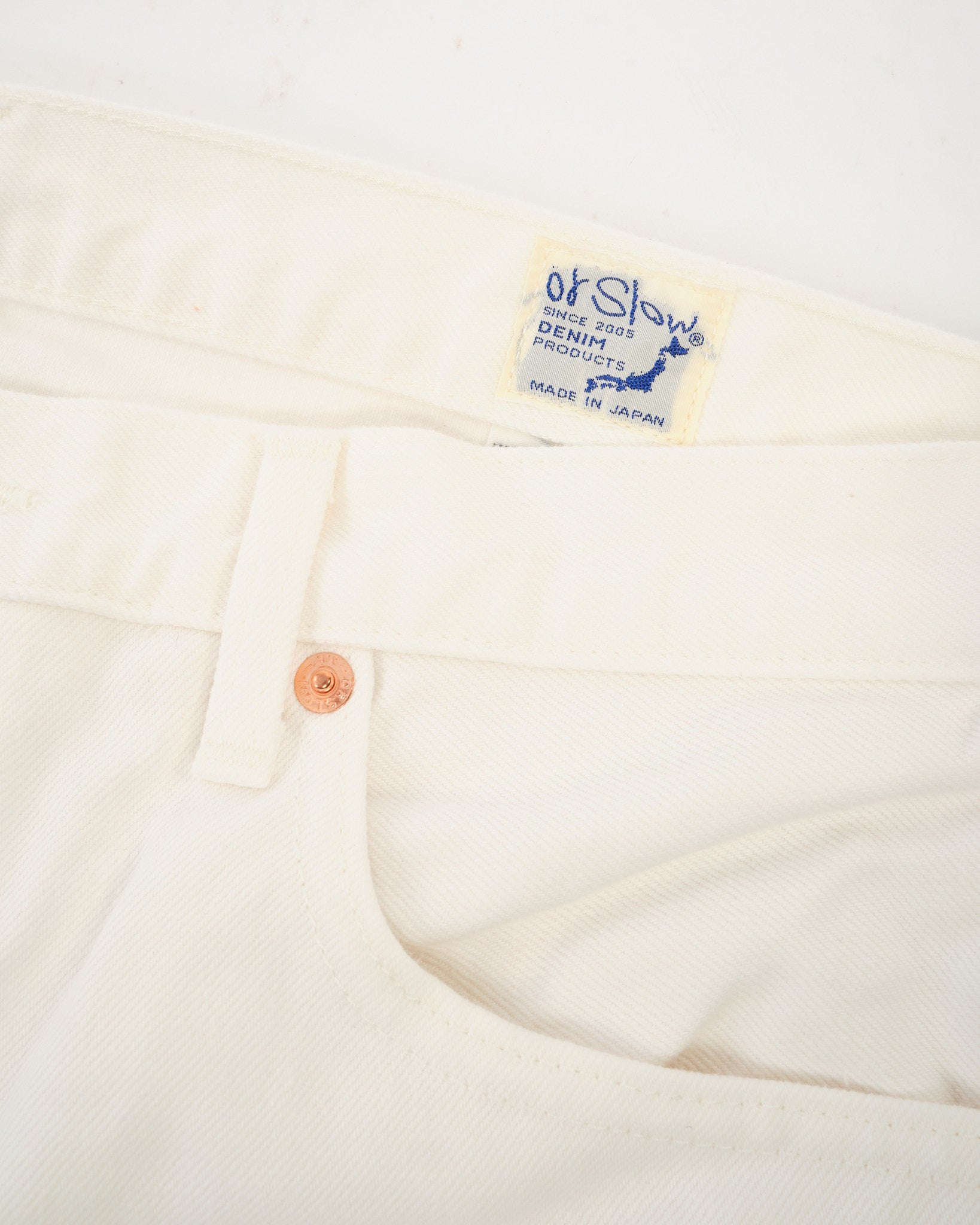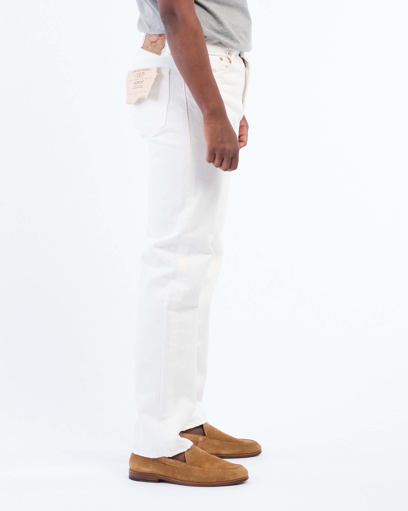 orSlow 107 Ivy Fit White Denim on hienostunut otos klassisesta Ivy League -inspiroidusta denimiistä, joka yhdistää perinteisen räätälöinnin huippuluokan japanilaiseen käsityötaitoon. Suunniteltu niille, jotka arvostavat puhdasta, sofistikoitunutta siluettia, tässä farkkuparissa on kapea kapeneva istuvuus, tarjoten modernin mutta ajattoman ilmeen.