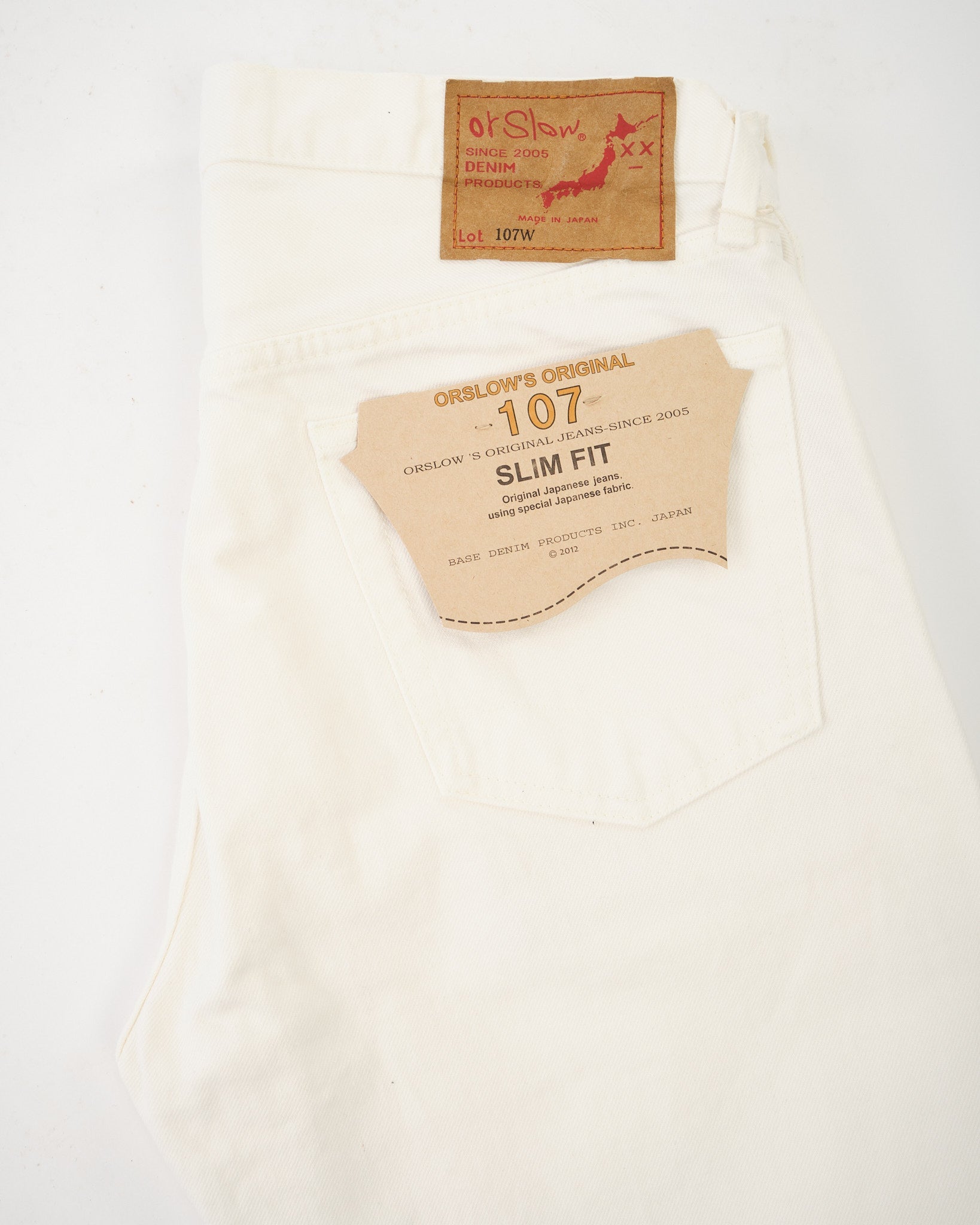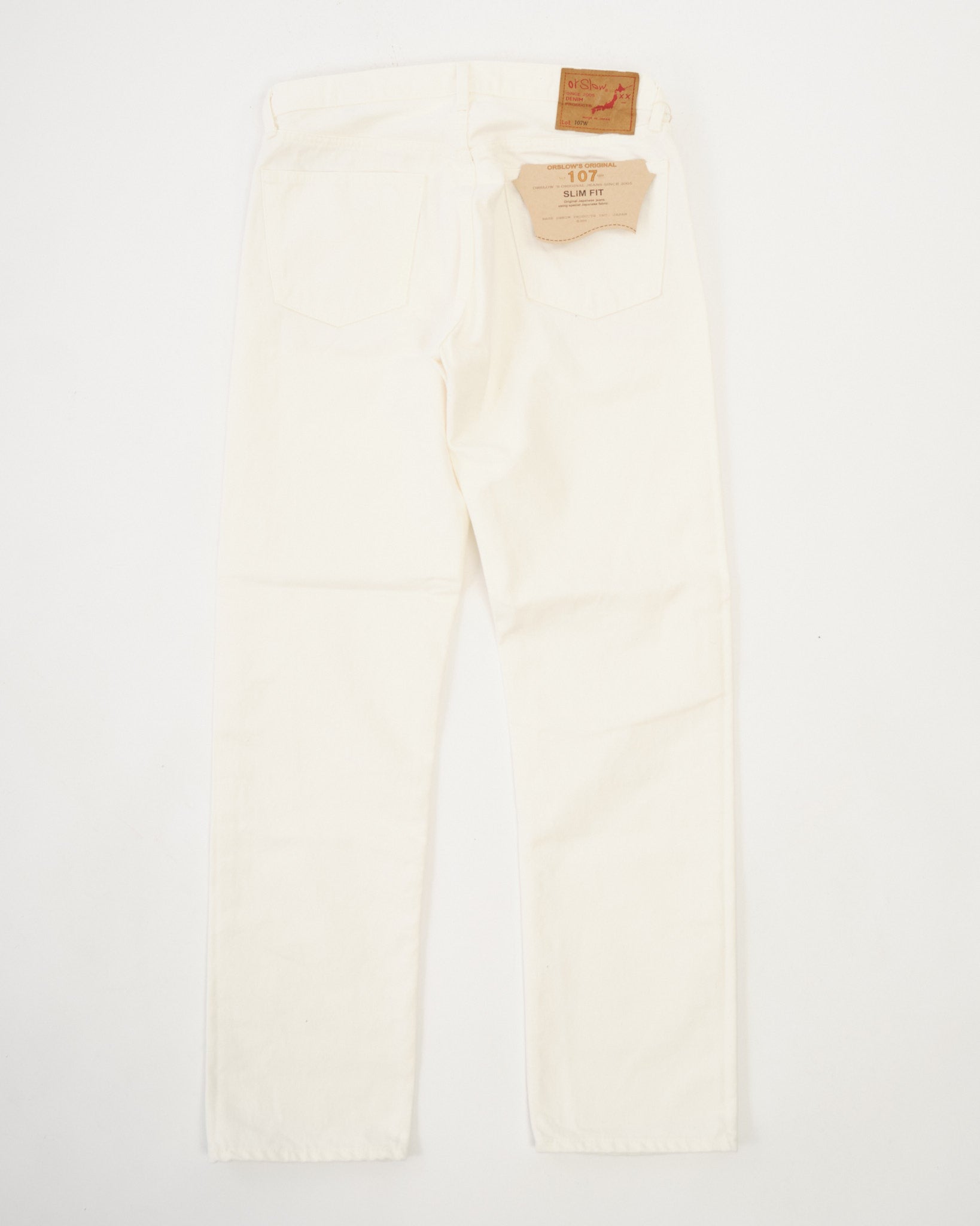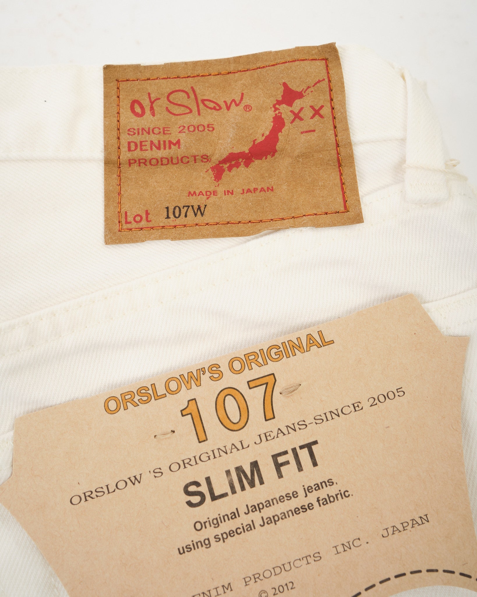 orSlow 107 Ivy Fit White Denim on hienostunut otos klassisesta Ivy League -inspiroidusta denimiistä, joka yhdistää perinteisen räätälöinnin huippuluokan japanilaiseen käsityötaitoon. Suunniteltu niille, jotka arvostavat puhdasta, sofistikoitunutta siluettia, tässä farkkuparissa on kapea kapeneva istuvuus, tarjoten modernin mutta ajattoman ilmeen.