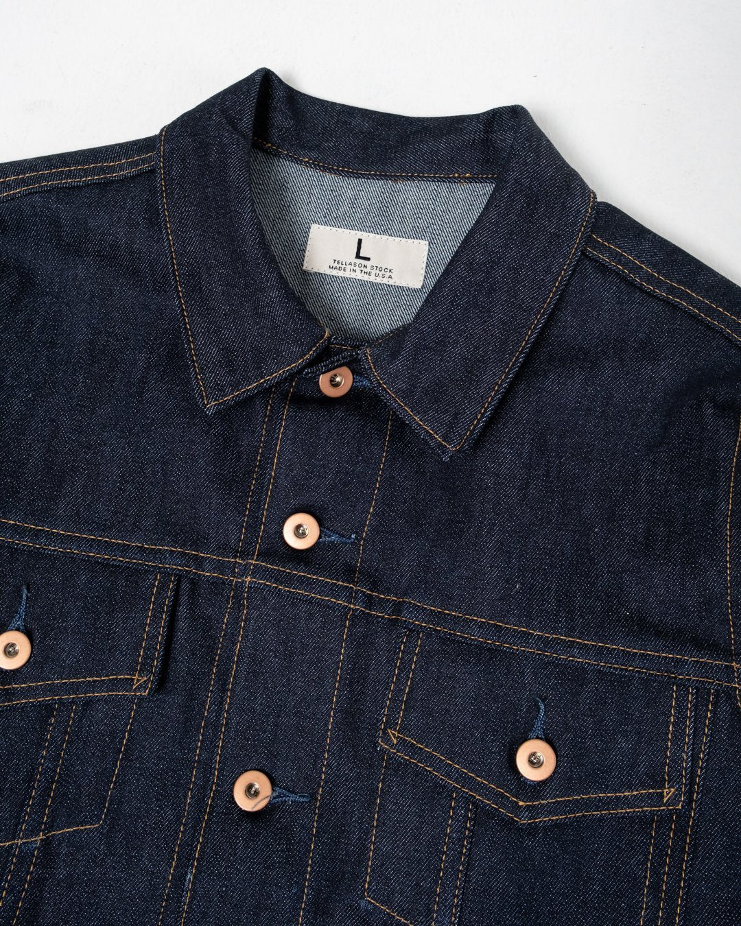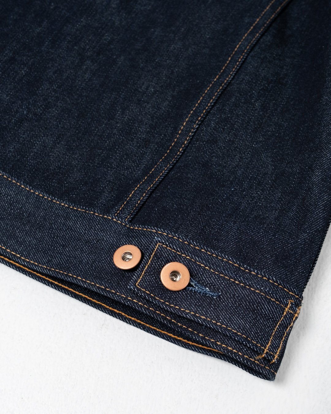 7. Kestävä denim: 14 oz:n Cone Mills -denimin käyttö takaa, että takki kestää aikaa.