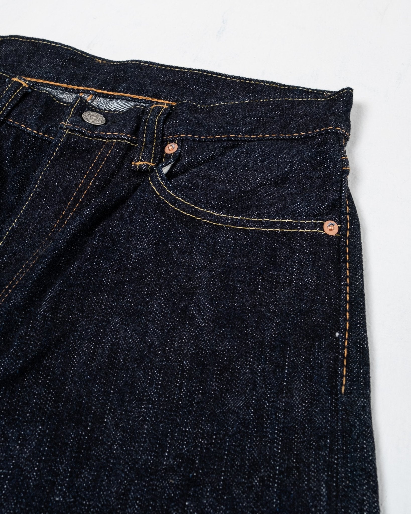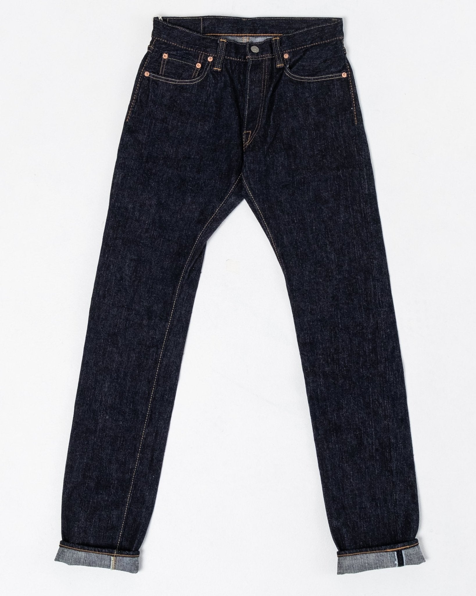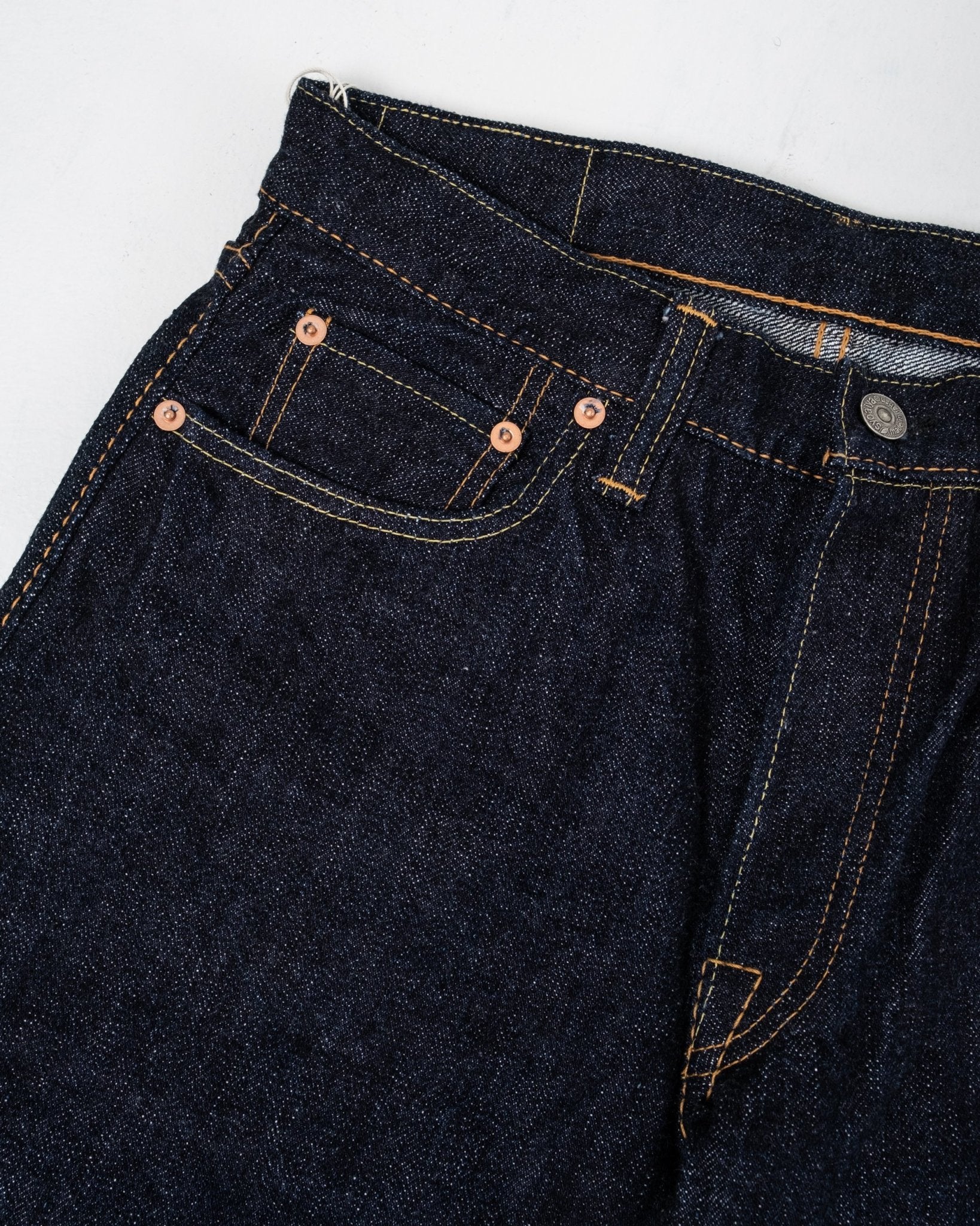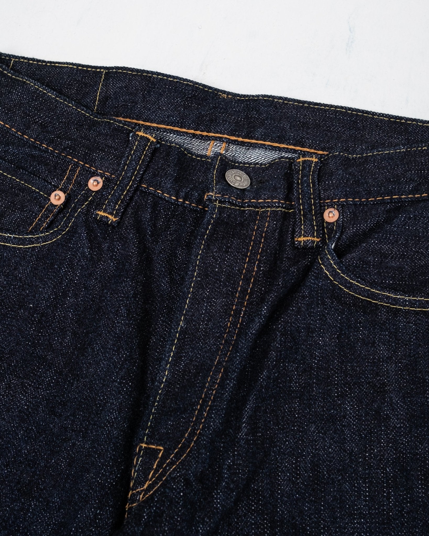 14 Oz Tapered Slim Wash Indigo XX-013 Pure Blue Japanilta. Kankaana käytetään 14 oz raakadenimiä, joka on pesty kerran mukavamman istuvuuden saavuttamiseksi, ja myös siksi, ettei sinun tarvitse huolehtia kutistumisesta pesun yhteydessä. Valmistettu muokatulla matalajännitteisellä sukkulakudontakoneella ja köysivärjätty puhtaalla indigolla. Tuloksena on kankaan kaunis slubirakenne. Kaikki Pure Blue Japanin klassiset farkut on valmistettu yhden kudontakoneen denimiä käyttäen, mikä tarkoittaa, että vuosituotanto on uskomattoman rajattu. Valmistettu Japanissa.