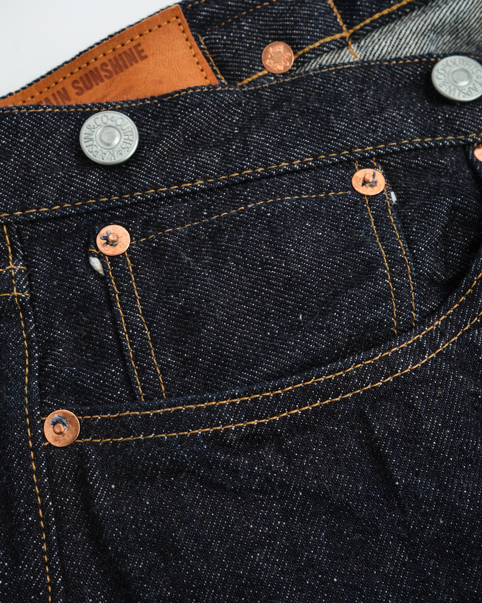 KAPTAIN SUNSHINE 1930 Straight Denim Pants (KSBS201DZ) Indigo One Wash ovat kunnianosoitus vintage-denimkäsityötaidolle. Nämä housut on valmistettu 13,5oz Selvedge-denimistä, värjätty puhtaalla indigolla, ja niihin on lisätty luonnollista nukkaa käyttäen korkealaatuista San Joaquin -puuvillaa, joka on peräisin pitkään perustetulta riisipuuvillan tuotantoalueelta.