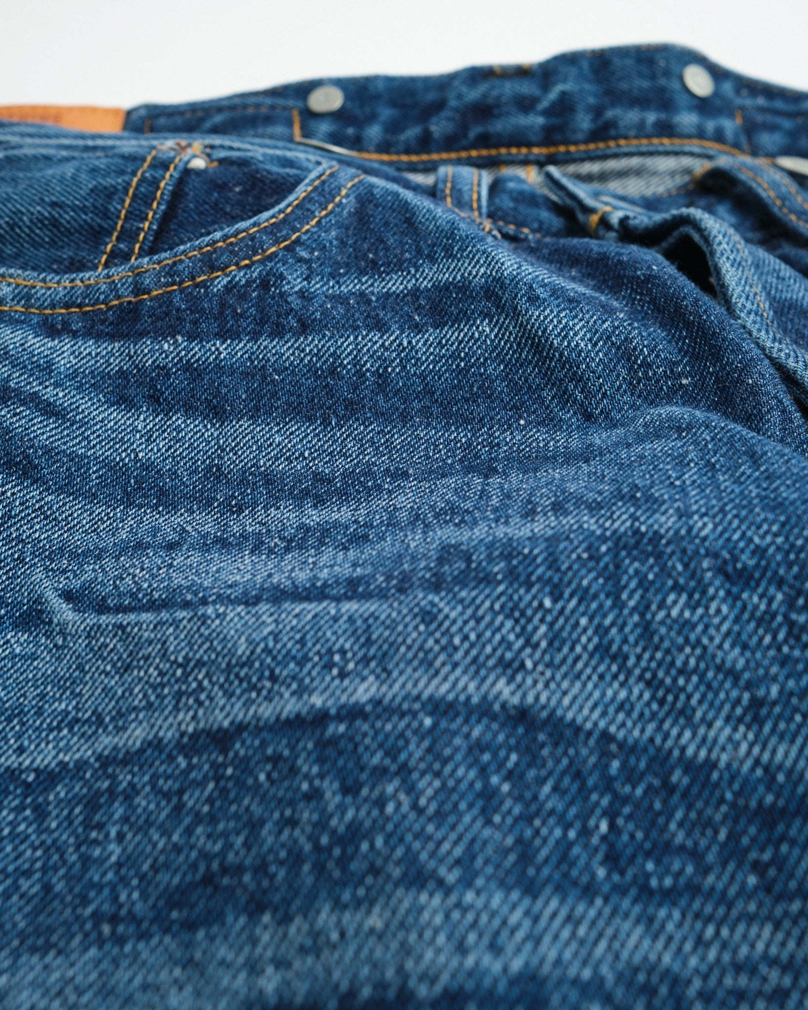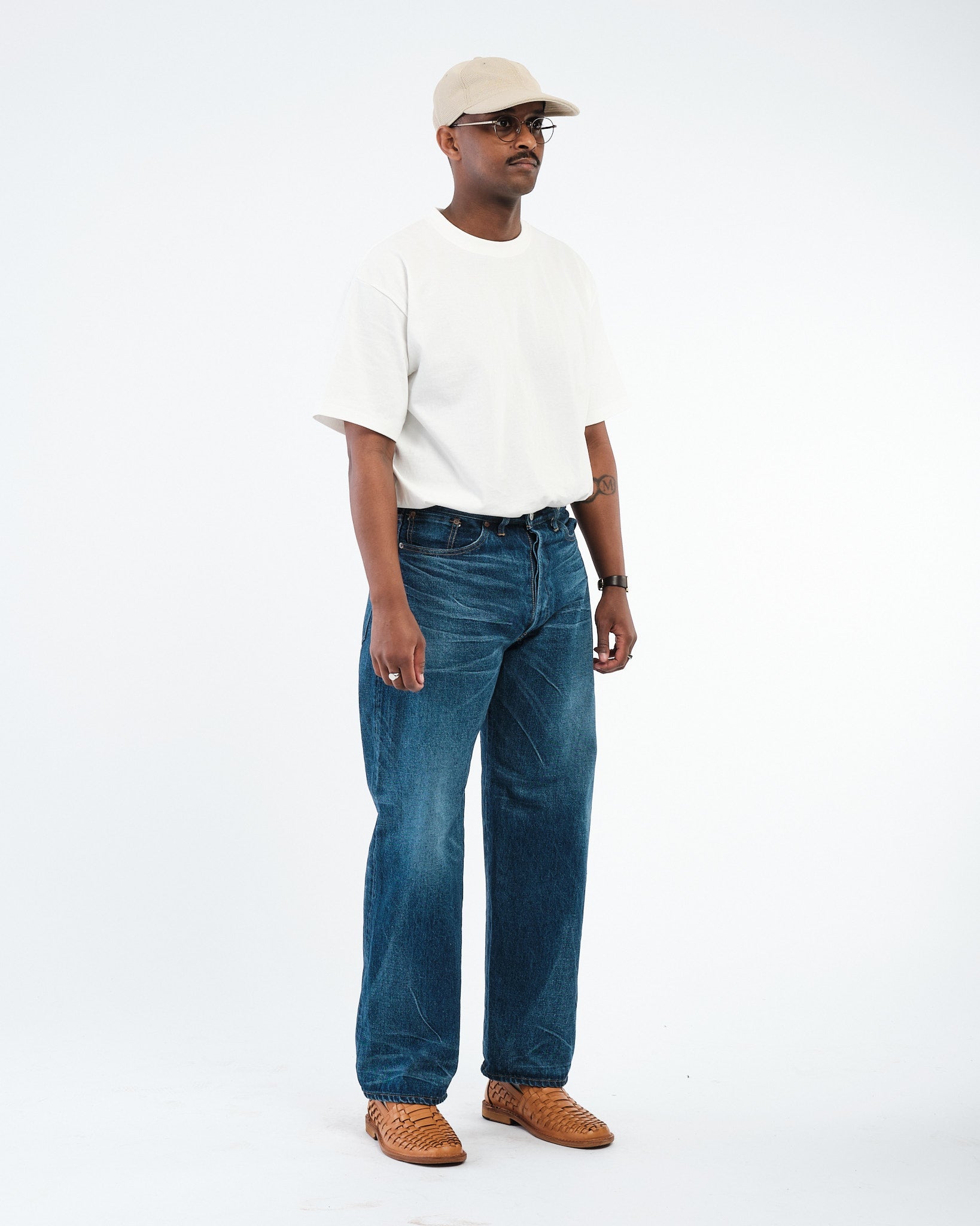 KAPTAIN SUNSHINE 1930 Straight Denim Pants (KSBS203DZ) Indigo Vintage Wash -värisenä tiivistää vintage-denimkäsityöläisyyden olemuksen. Valmistettu 13,5oz Selvedge-denimistä, nämä farkut on värjätty puhtaalla indigolla ja sisältävät luonnollista nukkaa, käyttäen korkealaatuista San Joaquin -puuvillaa, joka on peräisin pitkään perustetulta riisipuuvillan tuotantoalueelta.