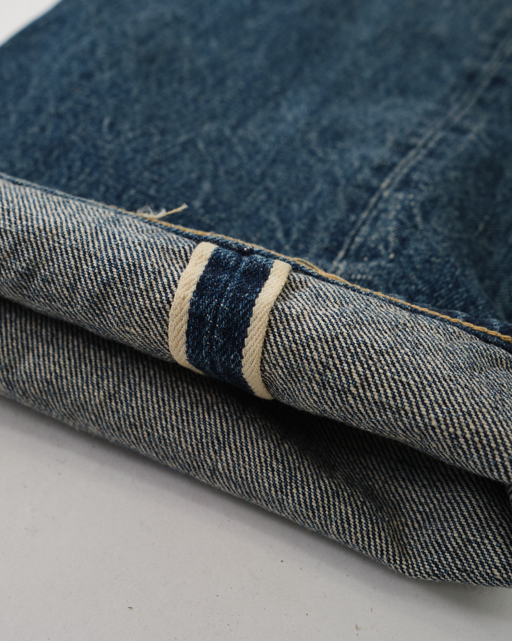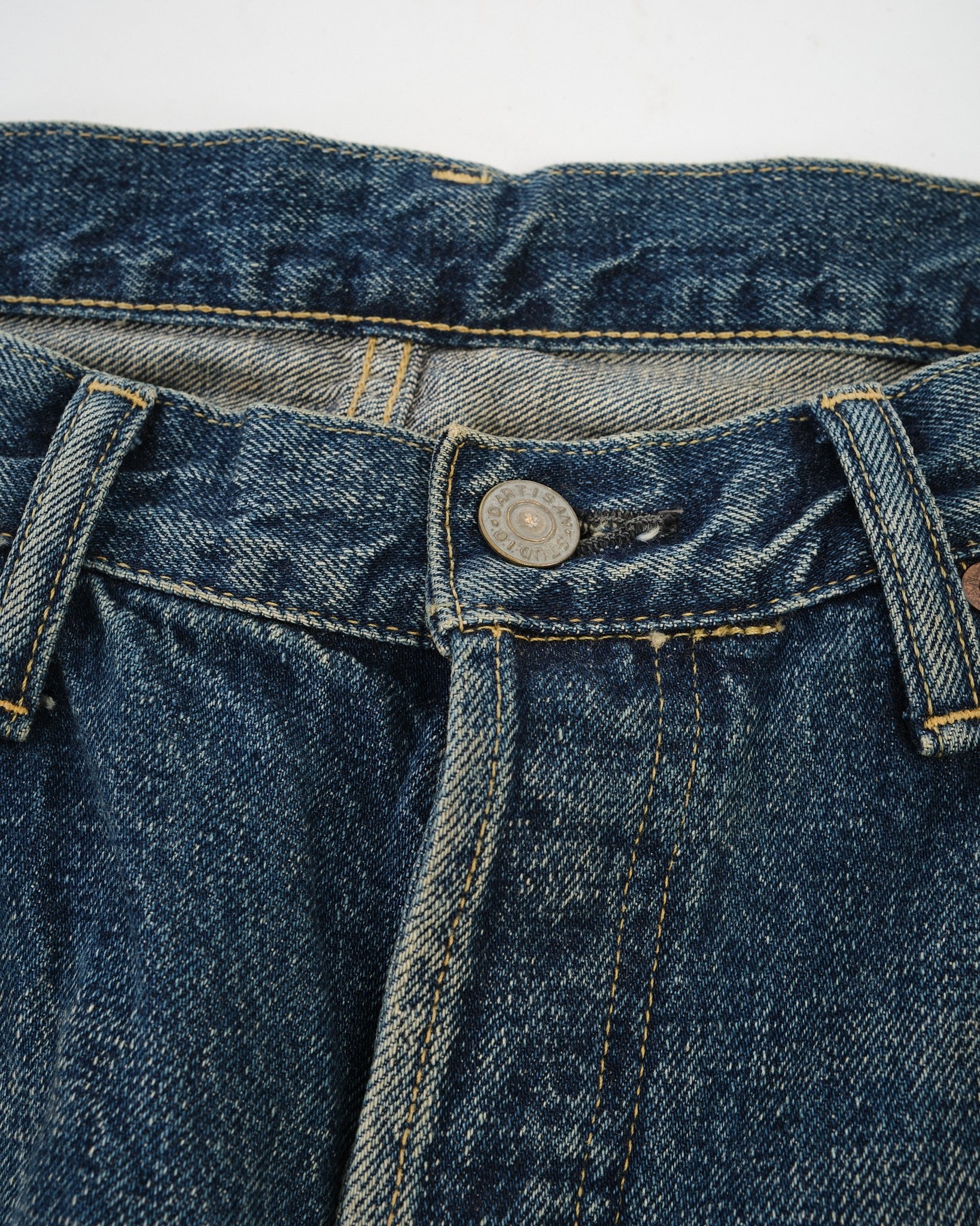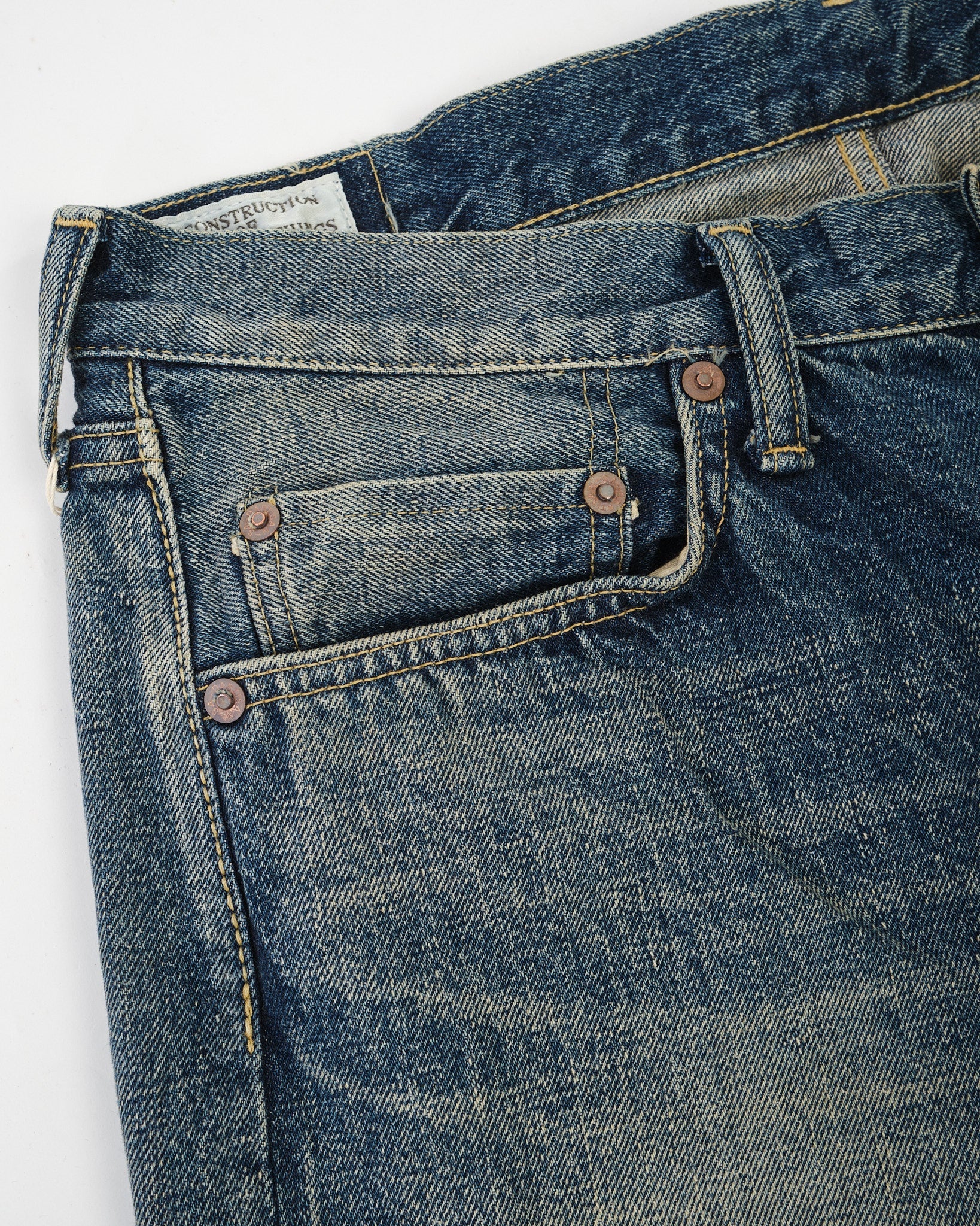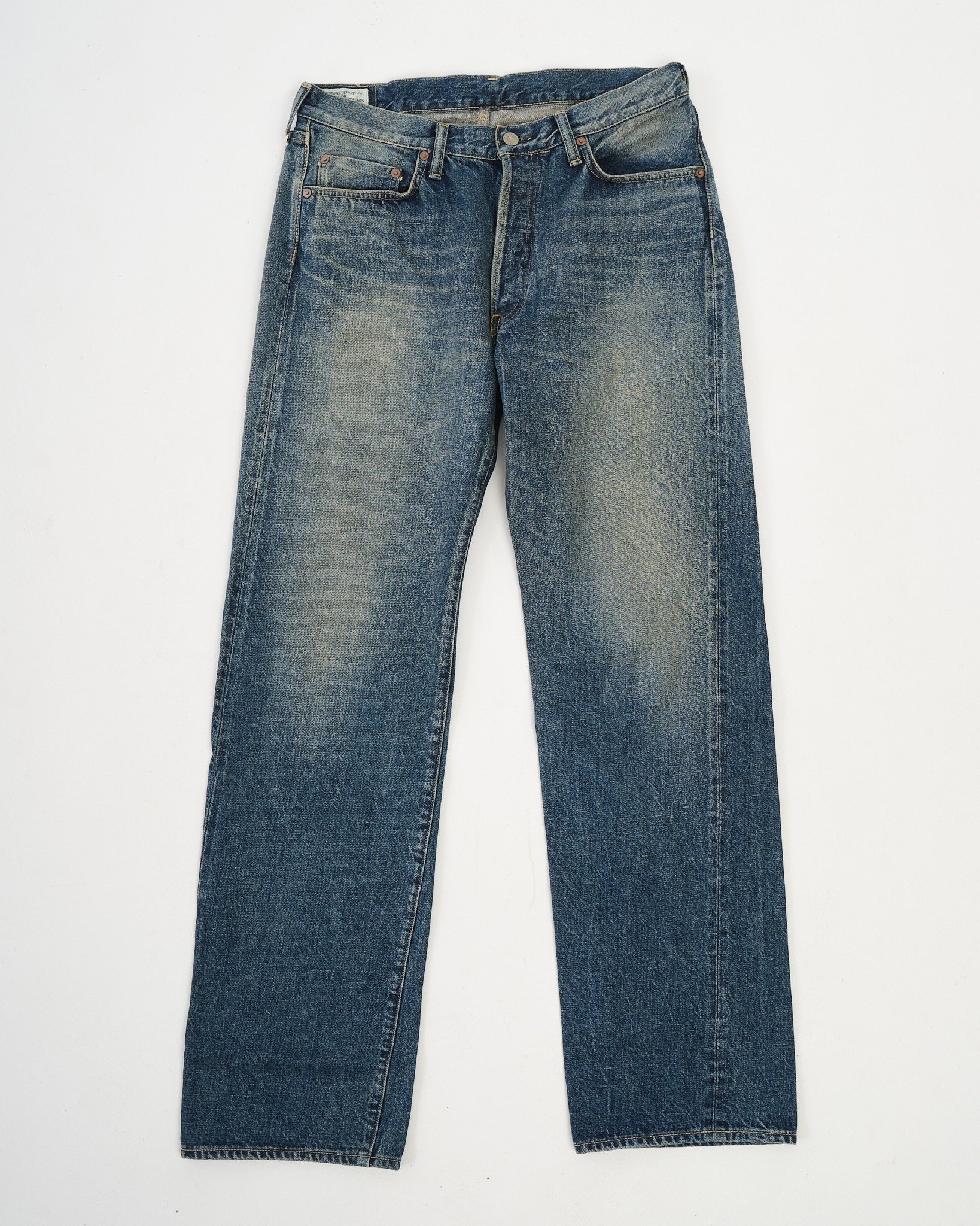 Suunniteltu tiukalla suoralla 103 siluetilla, nämä farkut tarjoavat puhtaan mutta rakenteellisen istuvuuden, pysyen uskollisena 1950-luvun työvaateestetiikalle. Käytetty indigo-pesu tehostaa vintage-tunnelmaa, esitellen hienovaraisia haalistumia ja ryppyjä, jotka korostavat kankaan ainutlaatuista luonnetta.