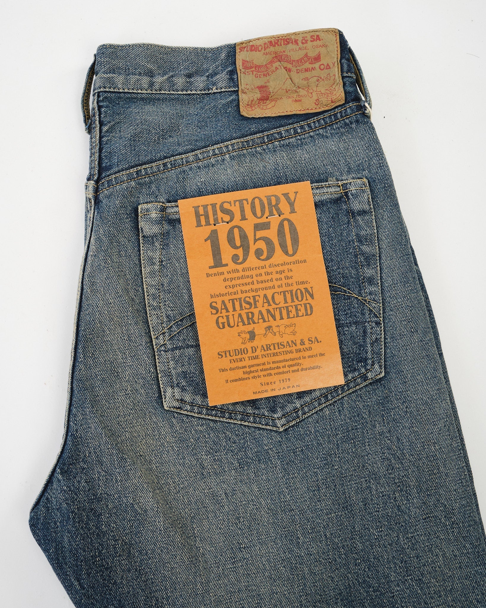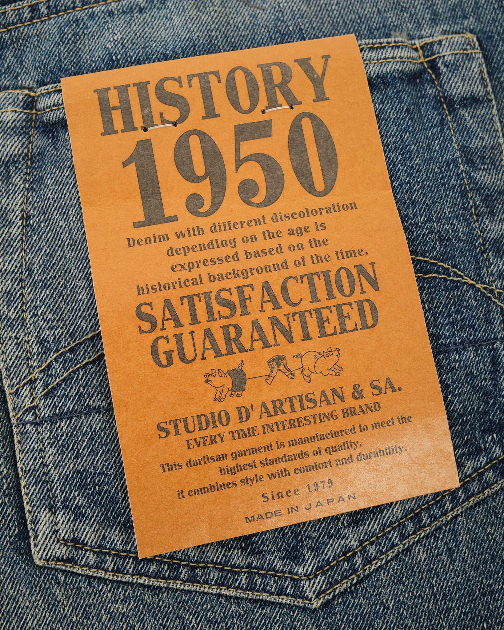 STUDIO D'ARTISAN 1950 -farkut (D1844U) ovat kunnianosoitus keskivuosikymmenen karulle työvaatetukselle, joka on valmistettu huolellisesti käyttäen 12,5 oz selvedge-denimiä, joka on kudottu historiallisella G3-kudontaloomilla—Japanin ensimmäinen voimalooma. Legendaarinen G3-loom toimii käyttäen darashi-kudontatekniikkaa, jossa pystysuuntainen jännitys löysätään tarkoituksella. Tämä menetelmä mahdollistaa kokeneiden käsityöläisten manuaalisesti säätää kudontaprosessia, mikä johtaa epätasaiseen, karheaan tekstuurin, jäljittelemättömän modernien koneiden toimesta.