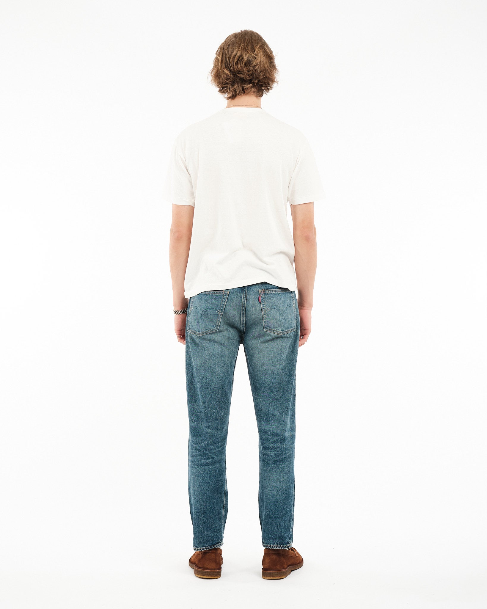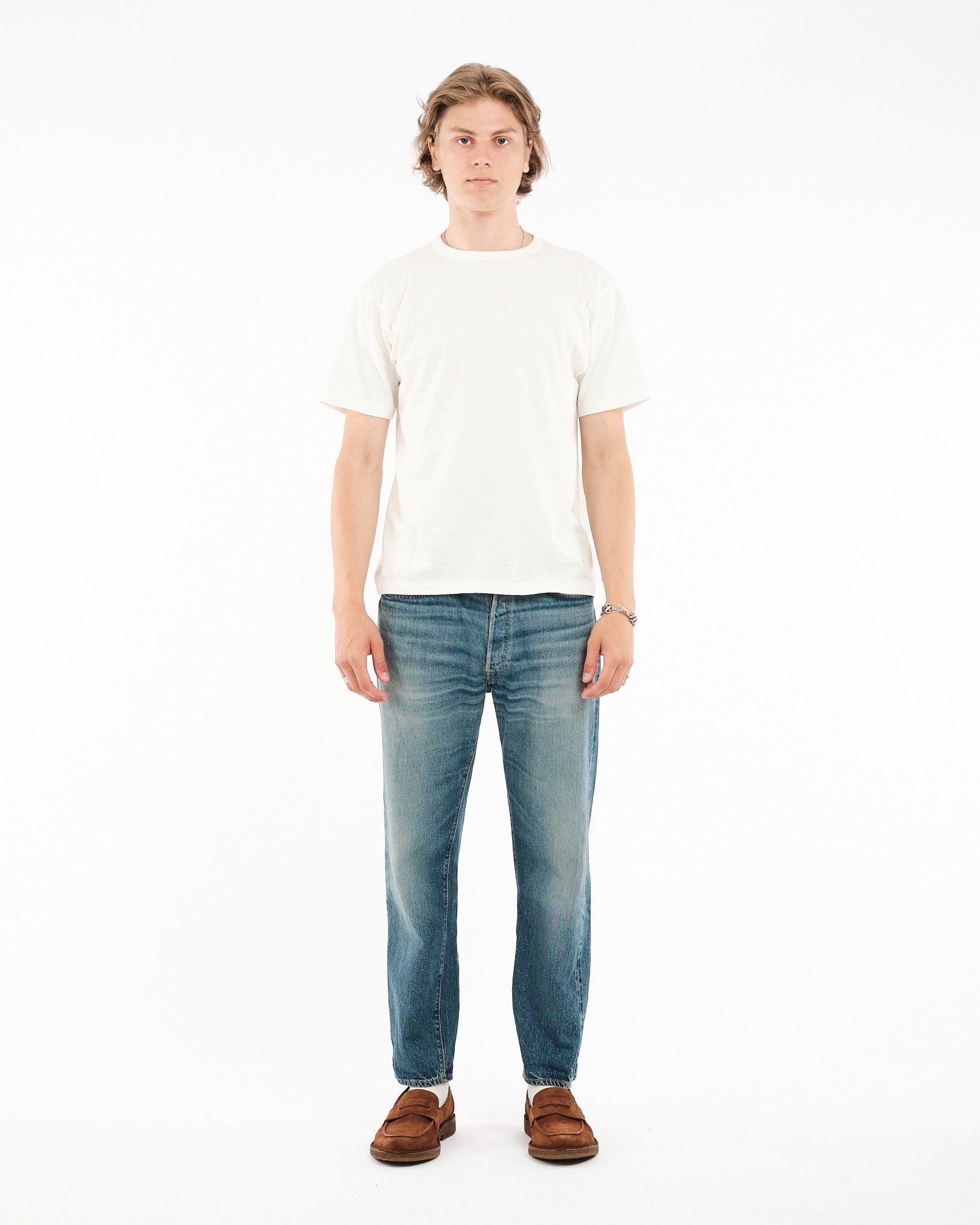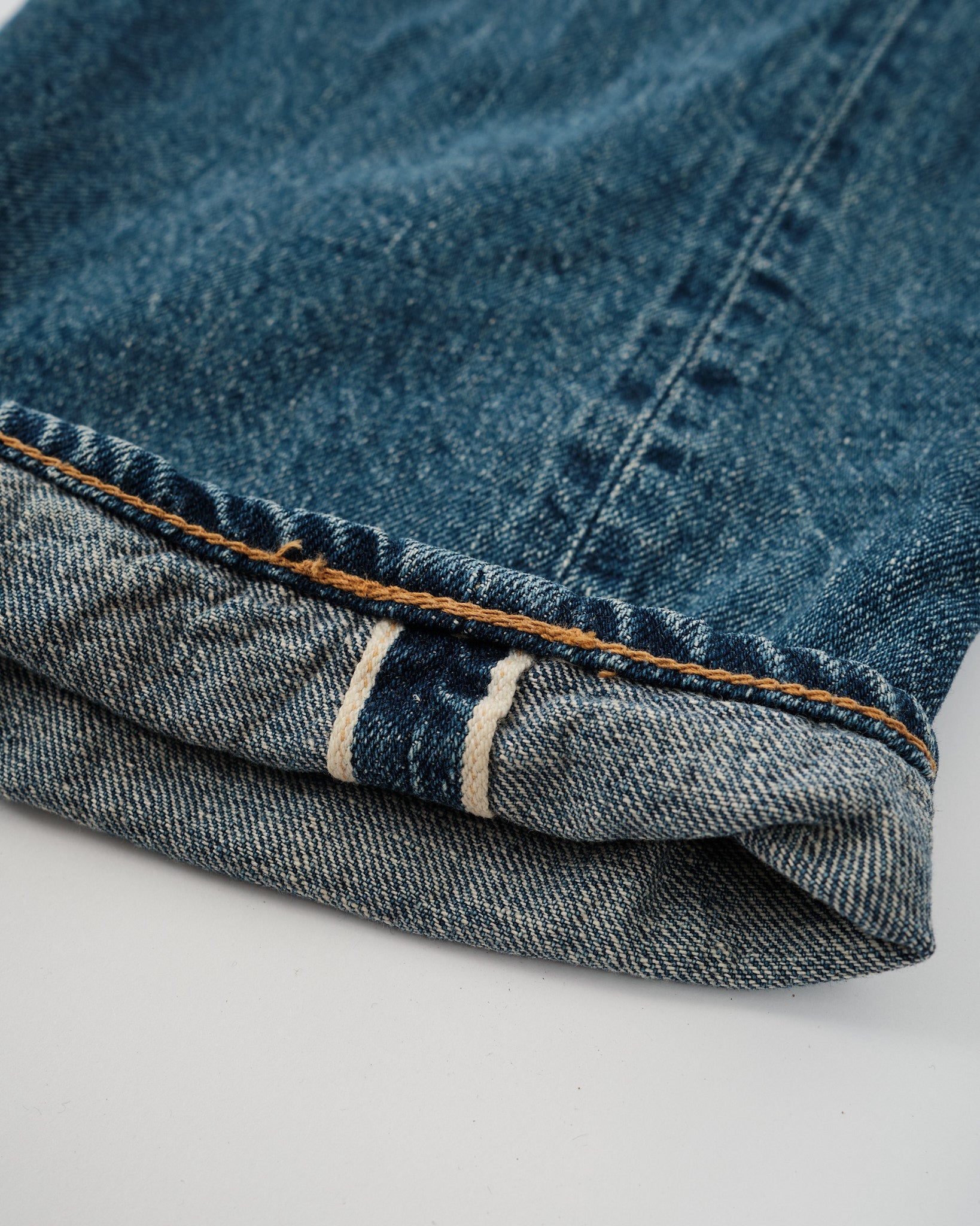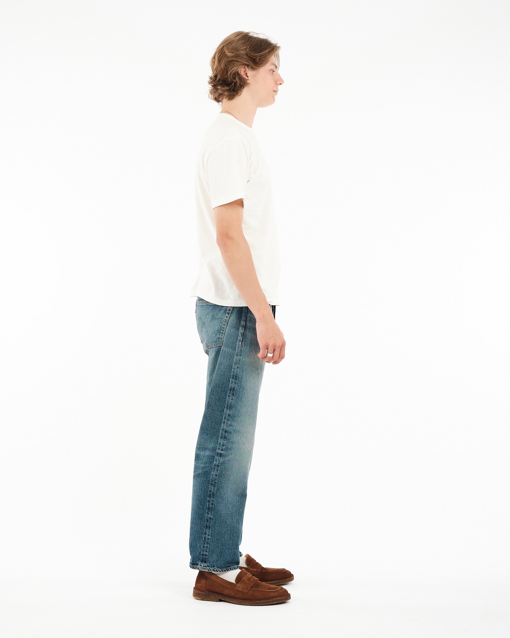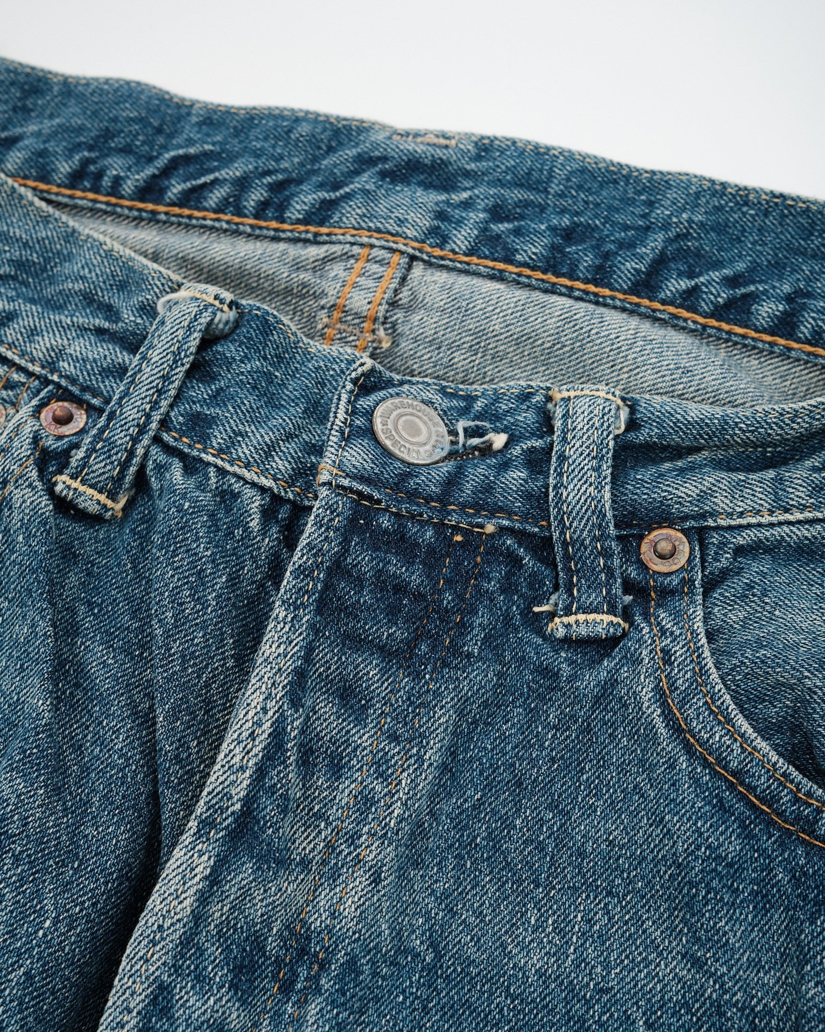 1960-luvun farkkujen innoittamana, designissa on hieman syvempi vyötärö ja suora istuvuus, jossa on kevyt kapenevuus lahkeeseen päin, tarjoten klassisen siluetin, joka sopii eri vartalotyypeille. Keskeisiä yksityiskohtia ovat perinteinen nappilista, vahvistetut takataskut, joissa on hienovaraista kulumista aitoa käyttöä jäljitellen, ja ketjutikatut lahkeensuut, jotka parantavat sekä kestävyyttä että vintage-estetiikkaa. Farkut on koristeltu paperilapulla vyötärönauhassa, joka kehittää ajan myötä oman luonteensa, ja takataskuissa on ompeleita ja välilehtiä, jotka aidosti jäljittelevät hyvin kuluneiden vintage-farkkujen ulkonäköä.