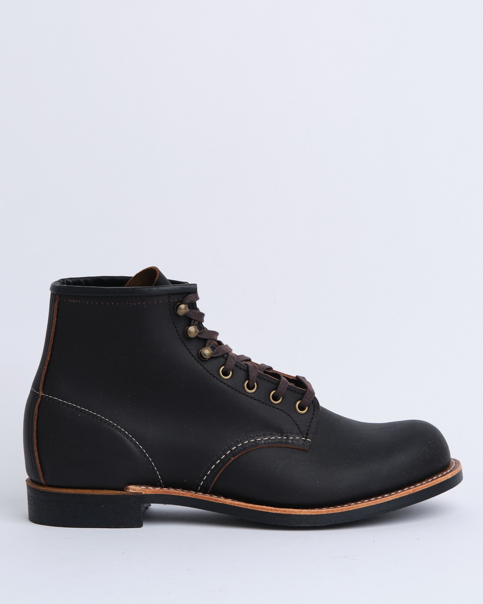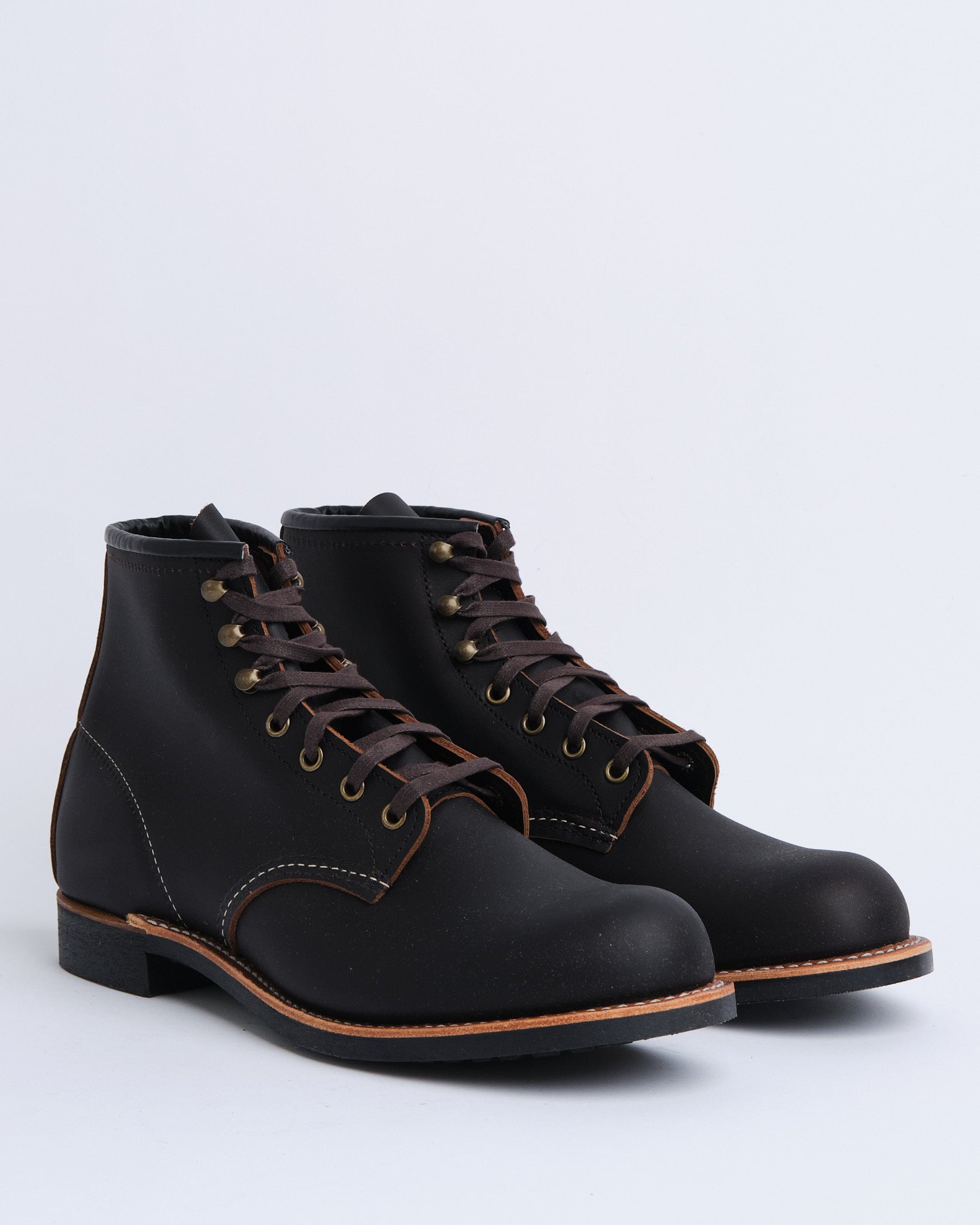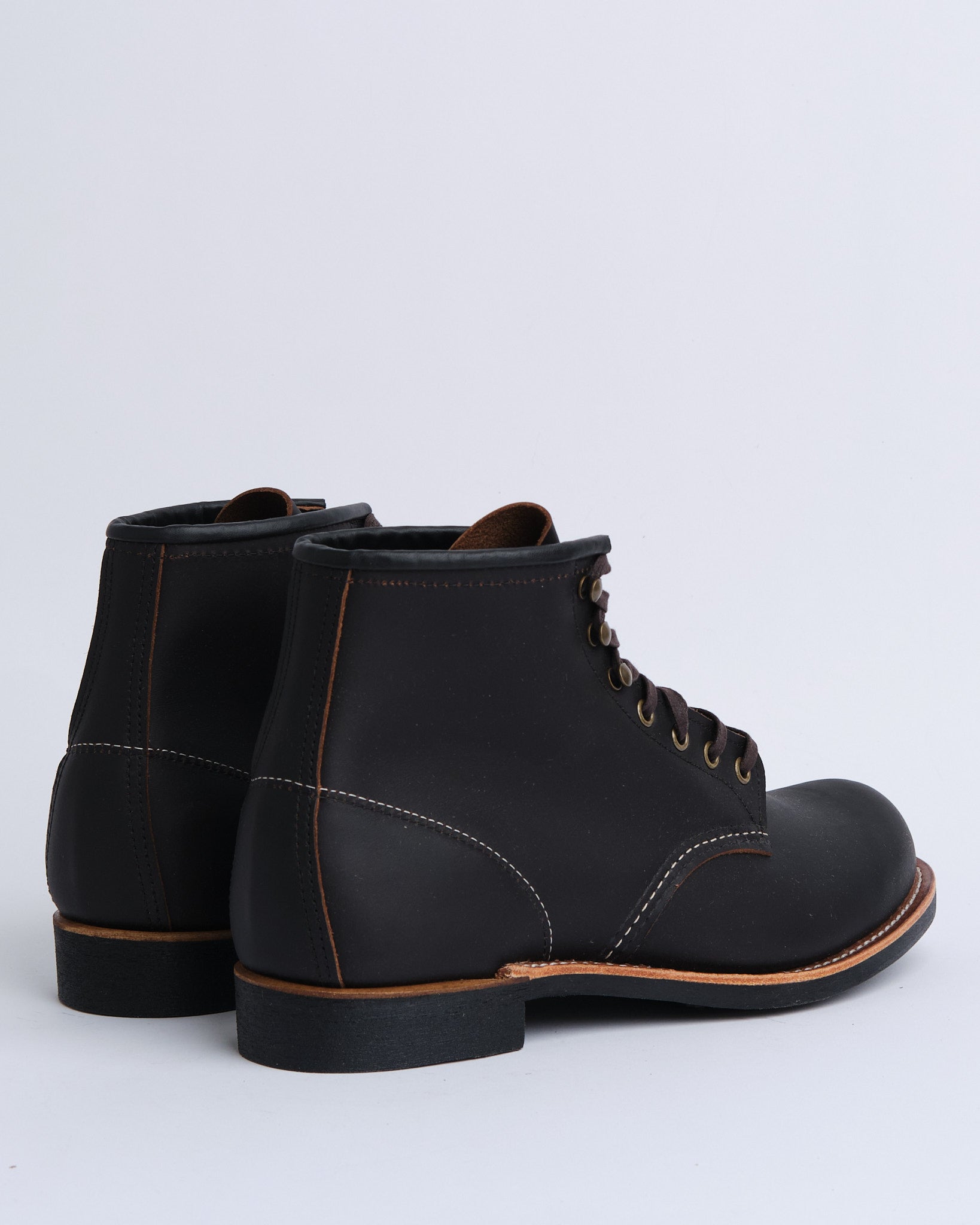 Esittelyssä 3345 BLACKSMITH in BLACK PRAIRIE RED WING SHOESilta. Kenkä, joka on suunniteltu olemaan sekä toiminnallinen että monipuolinen, Blacksmith juontaa juurensa työpajan käyttötarkoitukseen, mutta ei kaihda nykypäivän esteettisyyttä. Se on valmistettu suojamaan käyttäjänsä jalkoja sepänpajan haasteilta, ja tänä päivänä se tarjoaa vankan suojan likaa, kesän kuumuutta ja talven lunta vastaan. Tämä 6-tuumainen kenkä ylpeänä esittelee yhdistelmän karkeaa kestävyyttä ja hiottua tyyliä, jotka tuodaan yhteen premium-nahalla, kolme neljäsosaa Goodyear-nahkapohjalla ja ikonisella Puritan kolmoisompeleella. Vibram® 430 Mini-Lug -ulkopohja takaa luotettavan pidon kaikilla maastoilla ja vuodenajoilla.