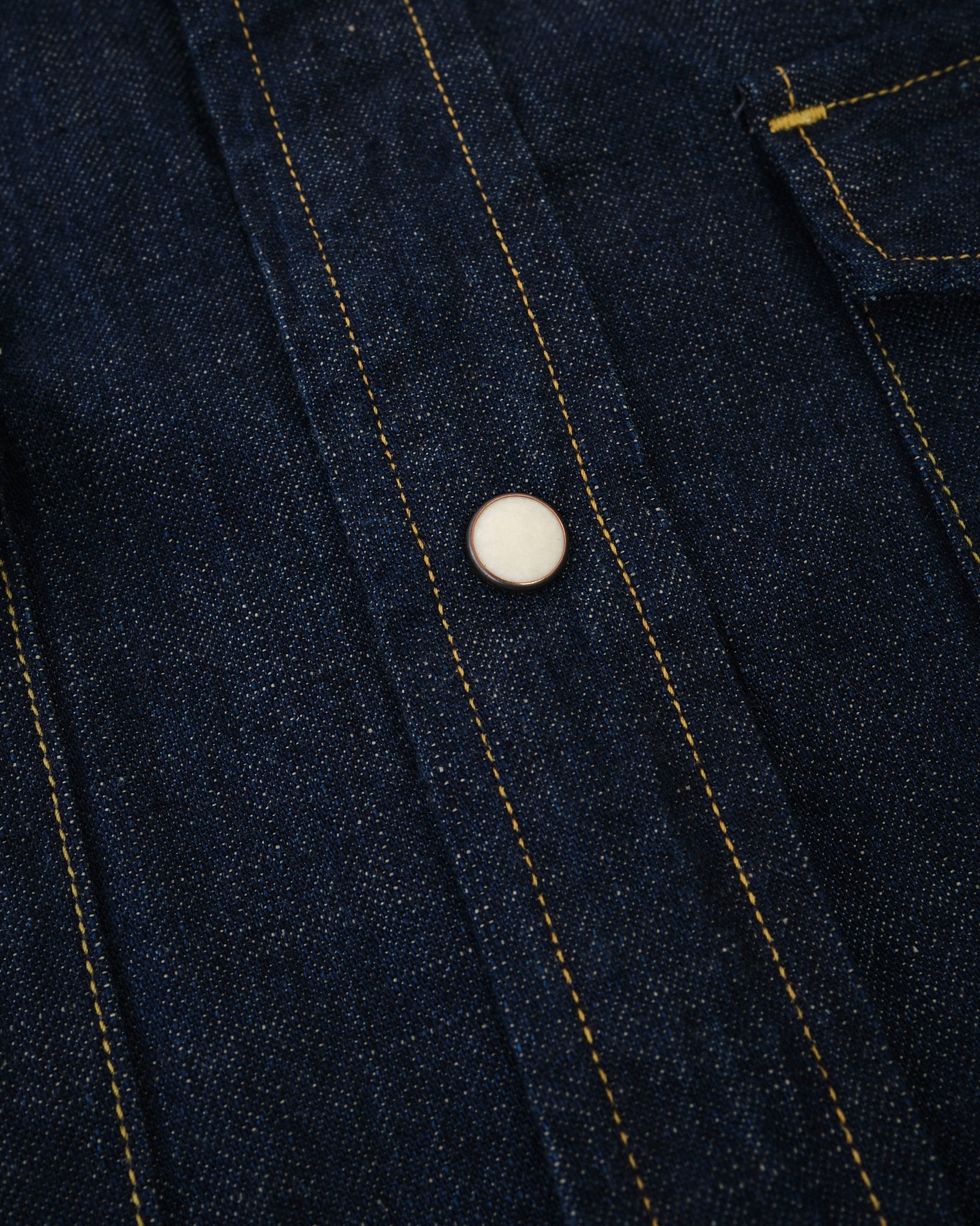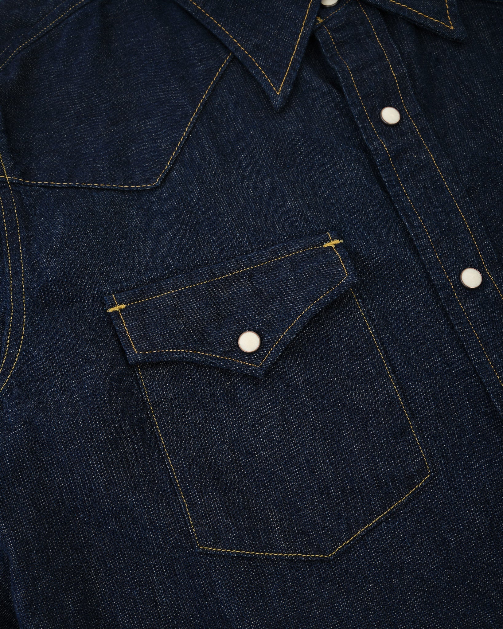 The Full Count 4894 Denim Western Shirt celebrates the iconic Western silhouette with Japanese precision. Cut from an 8oz selvedge denim woven on shuttle looms, it balances durability with year-round versatility. Indigo-dyed and crafted with pearl snap buttons, flap chest pockets, and a classic Western yoke, it captures the spirit of vintage ranch wear.