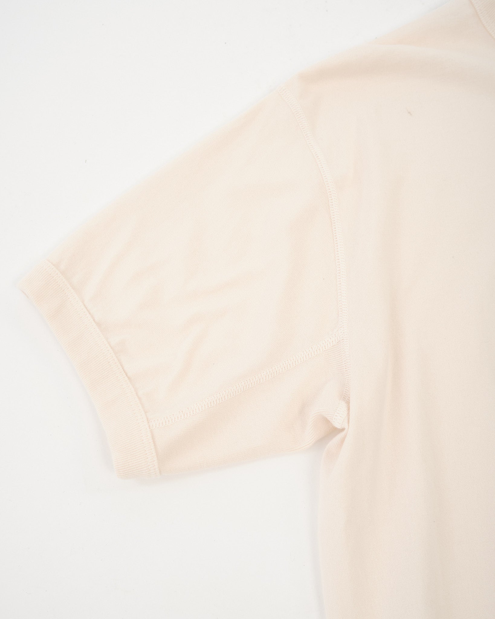 Circular knit to size on vintage machines, this tee has no side seams, giving it a clean fit that molds to your body with wear. The Henley neckline adds versatility, with a finer binder than standard tees for a casual, rugged edge when left open. A unique spinning method traps air inside the yarn, creating a soft-yet-substantial feel, while the 4-needle flat seam stitching ensures irritation-free wear.