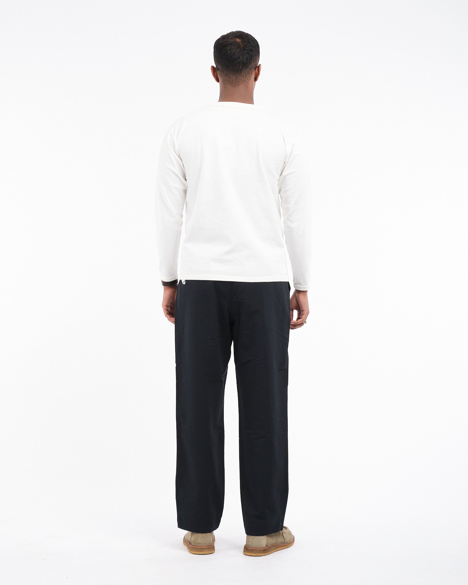 Nanamica ALPHADRY Wide Easy Pants mustana määrittelevät uudelleen mukavuuden ja monikäyttöisyyden modernilla, rentoutuneella siluetilla. ALPHADRY-kankaasta valmistetut housut ovat kevyet, kosteutta siirtävät ja nopeasti kuivuvat, takaavat koko päivän mukavuuden missä tahansa ympäristössä. Leveälahkeinen design tarjoaa rajoittamatonta liikkuvuutta, kun taas joustava vyötärönauha säädettävällä kiristysnyörillä varmistaa turvallisen, henkilökohtaisen istuvuuden. Tyylikäs musta väri tekee niistä monipuolisen perusvaatteen, sopien sekä rennoille että puolivirallisille tilaisuuksille. Toiminnallisuuteen ja ajattomaan tyyliin keskittyen Nanamica toimittaa kappaleen, joka vaivattomasti yhdistää suorituskyvyn ja eleganssin.