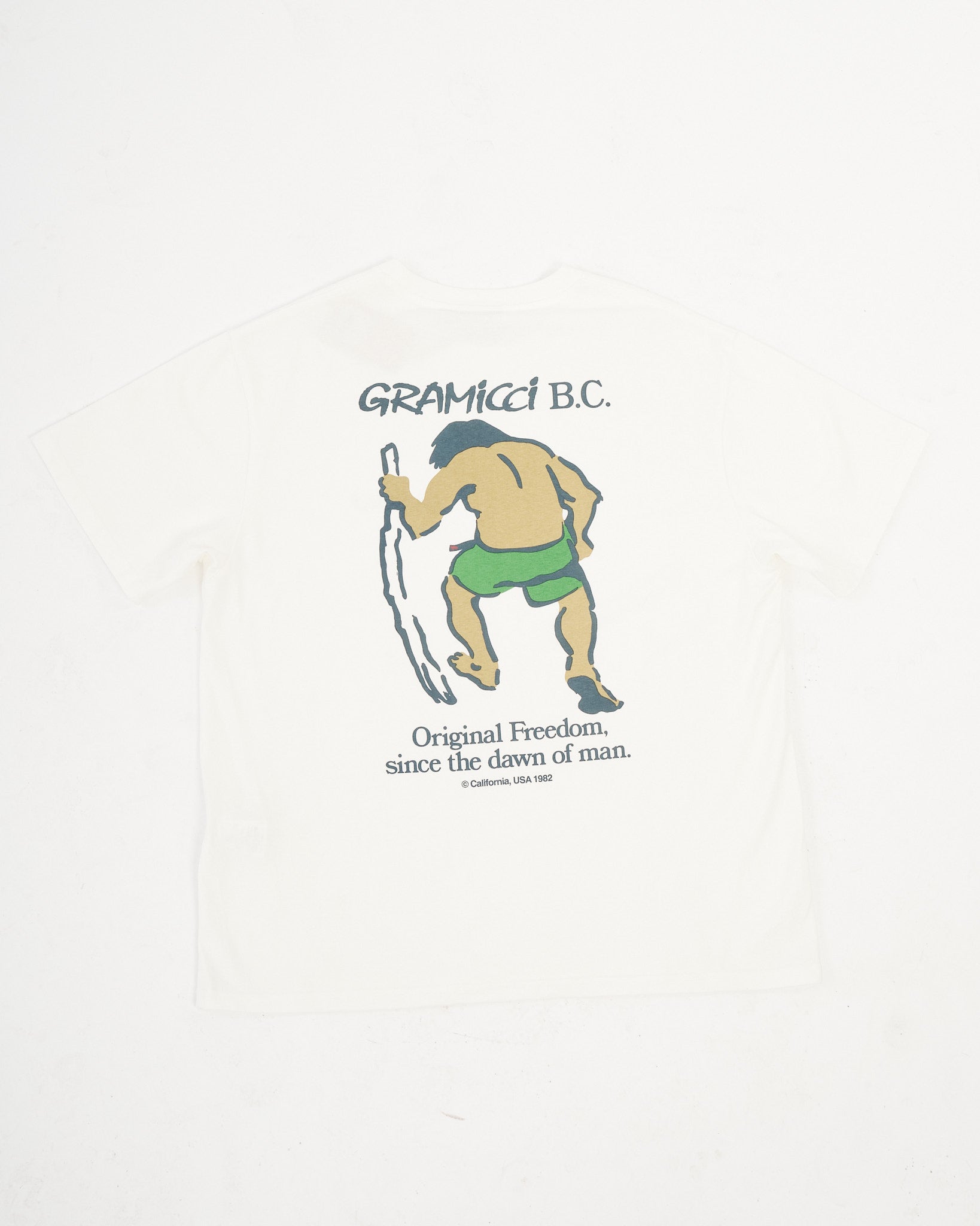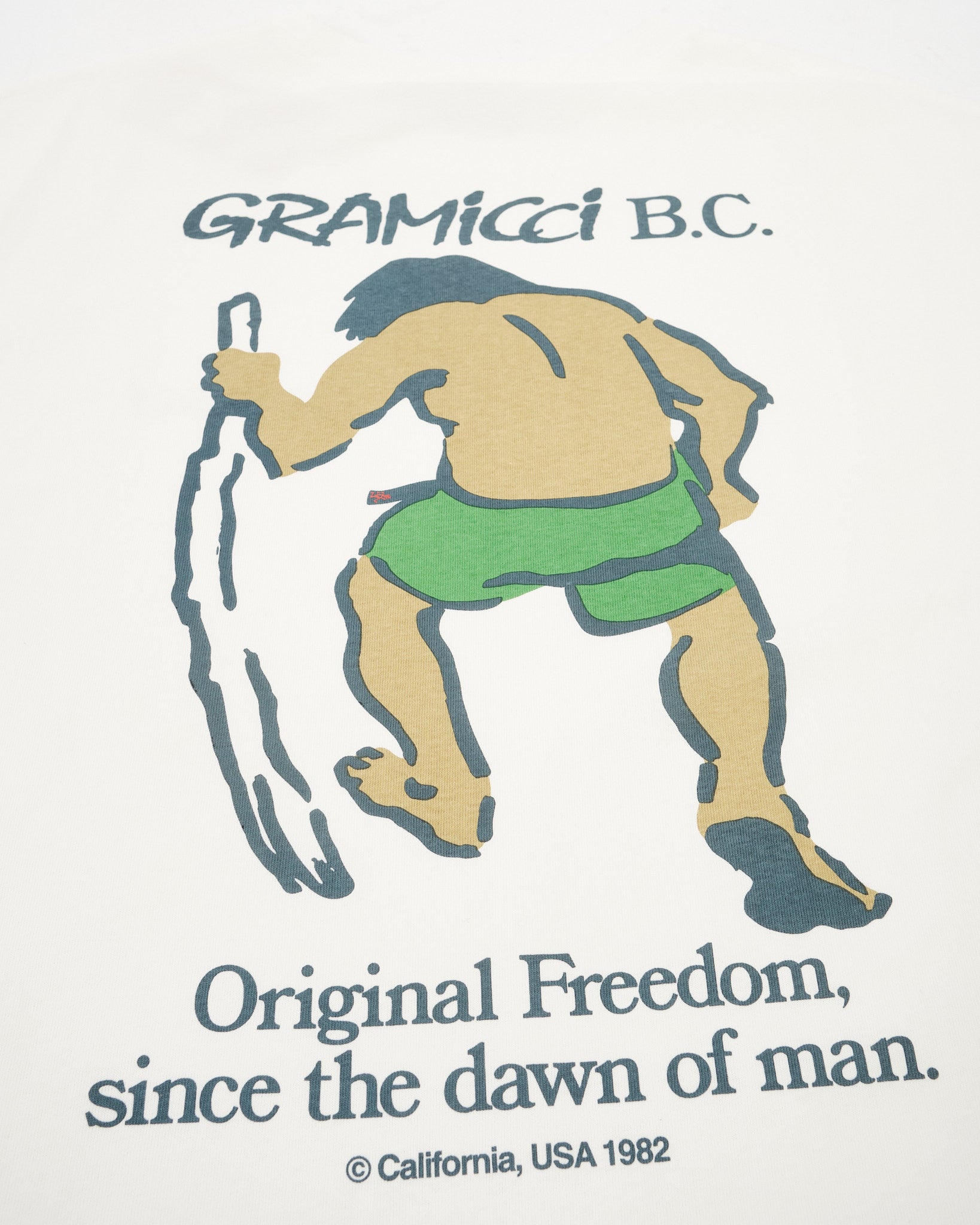 Esittelyssä G3FU-T070 B.C. Tee Gramicciltä—rento, väljästi istuva t-paita, joka on suunniteltu tarjoamaan mukavuutta samalla, kun se tekee lausunnon. Valmistettu 100% luomupuuvillasta, tämä paita ylpeilee kuivapintaisella kankaalla, joka pitää sinut mukavana koko päivän. Siinä on Gramiccin logo vasemmassa rinnassa ja hauska grafiikka takana, joka kunnioittaa brändin "Alkuperäinen vapaus ihmiskunnan alusta lähtien."