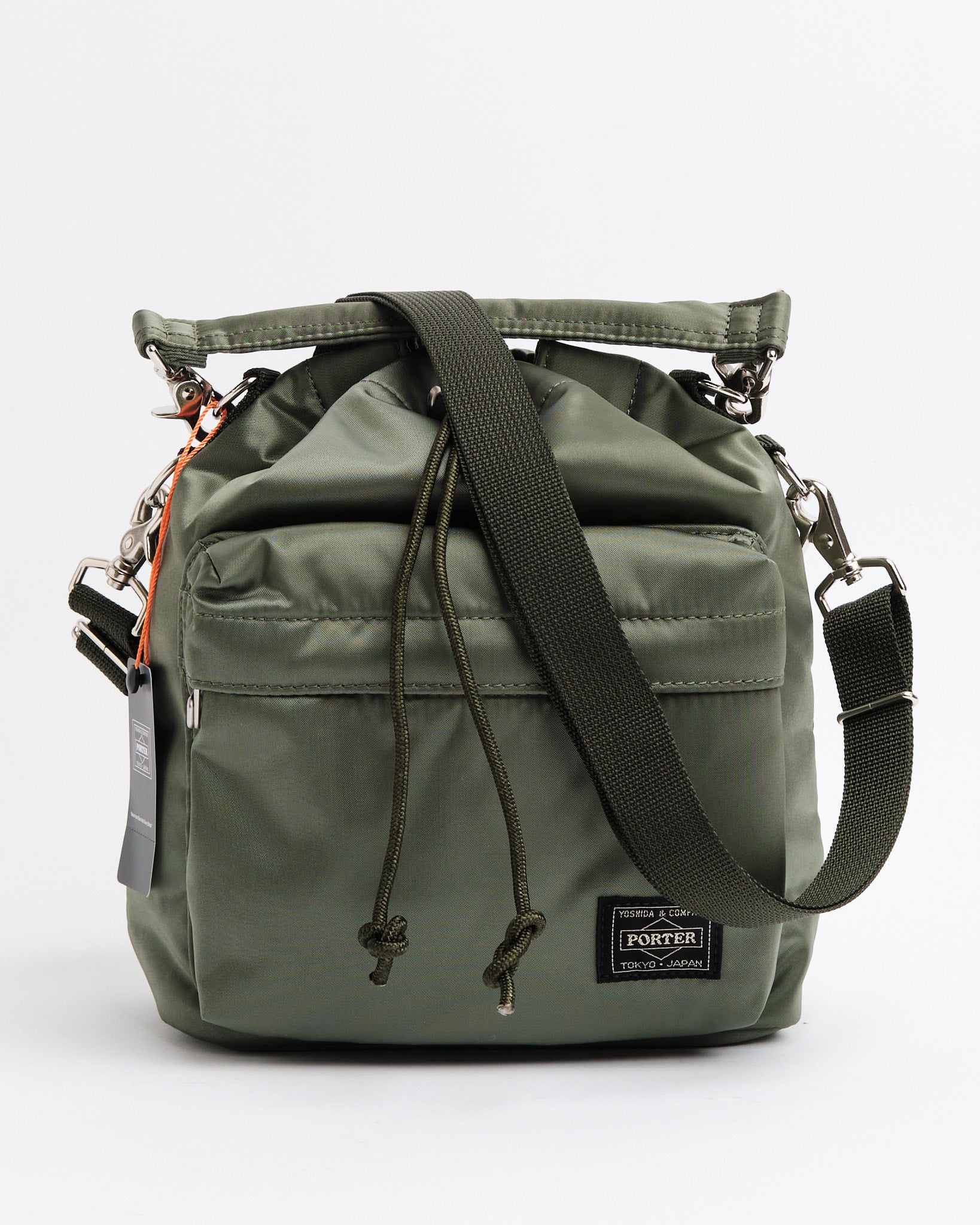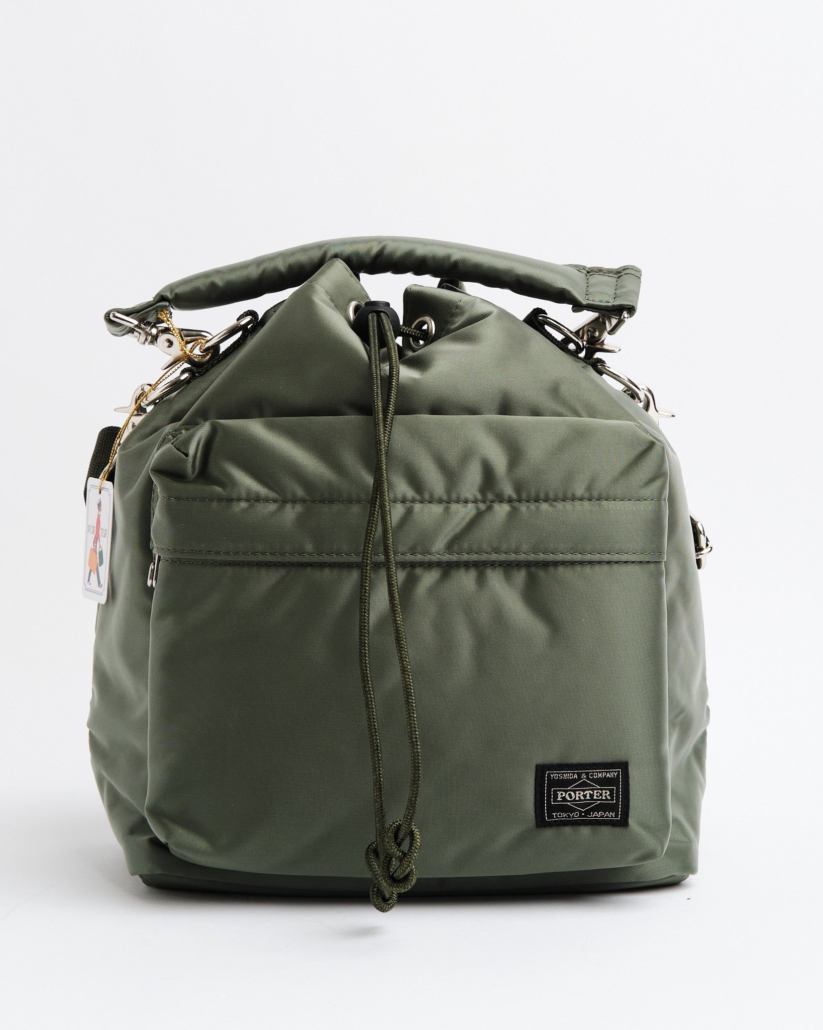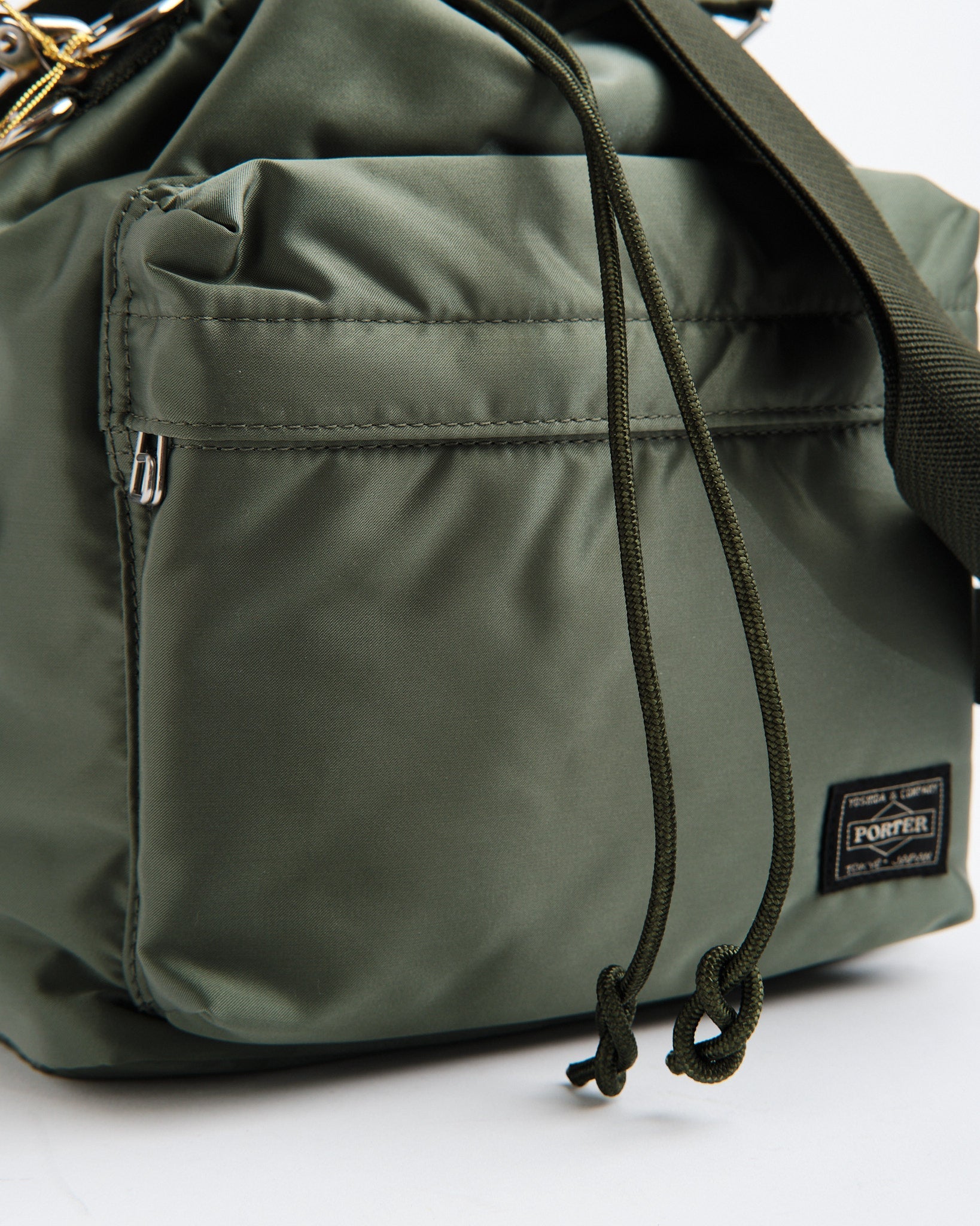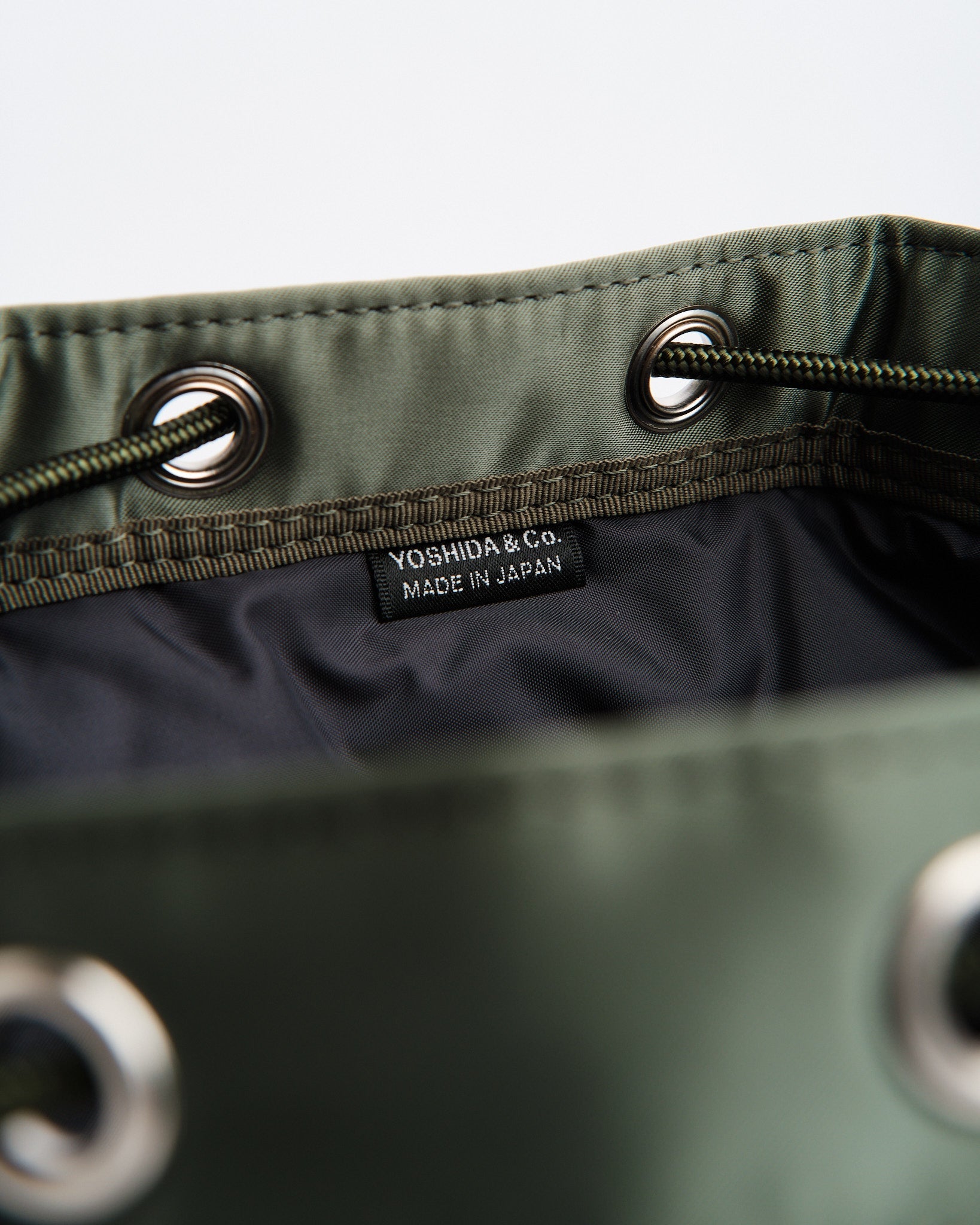Tutustu PORTER YOSHIDA 381-16853-30 BALLOON BAG (L) -laukkuun viehättävässä SAGE GREEN -sävyssä. Tämä laukku saa inspiraationsa pienten esineiden kantamiseen tarkoitetuista pusseista ja sillä on ainutlaatuinen pyöristetty muoto. Valmistettu nylon-tvillikankaasta puuvillabondausprosessilla, siinä on kiiltoa ja se tuntuu ylellisen pehmeältä kosketukseen. Yläosan kiristysnyörillä pääsee käsiksi päälokeroon, kun taas säädettävä naru stoppari antaa sinun mukauttaa laukun muotoa. Mukana tulee kahvat ja olkahihna monipuolisia kantovaihtoehtoja varten. Laukussa on kaksi kiristysnyöriä, toinen oranssissa suunnittelussa ja toinen laukun väriä vastaava, tarjoten joustavuutta eri tyyleihin ja tilaisuuksiin sopimiseksi. Sisäpuoli on tyylikkäästi vuorattu laivastonsinisellä. Mittojen ollessa L; 220mm, K; 290mm, S; 130mm (L; 8.7in, K; 11.4in, S; 5.1in) ja painon ollessa 432g (15.2oz) tämä tilava laukku on täydellinen esineiden, kuten 500ml vesipullon tai tabletin, kantamiseen.