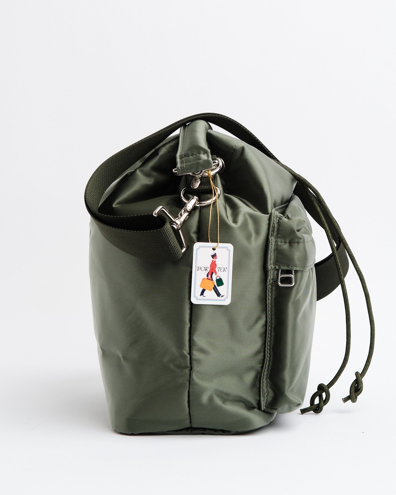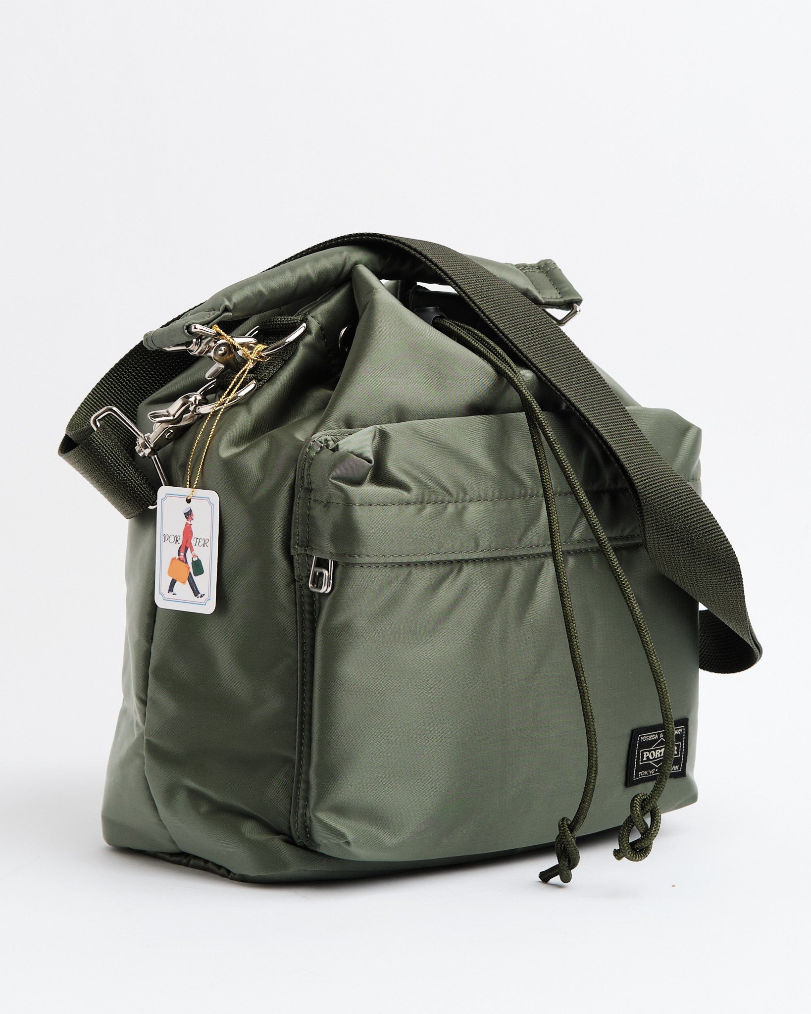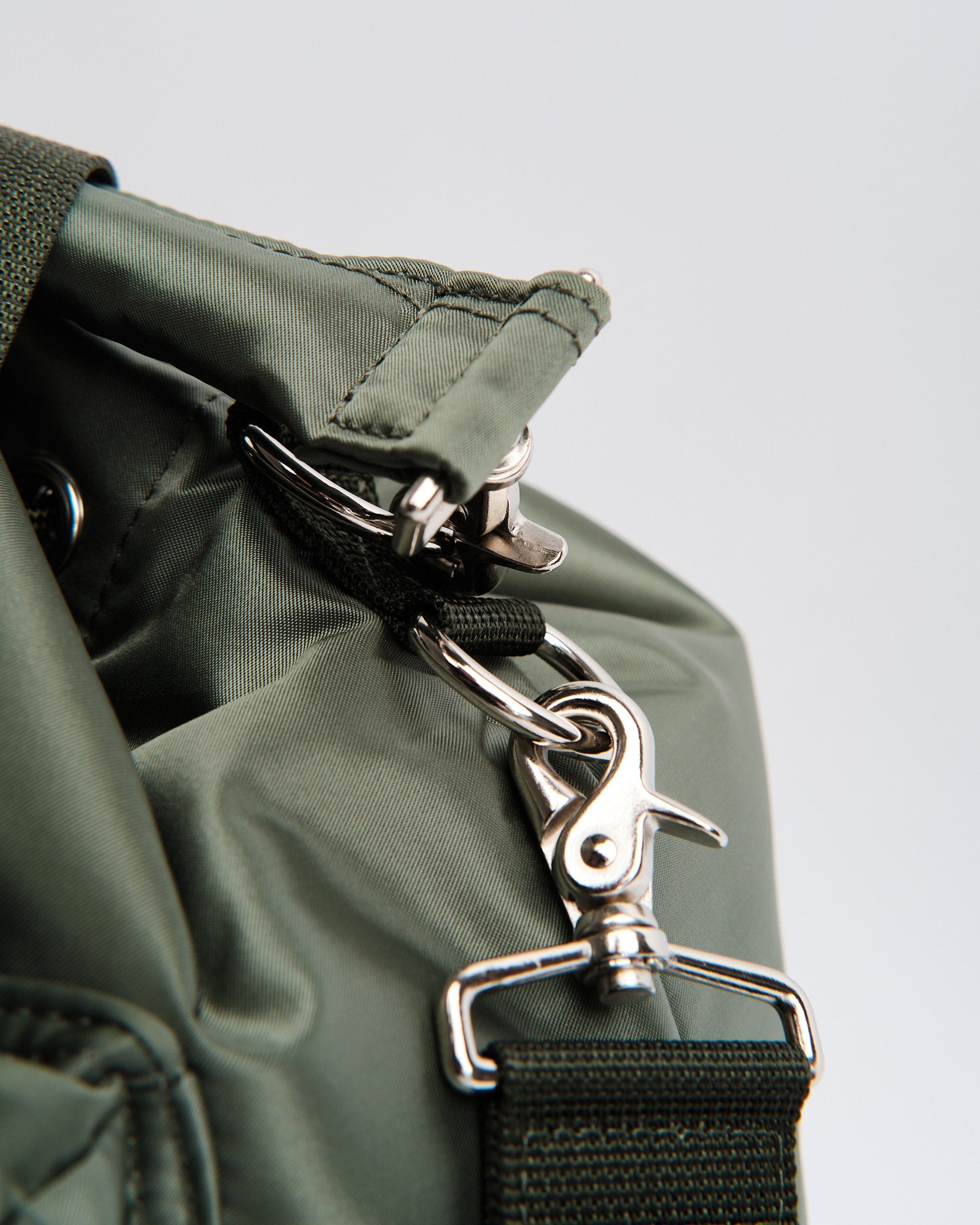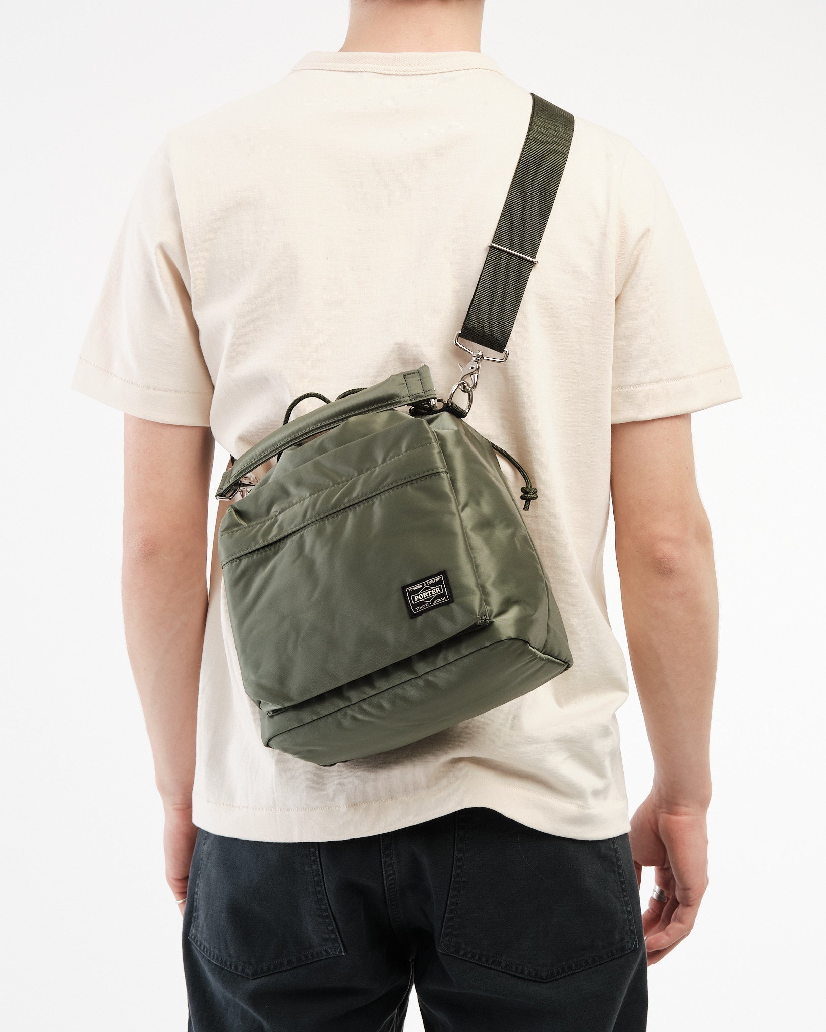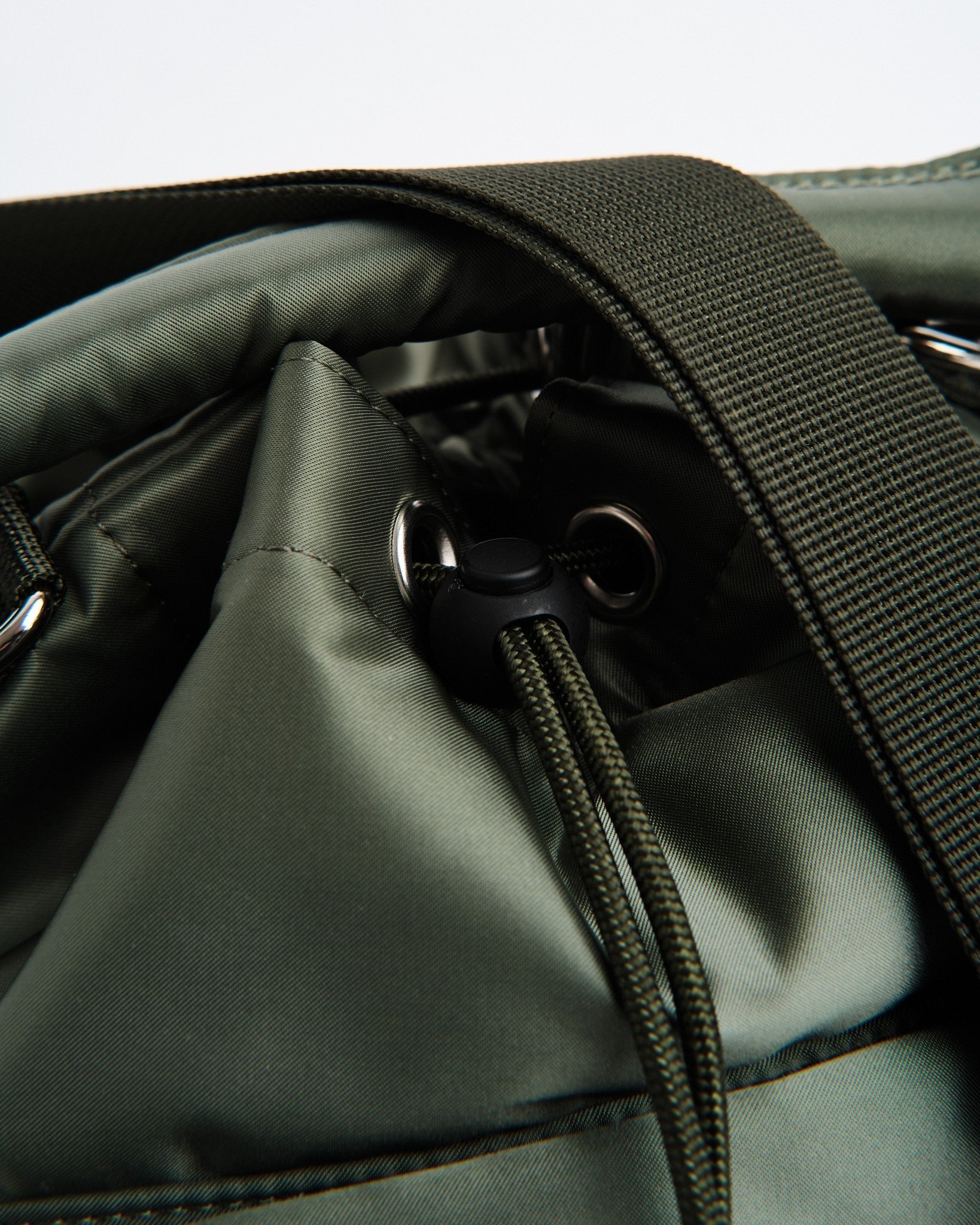 Tutustu PORTER YOSHIDA 381-16853-30 BALLOON BAG (L) -laukkuun viehättävässä SAGE GREEN -sävyssä. Tämä laukku saa inspiraationsa pienten esineiden kantamiseen tarkoitetuista pusseista ja sillä on ainutlaatuinen pyöristetty muoto. Valmistettu nylon-tvillikankaasta puuvillabondausprosessilla, siinä on kiiltoa ja se tuntuu ylellisen pehmeältä kosketukseen. Yläosan kiristysnyörillä pääsee käsiksi päälokeroon, kun taas säädettävä naru stoppari antaa sinun mukauttaa laukun muotoa. Mukana tulee kahvat ja olkahihna monipuolisia kantovaihtoehtoja varten. Laukussa on kaksi kiristysnyöriä, toinen oranssissa suunnittelussa ja toinen laukun väriä vastaava, tarjoten joustavuutta eri tyyleihin ja tilaisuuksiin sopimiseksi. Sisäpuoli on tyylikkäästi vuorattu laivastonsinisellä. Mittojen ollessa L; 220mm, K; 290mm, S; 130mm (L; 8.7in, K; 11.4in, S; 5.1in) ja painon ollessa 432g (15.2oz) tämä tilava laukku on täydellinen esineiden, kuten 500ml vesipullon tai tabletin, kantamiseen.