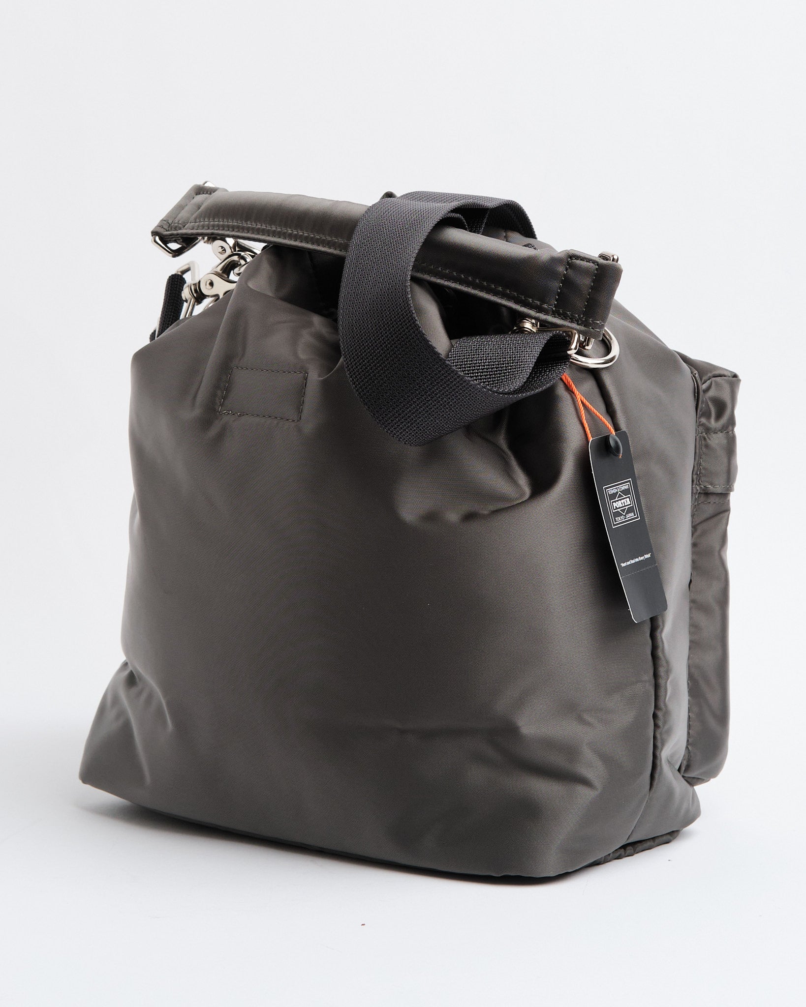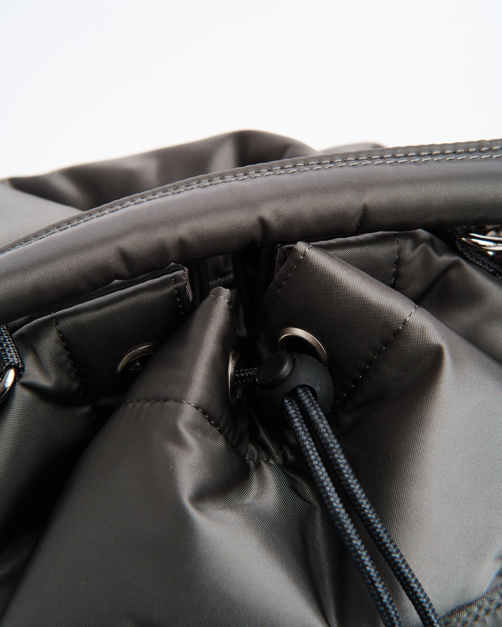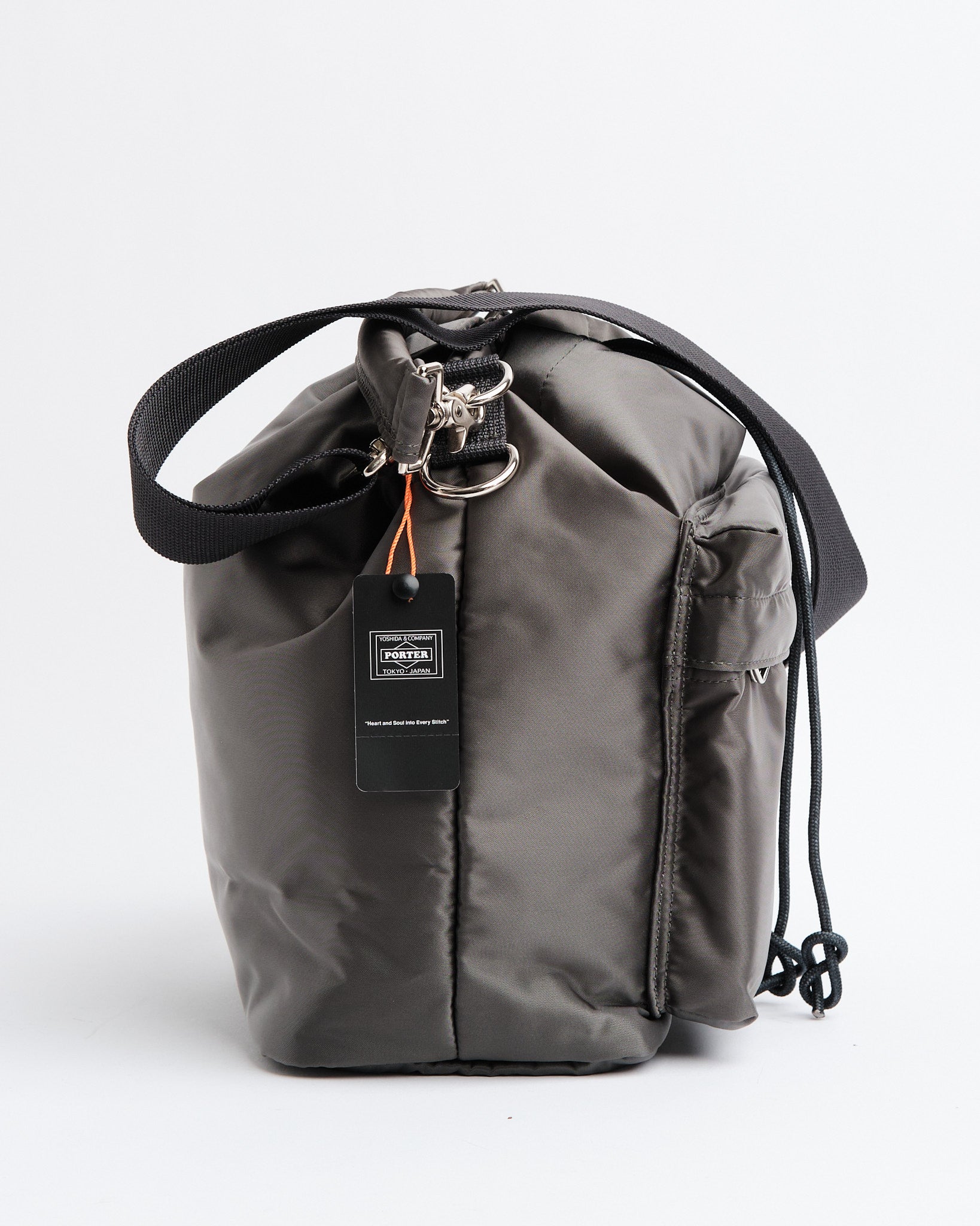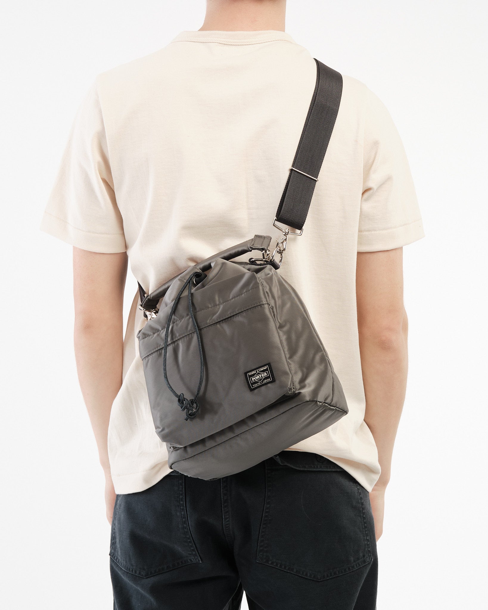 Esittelyssä PORTER YOSHIDA 381 16853 11 BALLOON BAG (Large) SILVER GRAY värisenä. Tämä ainutlaatuinen kiristysnyörilaukku ottaa inspiraationsa pieniä esineitä kuljettavista pusseista ja ylpeilee tyylikkäällä pyöreällä muodolla. Valmistettu nylonkierteisestä kankaasta puuvillakiinnitysprosessilla, se hehkuu kiiltoa ja sillä on pehmeä tekstuur. Laukun voi sulkea kiristysnyörillä yläosasta, jolloin siluetin säätö on mahdollista eri pisteissä kiristysnyörilukon avulla. Siinä on kahvat ja olkahihna, tarjoten joustavuutta kantamiseen kädessä tai olalla. Monipuolinen design sisältää kaksi tyyppiä kiristysnyörejä; mustan ja oranssin narun, sekä laukkuun sopivan yksivärisen narun. Sisältä löydät vuorauksen, joka lisää sen viehätystä. Mittojensa W; 220mm, H; 290mm, D; 130mm (W; 8.7in, H; 11.4in, D; 5.1in) ja painonsa 432g (15.2oz) ansiosta tämä tilava laukku mahtuu helposti 500ml vesipullon tai tabletin.