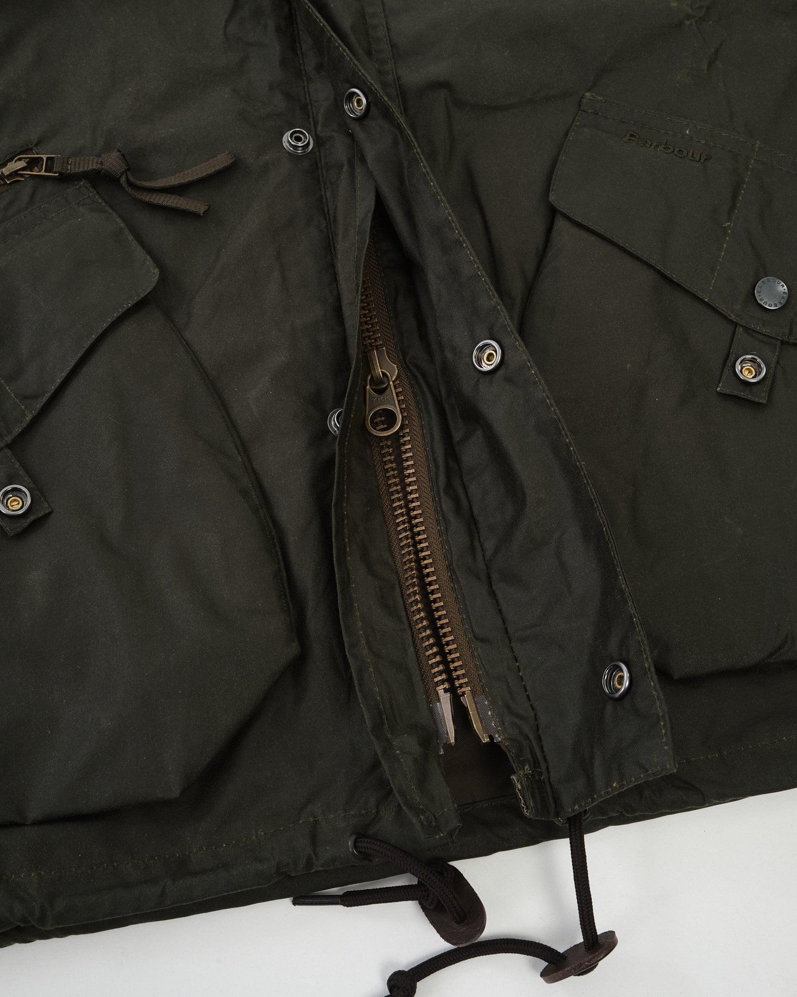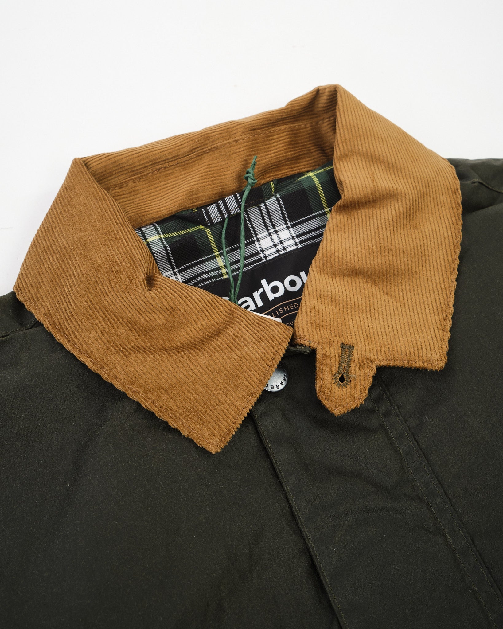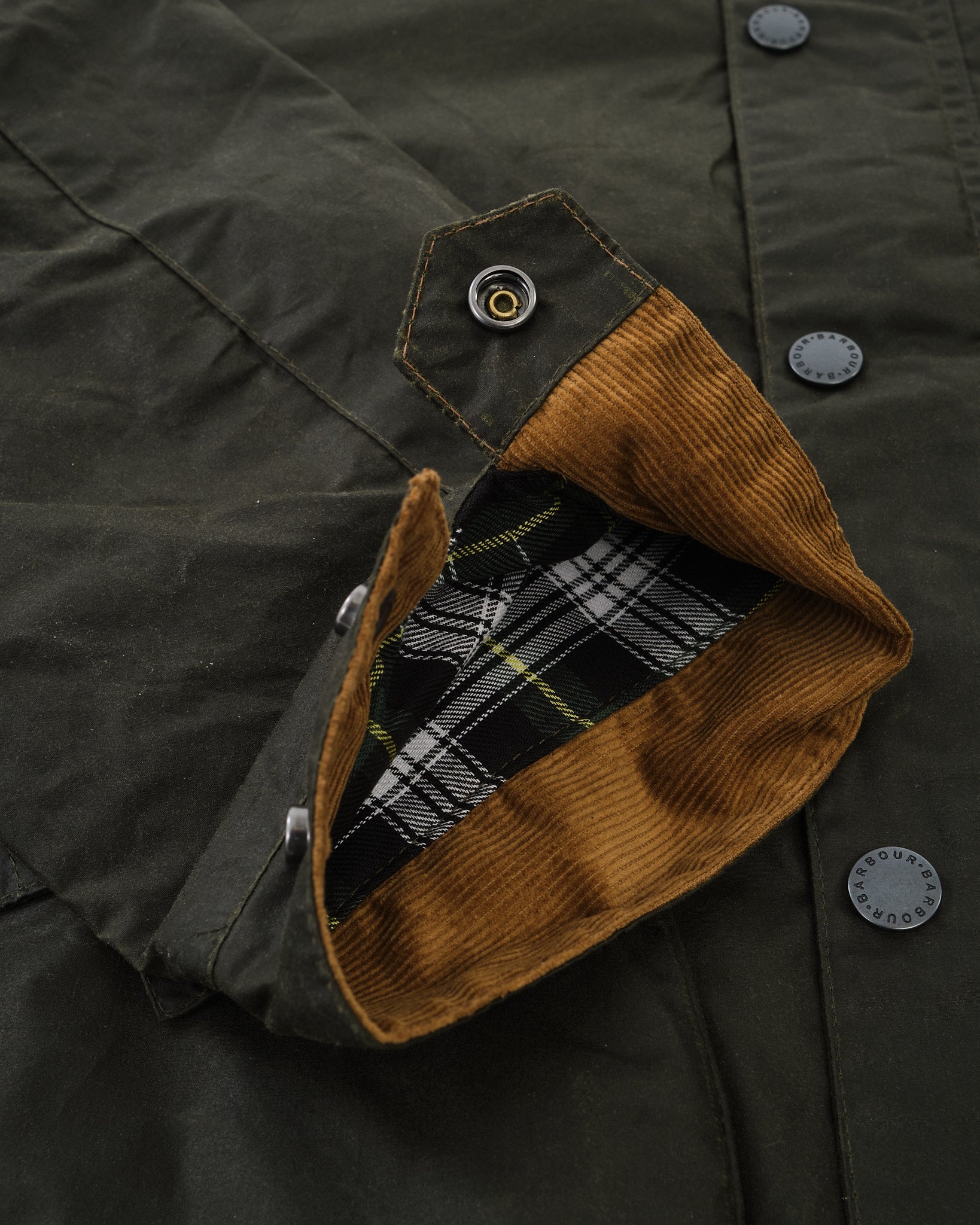 Barbour Modified Endurance Wax Jacket Olive-värissä on nykyaikainen uudelleentulkinta klassisesta Barbour-suunnittelusta, joka yhdistää perinteisen käsityötaidon moderniin toiminnallisuuteen. Valmistettu Barbourin omasta 6oz Sylkoil vahatusta puuvillasta, tämä takki tarjoaa vankan säänkestävyyden ja erottuvan mattapinnan. Suunnittelussa on kiinteä huppu, kaksisuuntainen etuvetoketju, jossa on nepparikiinnitteinen myrskyläppä, ja useita käytännöllisiä taskuja. Sisäpuoli on vuorattu Barbourin ikonisella tartanilla, lisäten kappaleeseen perinteen tuntua. Säädettävät hihansuut ja kiristysnauha vyötäröllä mahdollistavat muokattavan istuvuuden, tehden tästä takista monipuolisen valinnan erilaisiin ulkoiluaktiviteetteihin.