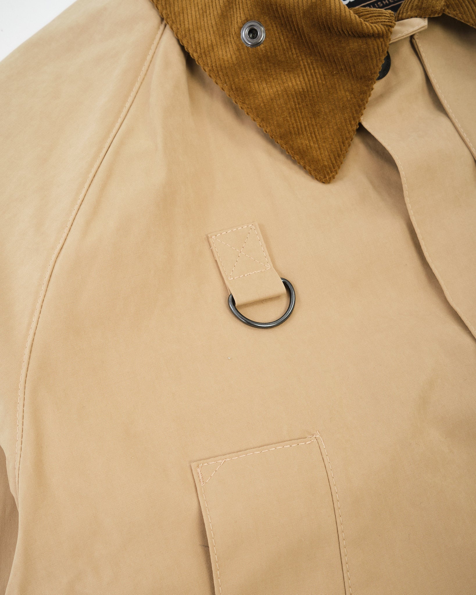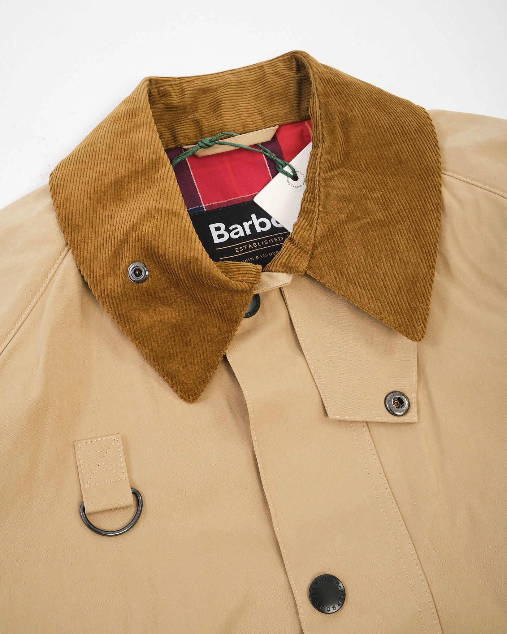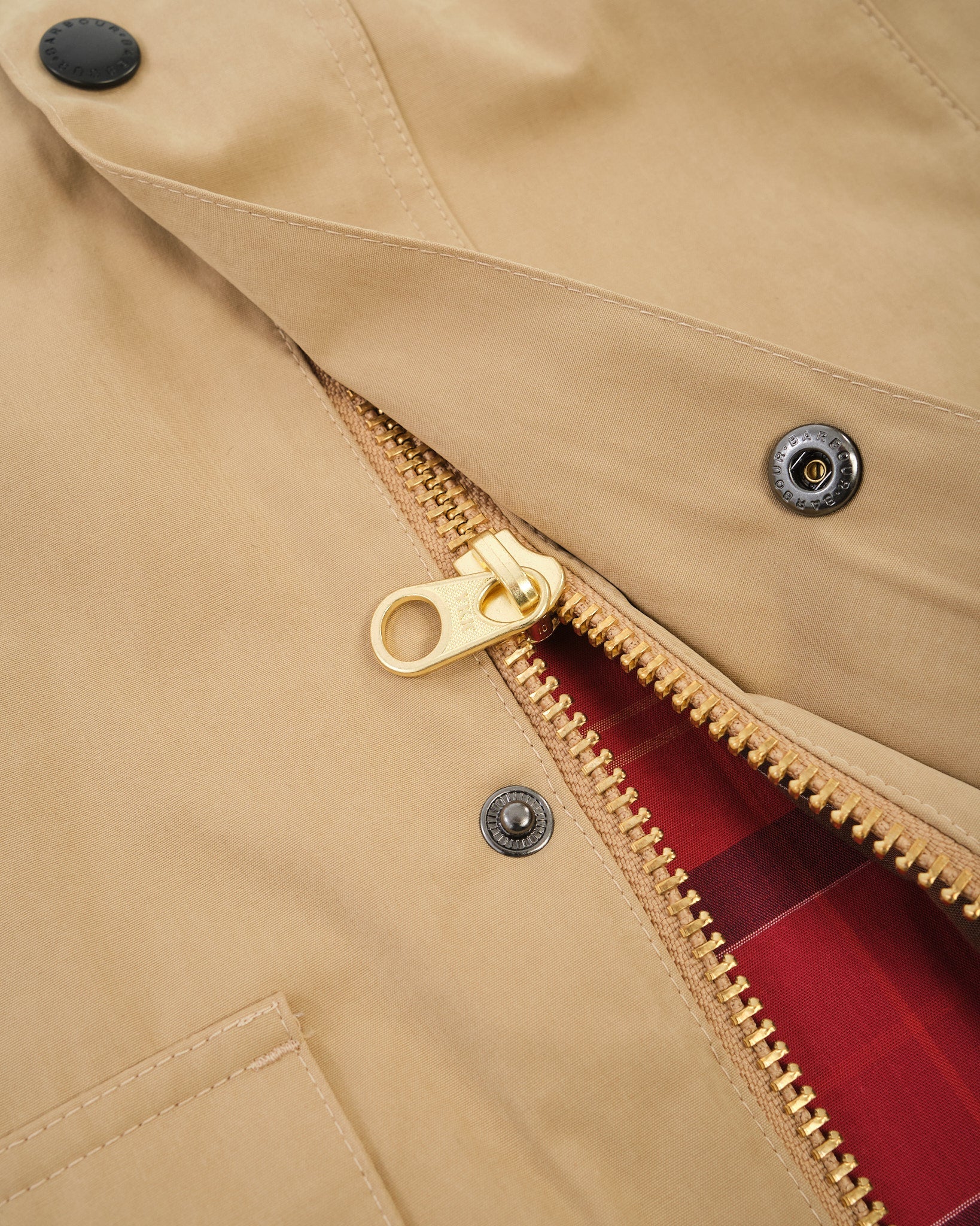 Barbour Solar Spey Casual -takki värissä Stone on rajoitetun erän uudelleentulkinta klassisesta Spey-siluetista, julkaistu Kuu-uudenvuoden kunniaksi. Valmistettu Barbourin allekirjoitusvahatusta puuvillantuntuisesta kankaasta, se tarjoaa kevyen, säänkestävän ulkokerroksen ja terävän viimeistelyn. Sisäpuolella on rohkea punainen versio Barbourin ikonisesta tartan-vuorista, joka symboloi hyvää onnea kiinalaisessa kulttuurissa. Suunnitteluyksityiskohdat sisältävät vakosamettikauluksen kurkkuremmillä, kaksi suurta etuläppätaskua, vetoketjun edessä nappikiinnitteisen myrskyläpän kanssa ja punaisen ylänapin kiinnityksen, jota täydentää Barbourin Kuu-uudenvuoden rintamerkki. Tämä takki yhdistää perinteisen suunnittelun juhlaviin yksityiskohtiin, tehden siitä kauden erottuvan kappaleen.