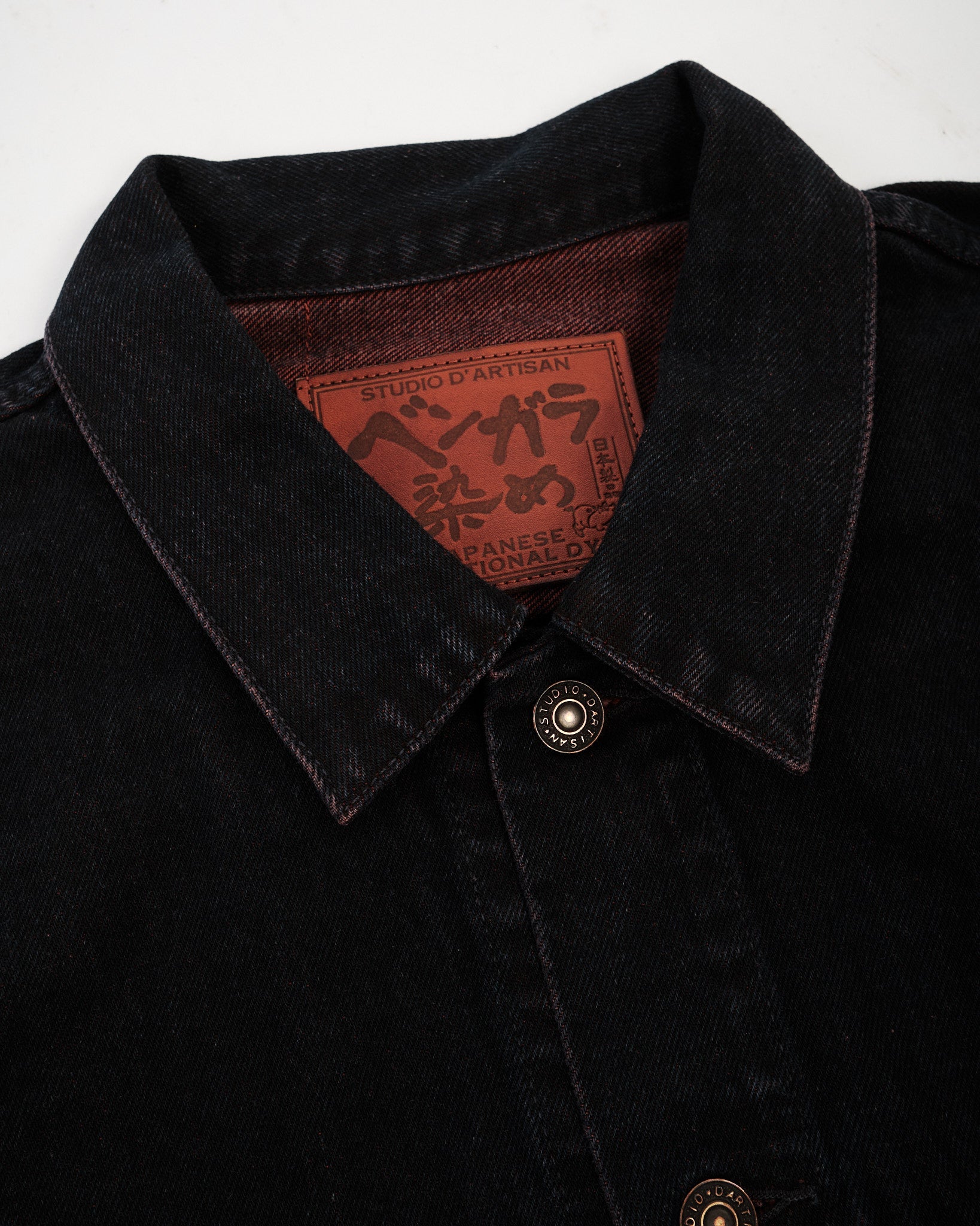 STUDIO D'ARTISAN Bengala-värjätty denimtakki (D4621) punaisena on todistus perinteisten värjäystekniikoiden ja modernin suunnittelun yhdistelmästä. Tämä 3. tyypin denimtakki, joka on valmistettu 15oz denimistä, on ainutlaatuisesti värjätty käyttäen Bengala-pigmenttiä, joka on peräisin maan mineraaleista ja tunnetaan ylivoimaisesta värien kestävyydestä verrattuna kasviperäisiin väreihin. Rikas, lämmin maanpunainen sävy ei ainoastaan ilmentää luonnon kauneutta, vaan myös varmistaa, että takki säilyttää eloisat värinsä ajan myötä.