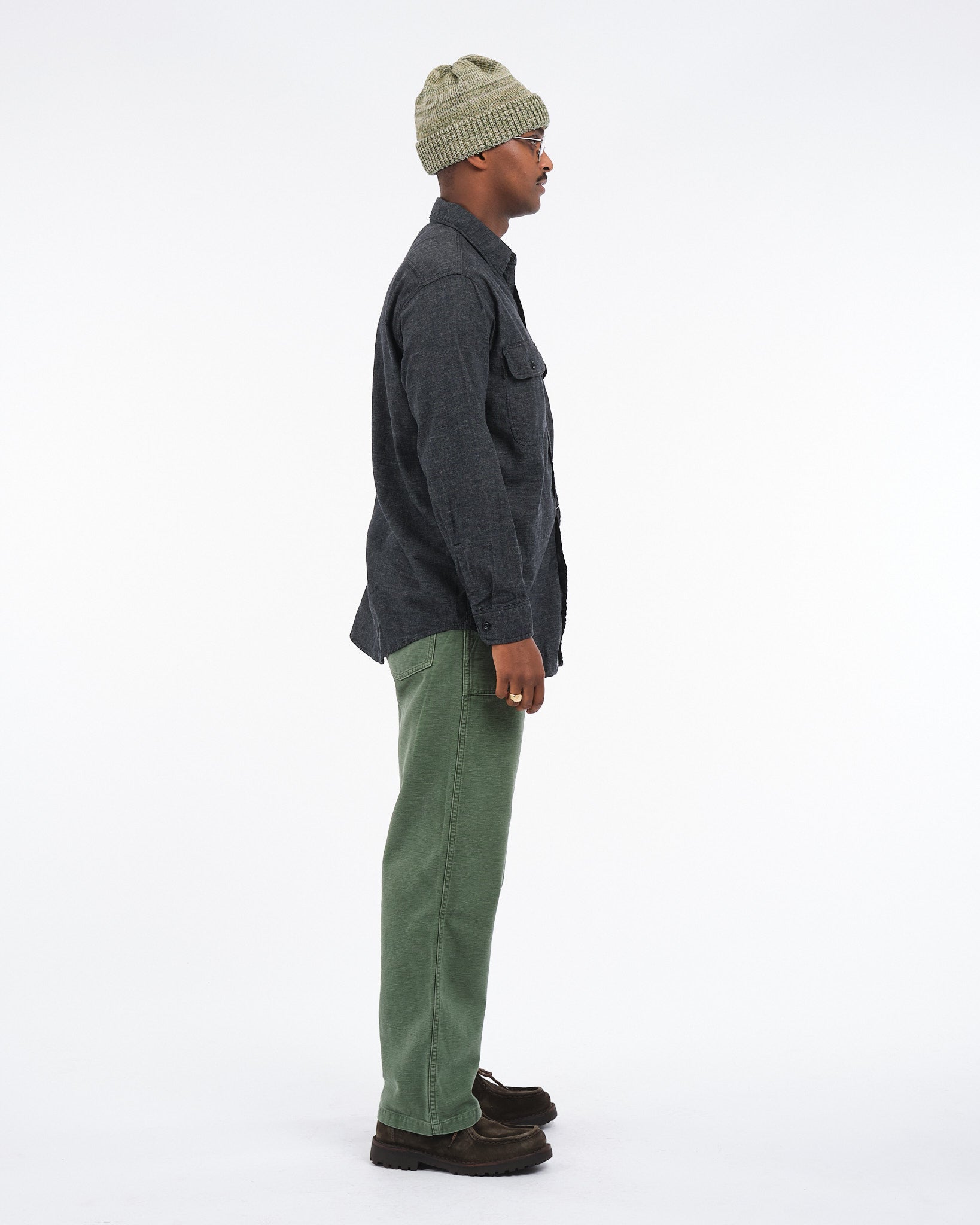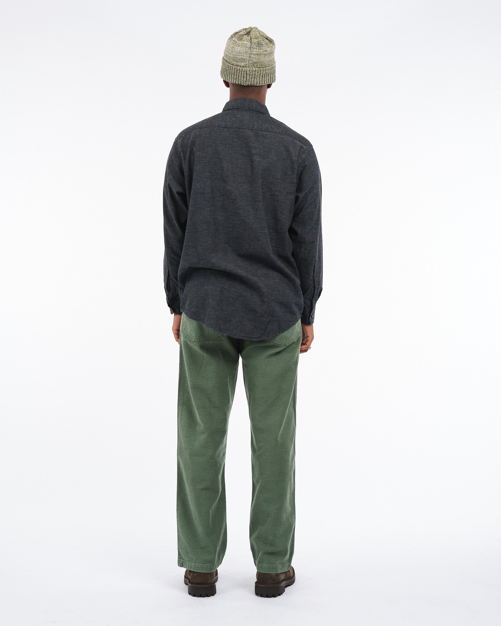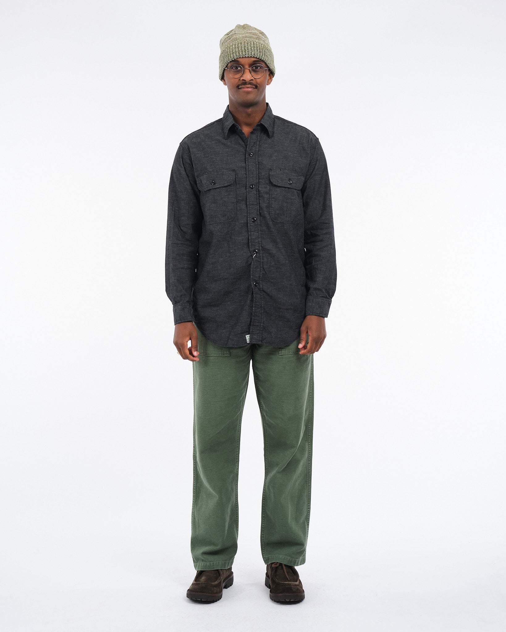 Black Chambray -työpaita orSlow 01 tarjoaa sekoituksen työvaatetusta ja nykyaikaista kosketusta tämän päivän muodin ystäville Japanissa. Valmistettu 100% puuvillachambray-materiaalista Japanissa todisteena orSlown sitoutumisesta erinomaisuuteen, käsityötaidossa sekä ajattomassa estetiikassa. Kestävä, mutta hengittävä musta chambray-kangas tarjoaa tuntuman, joka paranee jokaisella käyttökerralla. Esillä kaksi rintataskua, jotka suljetaan napeilla, istuvassa muotoilussa, joka sopii sekä rennoille retkille että hieman muodollisempiin tilaisuuksiin. Ajan myötä, kun sitä käytetään tilaisuuksissa, chambray-kangas alkaa näyttää omaa persoonallisuuttaan, joka heijastaa kantajansa yksilöllistä tyyliä.