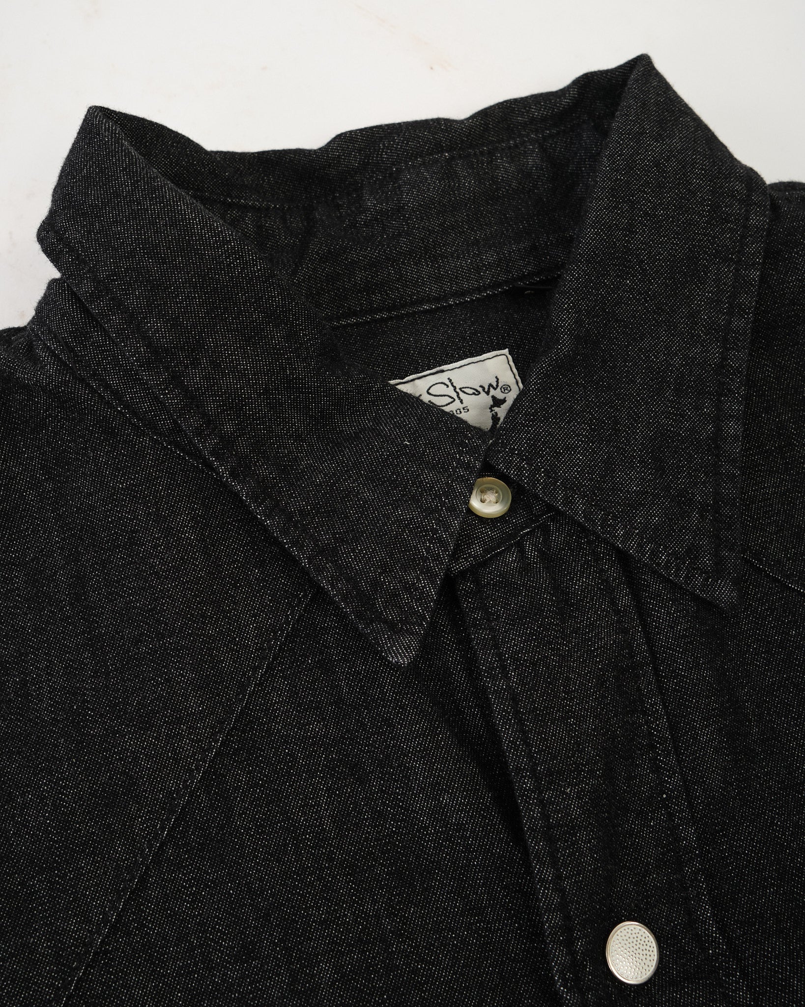 Uskollinen nyökkäys 1960-luvulle, Black Denim Western Shirt merkiltä orSlow (tyyli 01-8124-D61) vangitsee vintage-denimin ulkonäön ja tunteen, joka on nykyään vaikea löytää. Valmistettu Japanissa 6 oz mustasta denimistä, se tasapainottaa juuri oikean siluetin monikäyttöisen pituuden kanssa, joka toimii sekä sisään että ulos työnnettynä. Rintataskut ja erottuvat “mansikanapit” erottavat sen, kun taas kevyt kangas tekee siitä täydellisen kevät-kesä ulkokerrokseksi tai kerrospukeutumisen kappaleeksi viileämmillä kuukausilla.