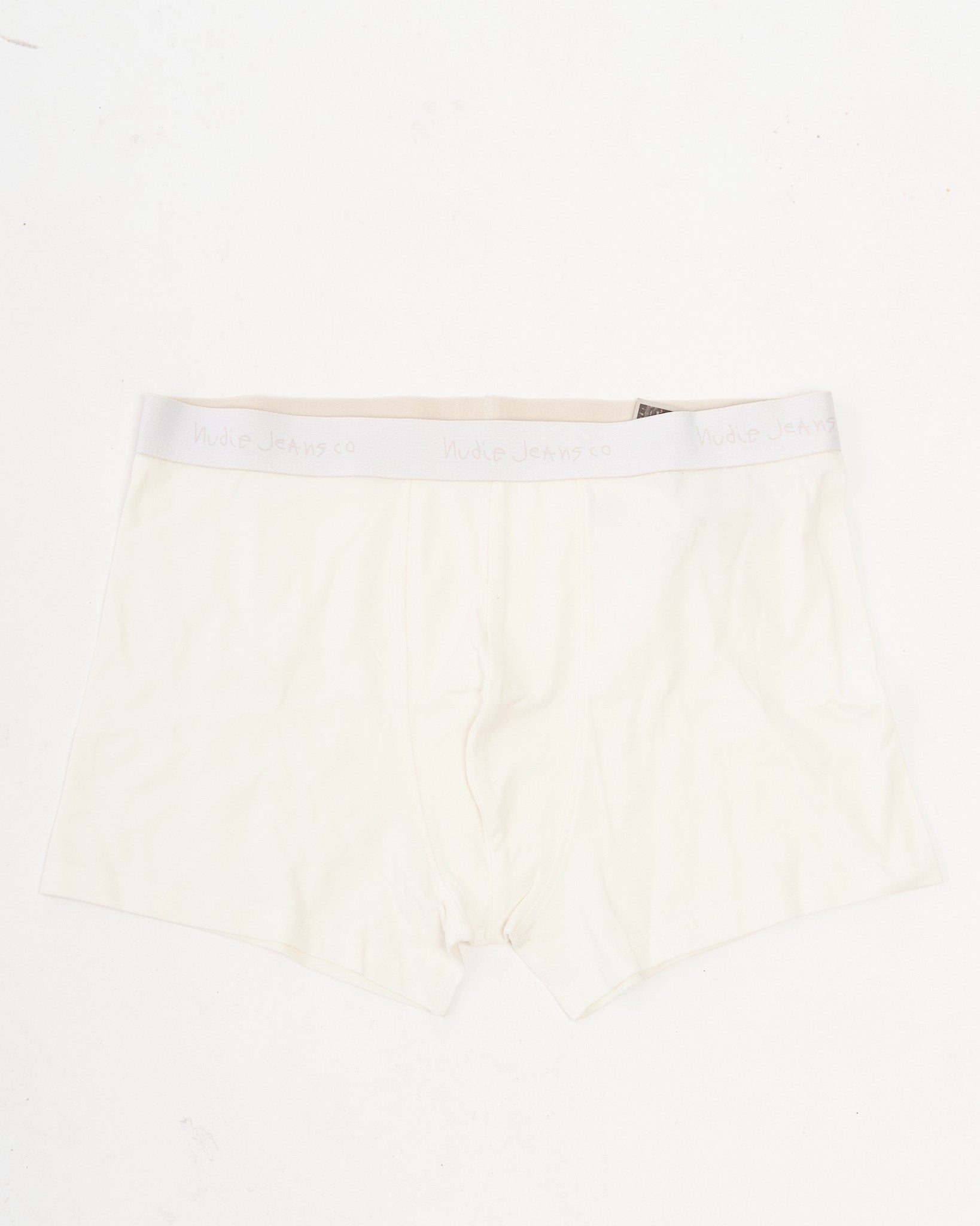 Tuotekoodi: 170283 Valmistettu 95% luomupuuvillasta ja 5% elastaanista pehmeyden ja joustavuuden takaamiseksi. Hengittävä kangas koko päivän mukavuuteen. Offwhite-väri puhtaaseen, ajattomaan ilmeeseen. Joustava vyötärönauha Nudie Jeans Co -logolla. Suunniteltu täydelliseen istuvuuteen ja liikkumisen helppouteen. Kestävä tuotanto heijastaa Nudien ympäristötietoisia arvoja. Kestävä rakenne jokapäiväiseen käyttöön. Sisältää kolme paria kätevässä 3-pakkauksessa. Luotettava lisä perustarpeisiisi, yhdistäen mukavuuden ja vastuullisuuden.