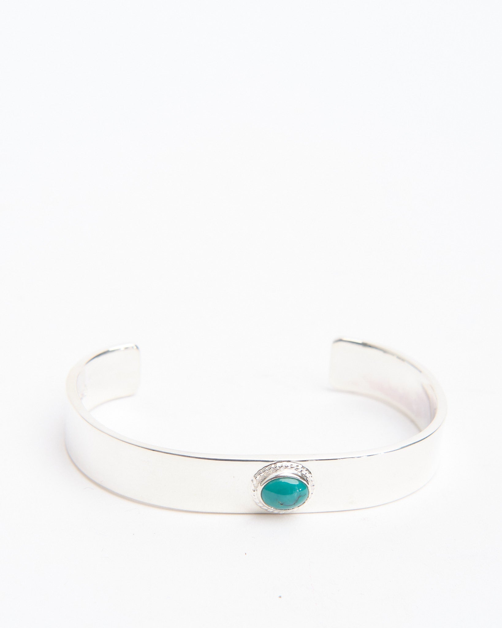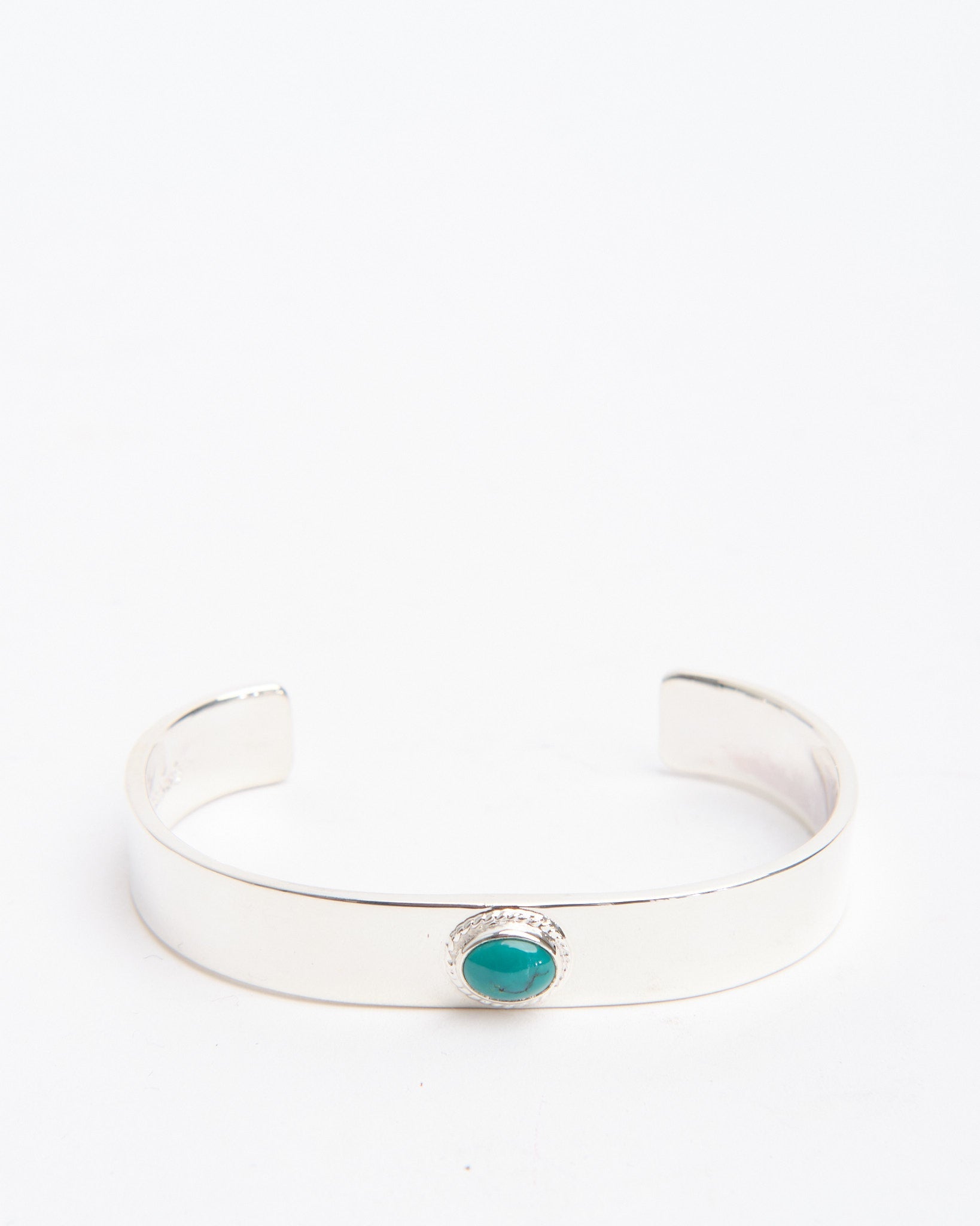 The Flat Hammered 12mm Plane Bungle with Turquoise in L size is a bold piece of jewelry that blends natural beauty with traditional craftsmanship. Handcrafted in Japan from Britannia Silver 950, the wide 12mm band is hammered by hand, giving each bracelet a unique surface that reflects light and movement. A genuine turquoise stone, individually chosen for its natural colour and pattern, is set into the silver as both decoration and symbol. Long regarded as a stone of protection, turquoise adds depth and meaning to the bracelet. Treated with First Arrows’ exclusive heat process, the silver is strong yet radiant, aging with a patina that enhances its contrast with the turquoise. Inspired by Native American jewelry but elevated with refined Japanese craft, this bungle is a lifelong companion with both spirit and style.