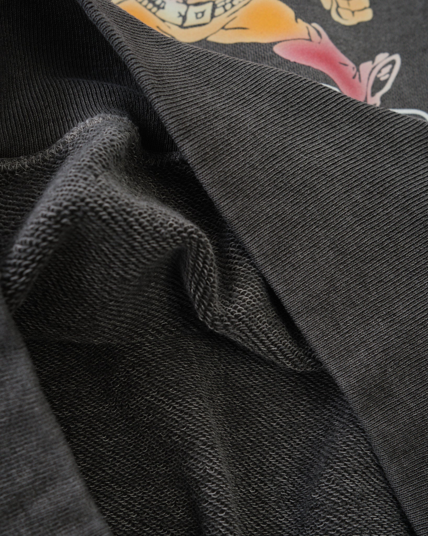 Samettipainettu grafiikka – teksturoitu, vintage-henkinen yksityiskohta