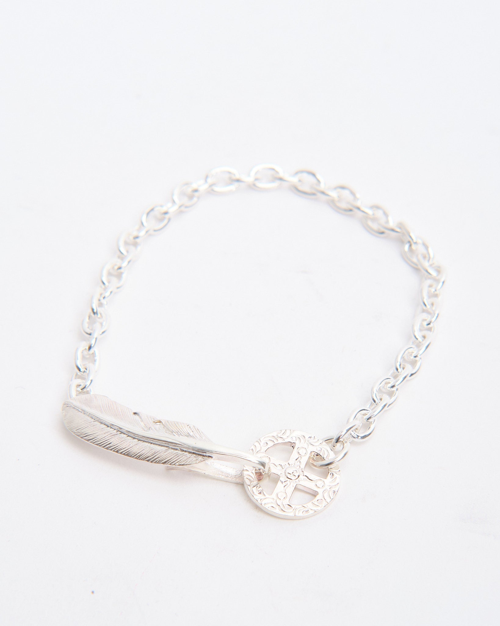 BR-305S FEATHER HOOK+MEDICINE WHEEL CHAIN BRACELET Msize