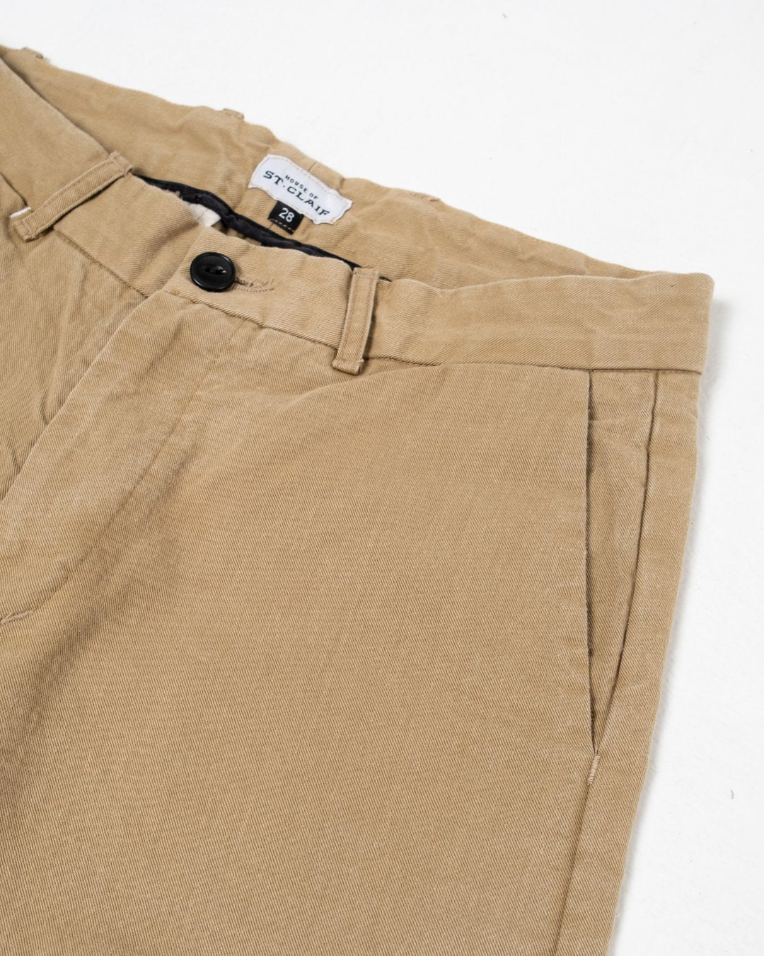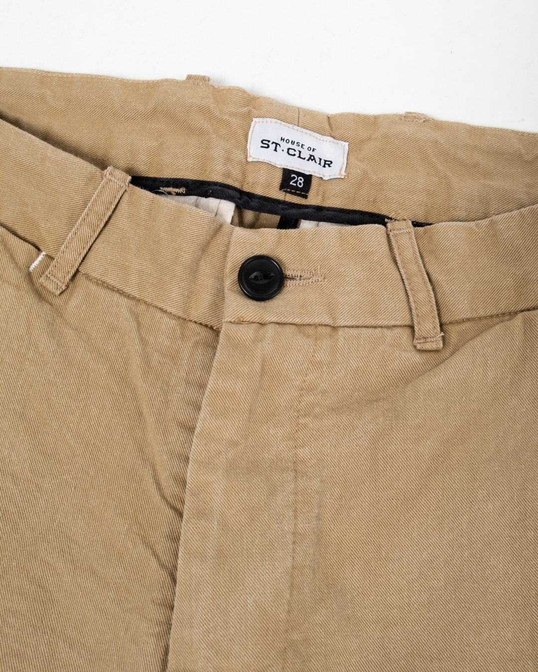 Briggs-housut khakivärisestä twill-kankaasta House of St. Clairilta. Rentomalliset housut puuvillatwillistä, joka on esipesty. Tämä tarkoittaa, että ne eivät kutistu pesussa ja että ne ovat mukavat päällä heti alusta alkaen. Kaksi takataskua, kolikkotasku, etusivun viistotaskut ja vetoketjusepalus. Valmistettu USA:ssa.