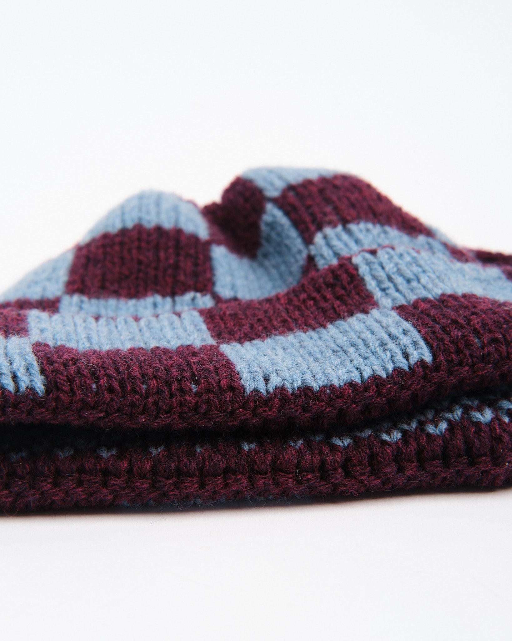 Checker Beanie Raspberry-värissä Found Featherilta yhdistää huippuluokan italialaisen Donegal-villan japanilaiseen käsityötaitoon tarjoten mukavaa päähinettä värikkäällä luonteella. Jacquard-neuleena kudottu käyttäen pehmeää, joustavaa lankaa, se tarjoaa mukavuutta, rakennetta ja leikkisää tekstuuria. Yhden paneelin design, tavallinen 7 cm leveä reuna ja 18 cm korkea kruunu antavat sille klassisen siluetin, kun taas QR-koodattu hoito-ohje lisää fiksun kosketuksen. Pestävä, unisex ja erittäin monipuolinen — tämä pipo tasapainottaa perinnettä ja innovaatiota vaivattomasti.
