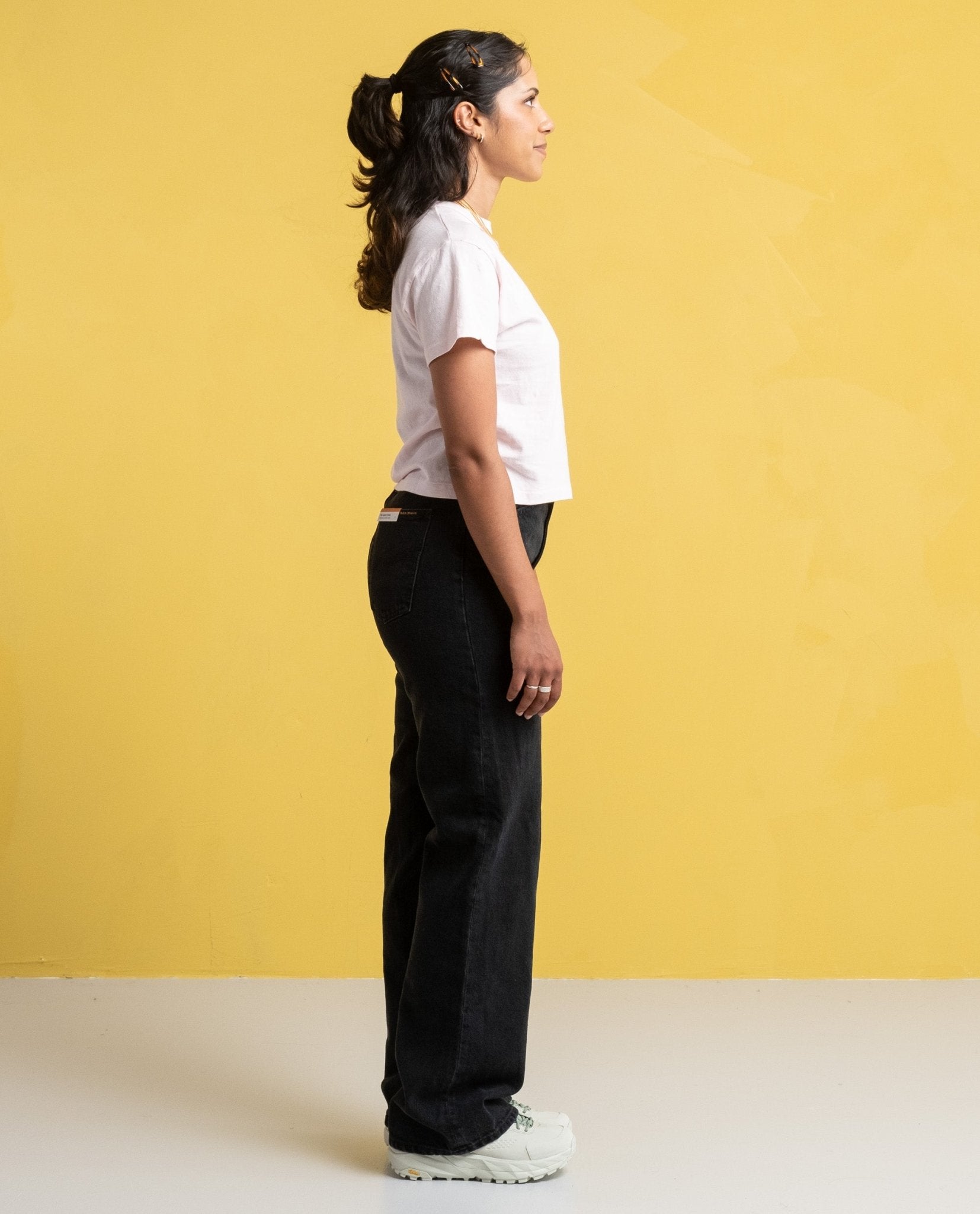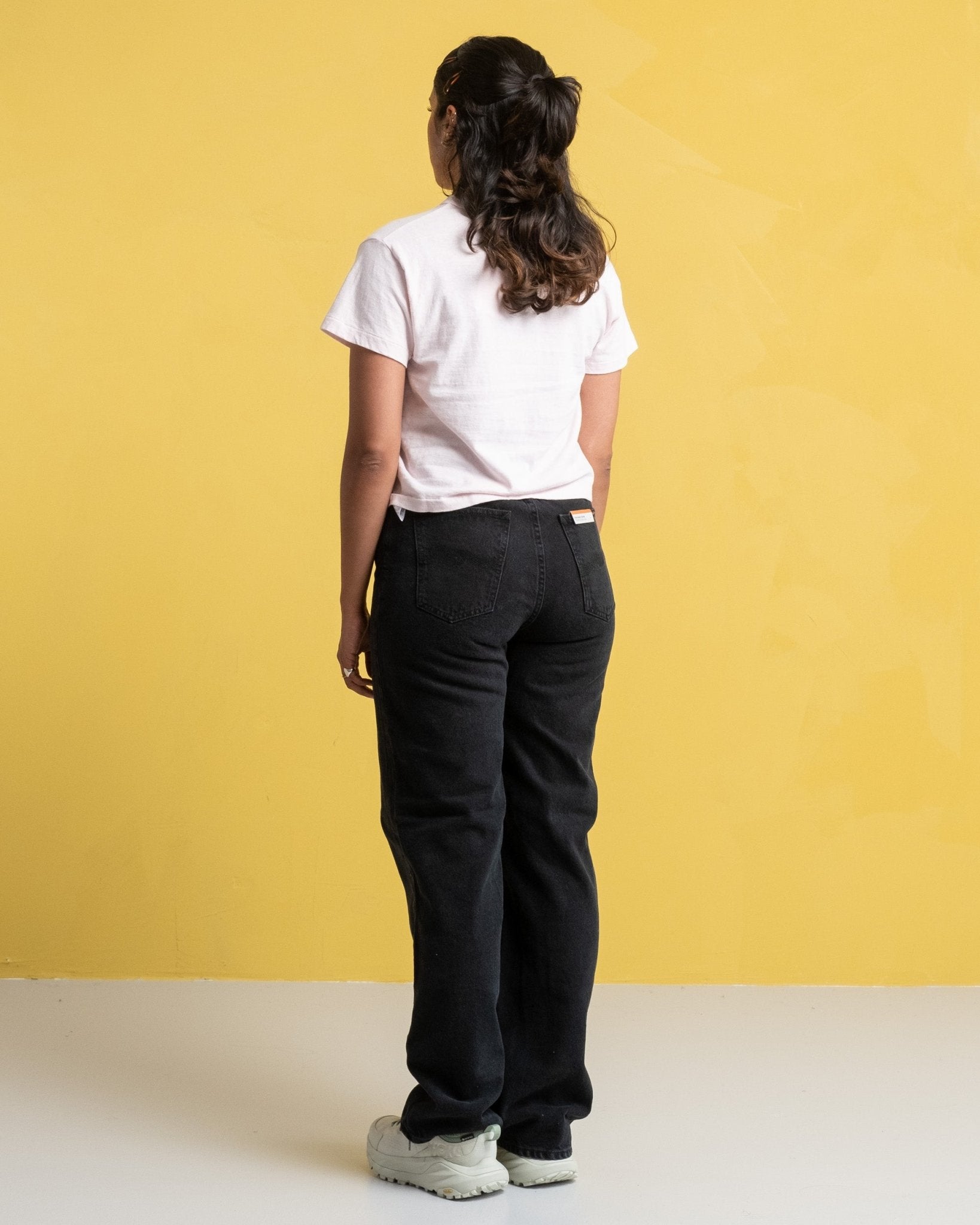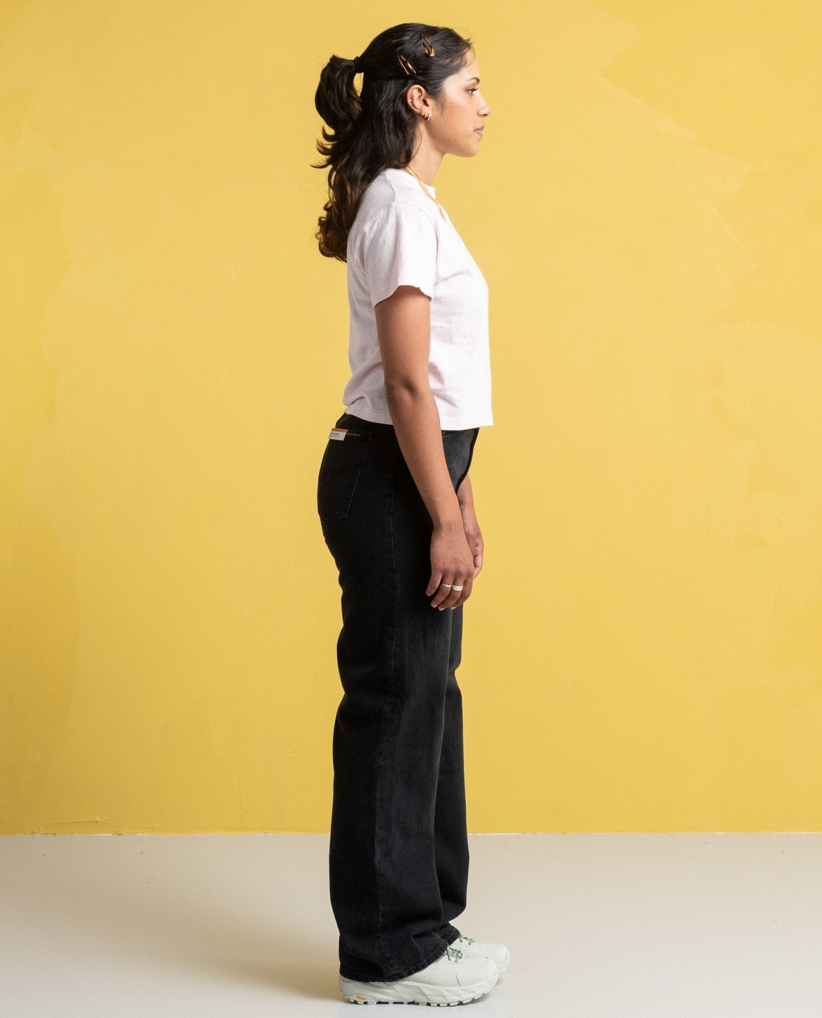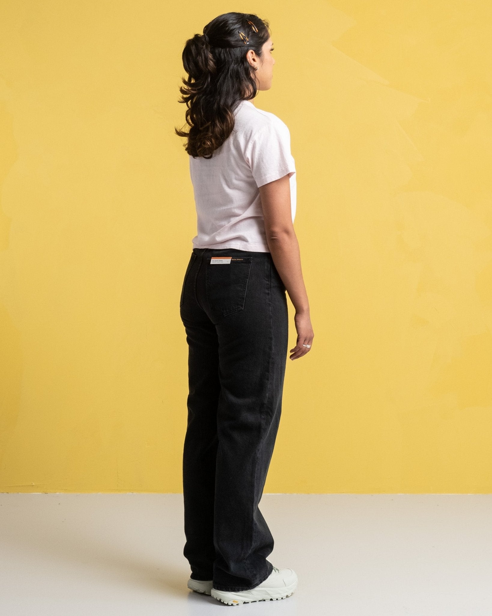 Clean Eileen Washed Out Black Nudie Jeans Co:lta. Väljät naisten farkut, joissa on korkea vyötärö ja leveät lahkeet. Tässä ihastuttavassa mustassa pesussa hienovarainen kulunut ilme. Valmistettu 100% luomupuuvillasta. Valmistettu Tunisiassa.