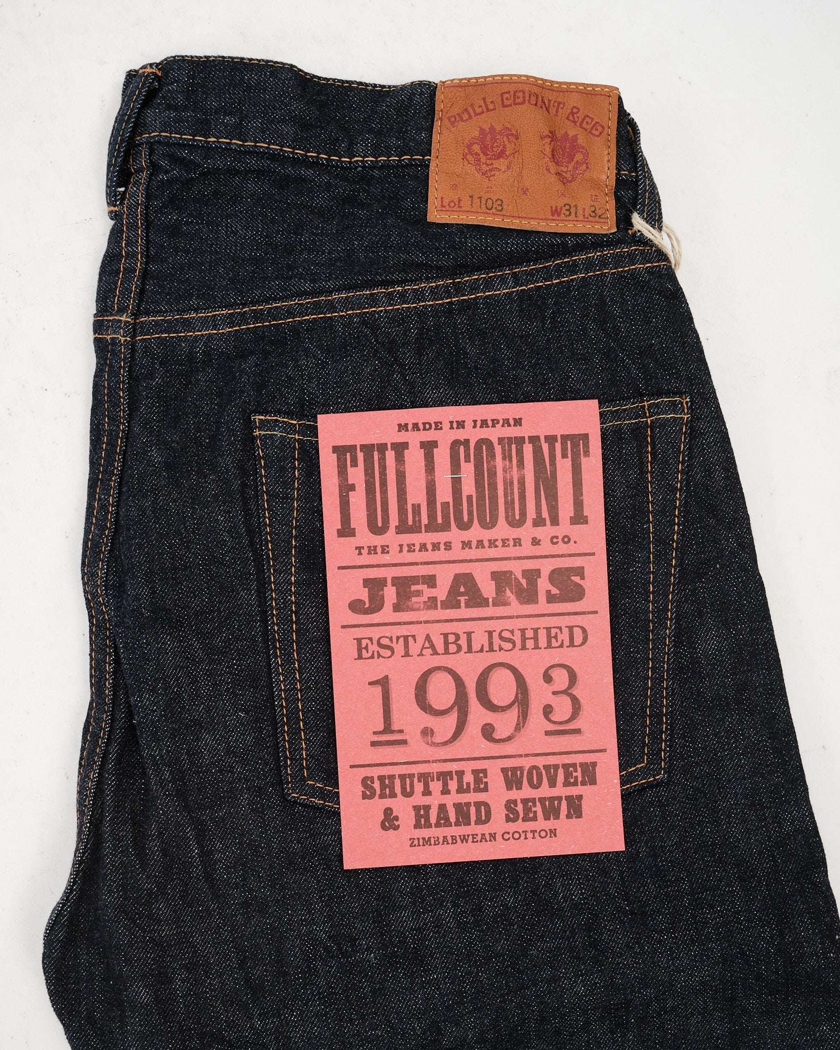 FULL COUNT 1103W-23 CLEAN STRAIGHT DENIM INDIGO BLUE (1103W-23) esittelee uuden siluetin, joka on suunniteltu tasapainottamaan rakennetta ja monipuolisuutta. Kehitetty osana Full Countin 30-vuotisjuhlamallistoa, tämä Clean Straight -leikkaus sijoittuu täydellisesti 1101 ja 1108 -mallien väliin, ominaisuuksina reisien leveys lähellä mallia 1101 ja lahkeensuun leveys samankaltainen kuin mallissa 1108. Valmistettu 13,7 unssin alkuperäisestä reunavahvistetusta denimistä, joka on kudottu 100 % Zimbabwen puuvillasta, nämä farkut tarjoavat kestävyyttä, mukavuutta ja sileän tekstuurin, joka pehmenee kauniisti käytössä. Hienovarainen yksityiskohta—viistosti kallistettu takimmainen keskimmäinen vyölenkki—lisää erottuvan kosketuksen. Olipa kyseessä yksi pesu tai pesemätön, tämä tyyli on uusi suosikki farkkujen ystäville.