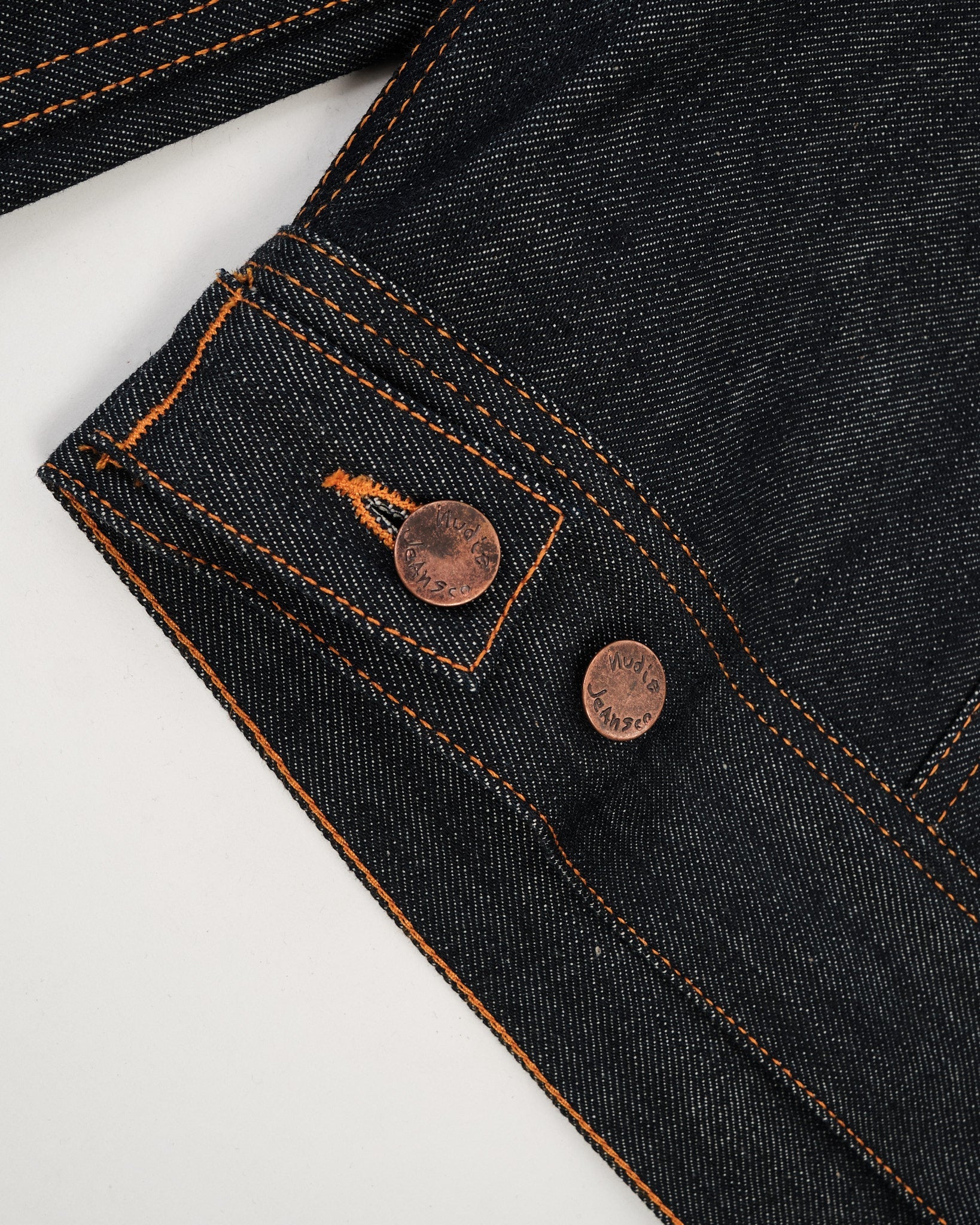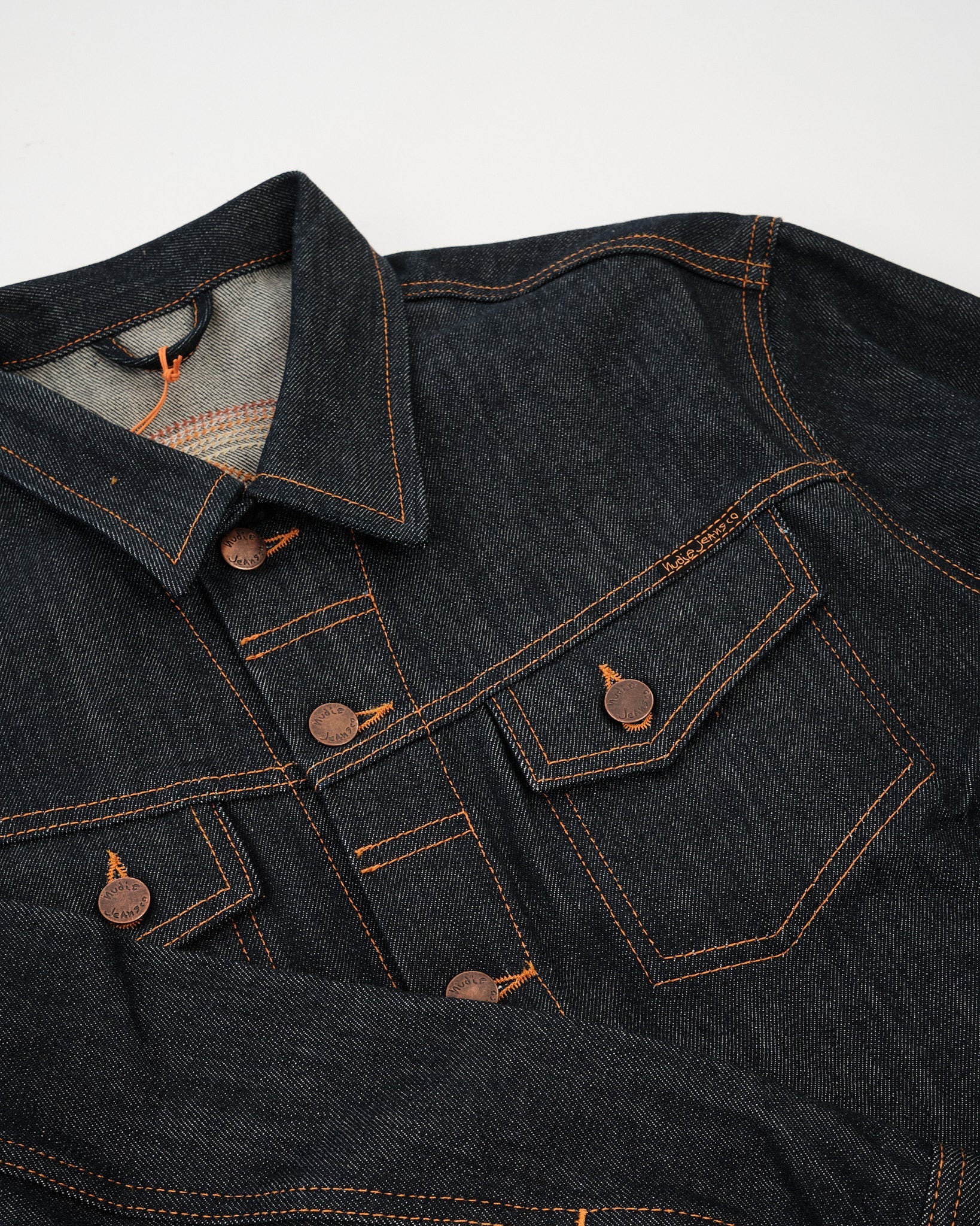 Conny Denim -takki Sunburns Blue -värissä on Nudien terävin otto ajattomaan klassikkoon. Se on valmistettu 14,2 unssin jäykästä denimiistä, joka on tehty uusiutuvasta luomupuuvillasta, ja se yhdistää kestävyyden sitoutumiseen kestävyyteen. Erikoisuutena on liukuvärjätty "sunburns"-kirjailu takakappaleen yläosassa - rohkea kosketus, joka nostaa tämän slim-fit -takin vaatekaapin peruspilarista keskustelunaiheeksi. Viimeistelty kuparinapeilla, oranssilla langalla ja jacron-läiskällä, Conny on tehty kovaan käyttöön ja kauniisti haalistumaan.