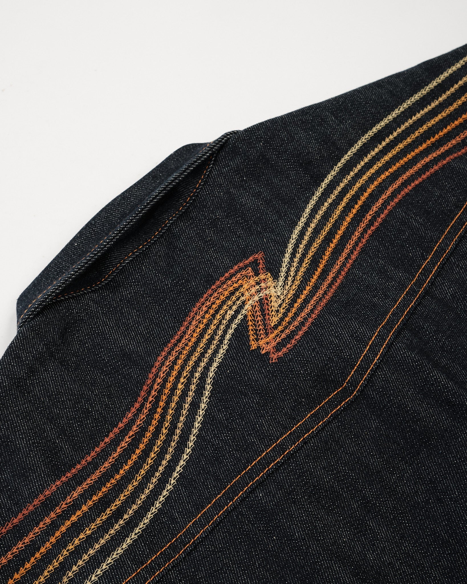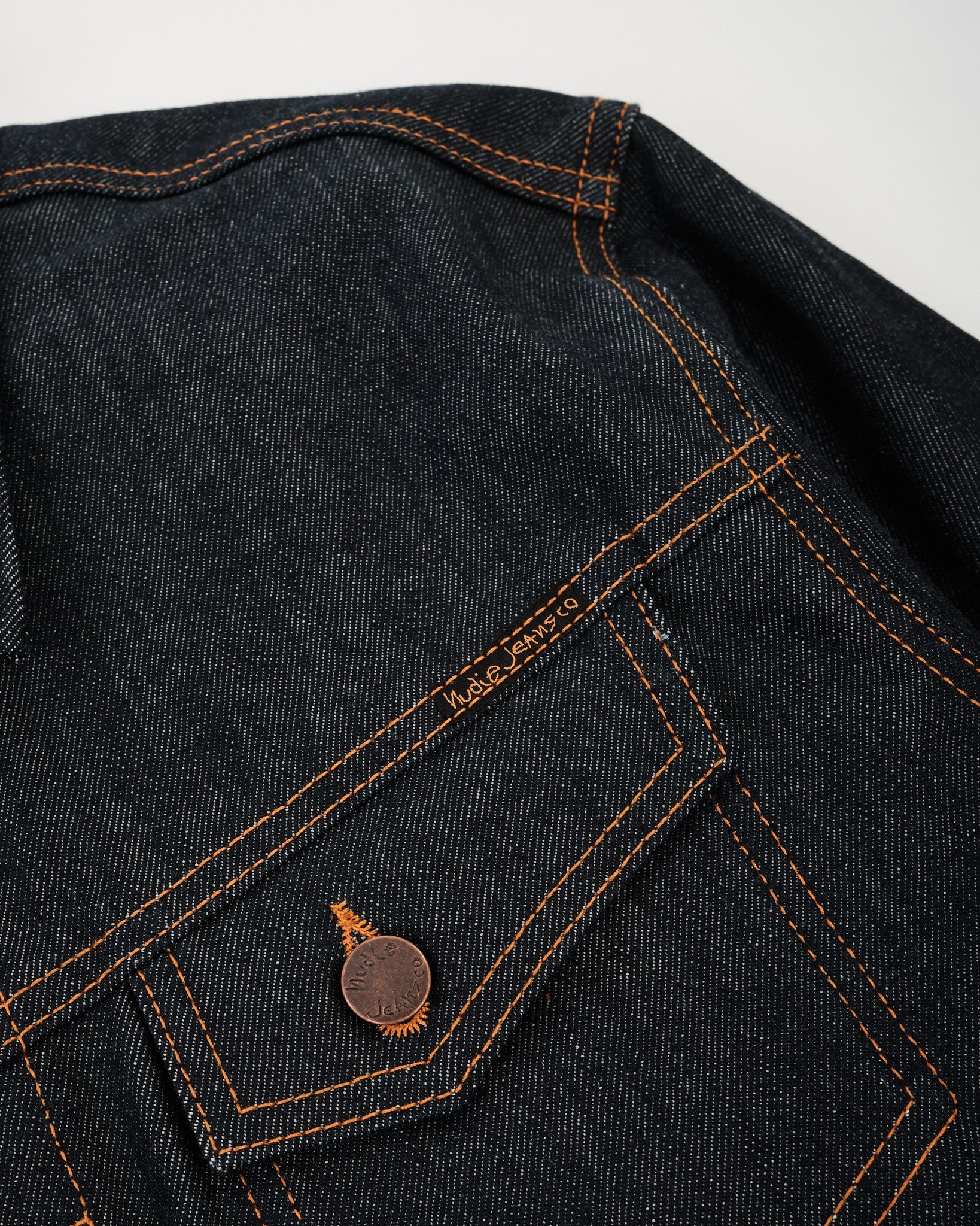 Conny Denim -takki Sunburns Blue -värissä on Nudien terävin otto ajattomaan klassikkoon. Se on valmistettu 14,2 unssin jäykästä denimiistä, joka on tehty uusiutuvasta luomupuuvillasta, ja se yhdistää kestävyyden sitoutumiseen kestävyyteen. Erikoisuutena on liukuvärjätty "sunburns"-kirjailu takakappaleen yläosassa - rohkea kosketus, joka nostaa tämän slim-fit -takin vaatekaapin peruspilarista keskustelunaiheeksi. Viimeistelty kuparinapeilla, oranssilla langalla ja jacron-läiskällä, Conny on tehty kovaan käyttöön ja kauniisti haalistumaan.