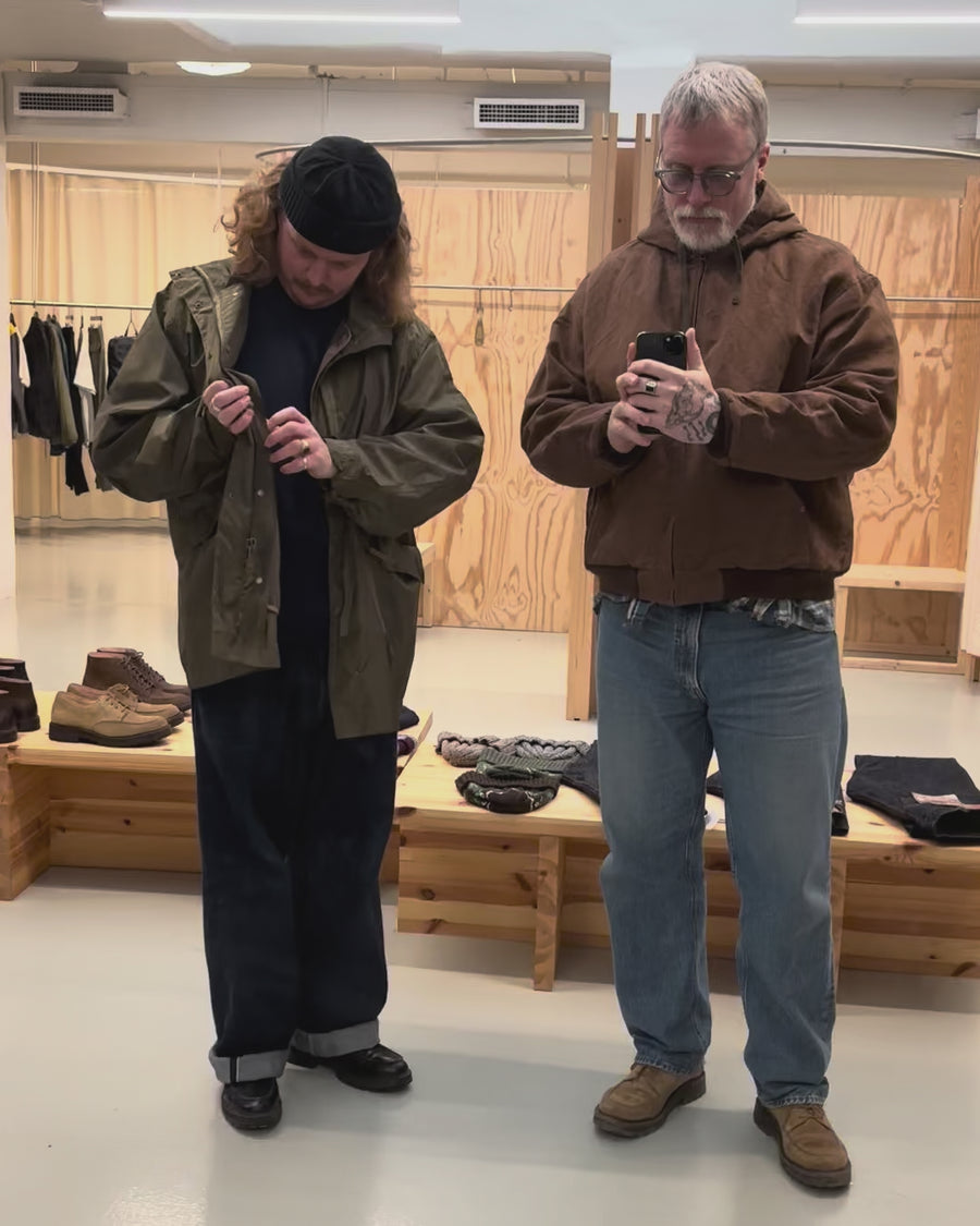 KAPTAIN SUNSHINE Cotton Hemp Hoody Jacket (KS25FJK15) Kakishibu-värissä yhdistää kestävyyden vintage-estetiikkaan. Valmistettu paksusta Oxford-kankaasta, tämä takki on kudottu paksusta puuvillaloimesta ja hamppukuteesta tiheässä kudoksessa. Se on pesty monta kertaa ilman jännitystä, luoden pehmeän, tilavan tekstuuri, joka antaa sille ylellisen tuntuman ja mukavuuden. Takin erityinen värjäysprosessi antaa sille rikkaan, vintagea muistuttavan viimeistelyn, varmistaen, että se ikääntyy kauniisti ajan myötä.