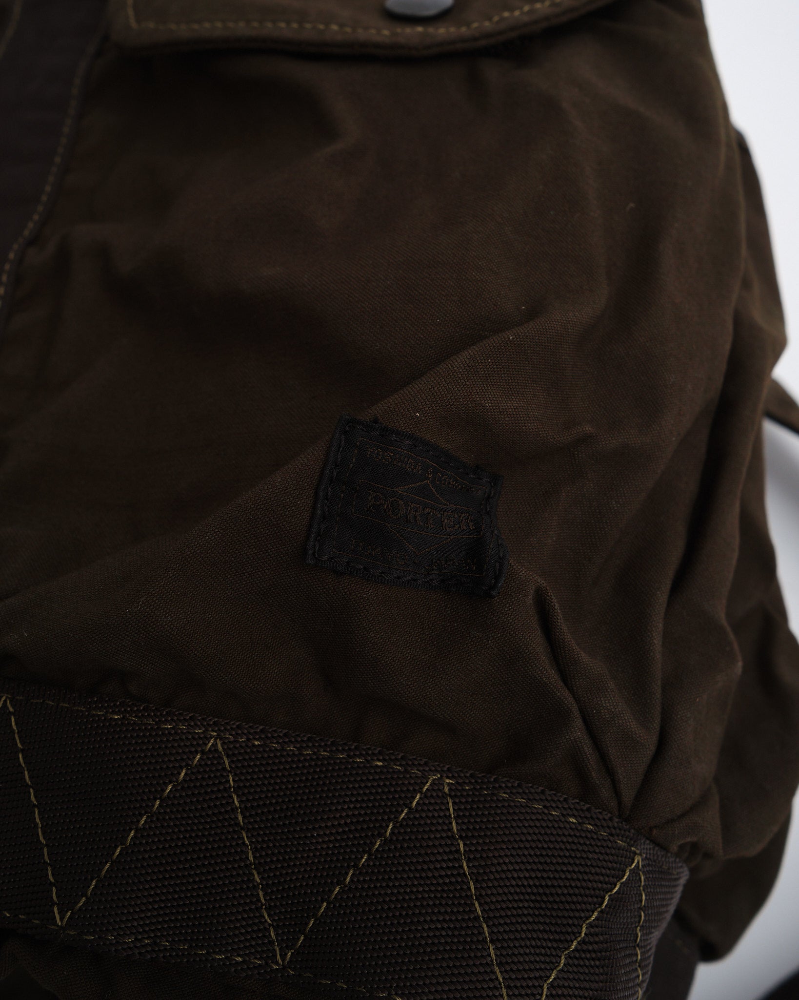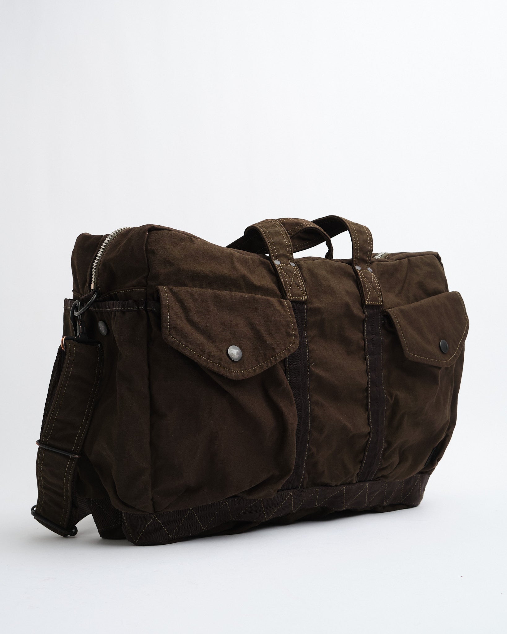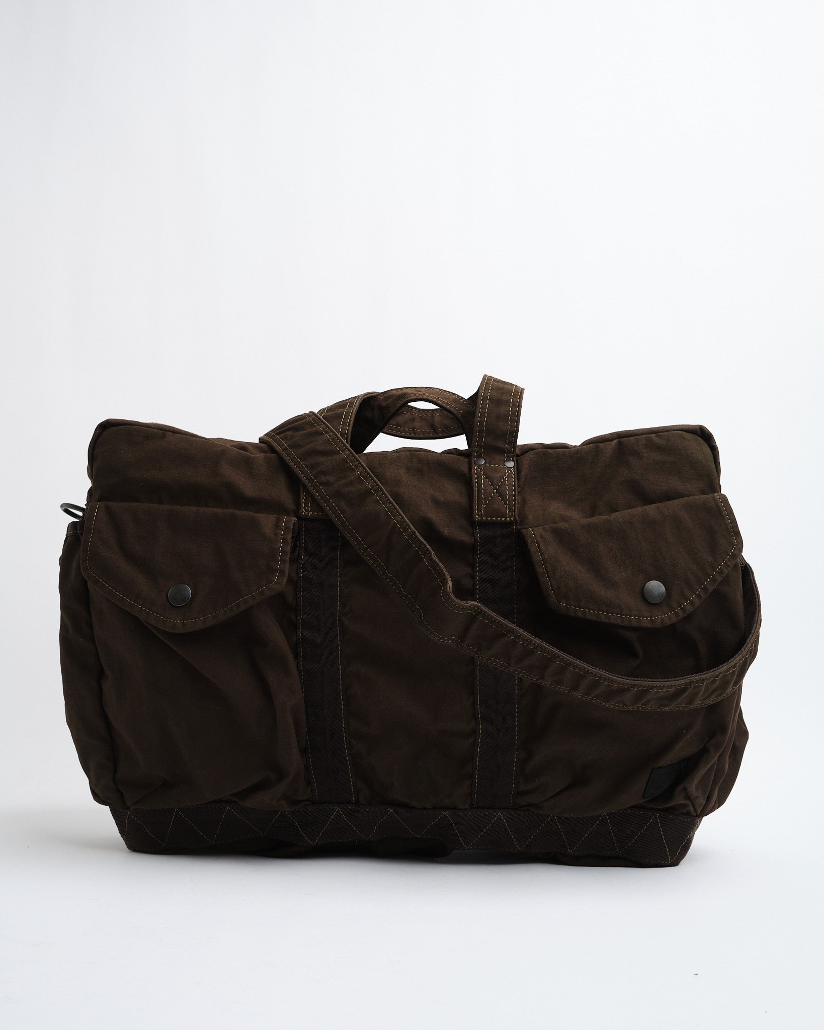 PORTER-YOSHIDA & CO. CRAG 2WAY BOSTON BAG (S) khakinvärisenä on monipuolinen ja kestävä kumppani päivittäiseen käyttöön ja matkustukseen. Japanissa valmistettu laukku on tehty tiheästä nylonista ja puuvillasekoitteesta, joka on värjätty vaatevärjäystekniikalla ainutlaatuisen värin ja tekstuurin saavuttamiseksi. Laukussa on tilava päälokero, useita taskuja tavaroiden järjestämiseen ja joustavuus kantaa sitä kädessä tai irrotettavalla olkahihnalla. Sen sotilasinspiroima design yhdistää toiminnallisuuden ajattomaan viehätykseen, heijastaen ylivoimaista japanilaista käsityötaitoa.