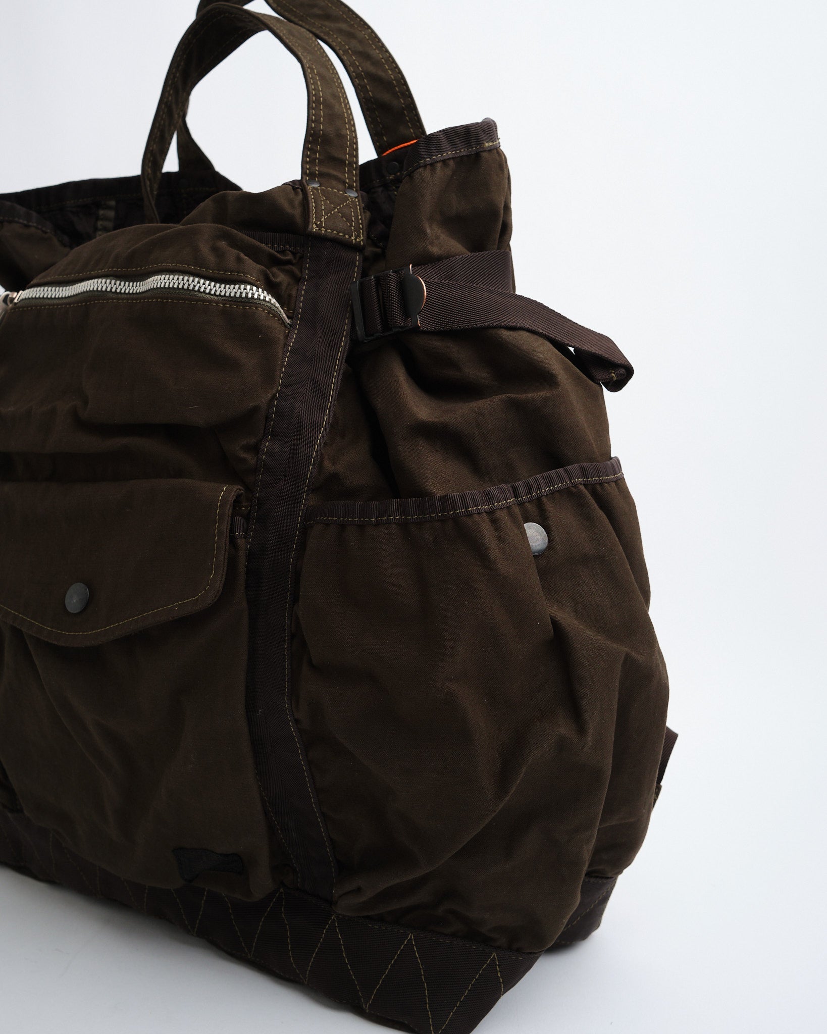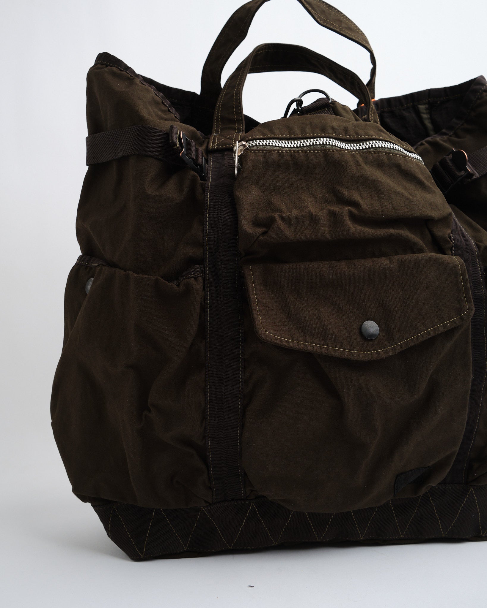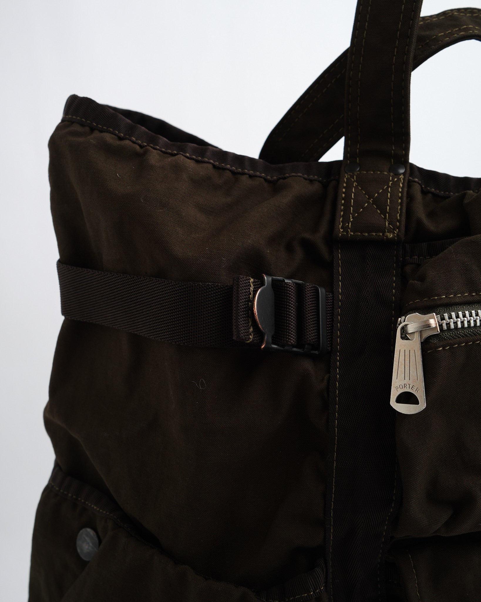 Esittelyssä PORTER-YOSHIDA CRAG 2Way Reppu Khakissa—monipuolinen ja kestävä reppu, joka on saanut inspiraationsa vintage-sotilassuunnittelusta. Korkeatiheyksisestä takasatiinista valmistettu, 50% puuvillaa ja 50% nylonia sisältävä reppu tarjoaa sekä kestävyyttä että ainutlaatuista tekstuuria. Vaatteen värjäyksessä saavutettu rikas, syvä sävy on saatu aikaan kestävän kahden kylvyn värjäysprosessin avulla Kurashikissa, Okayamassa. Useiden kantovaihtoehtojen, mukaan lukien kassityyliset kahvat ja säädettävät olkahihnat, sekä runsaan säilytystilan kautta, tämä laukku yhdistää saumattomasti toiminnallisuuden ja ajattoman tyylin. Käsintehty Japanissa, se on esimerkki ylivoimaisesta käsityötaidosta ja huomiosta yksityiskohtiin.