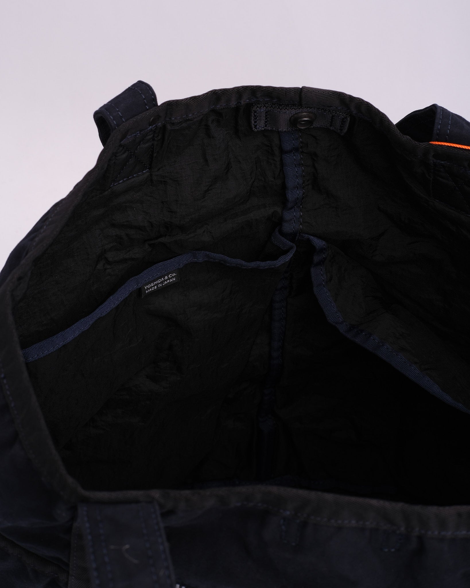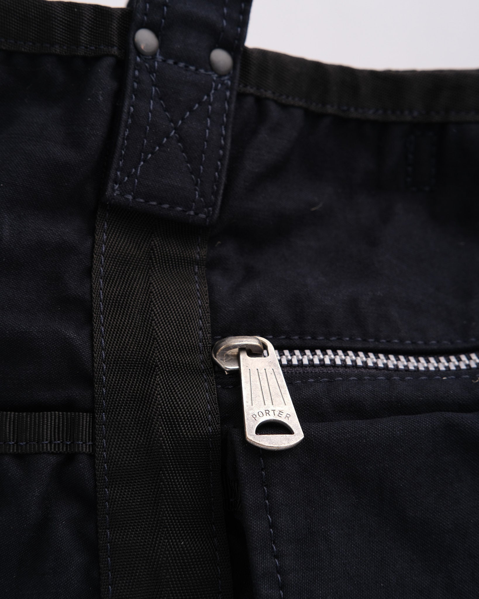 PORTER BY YOSHIDA Crag Tote Bag (540-19643-50) on osa PORTER CRAG -sarjaa, joka on tunnettu ainutlaatuisesta tuotteen värjäysprosessista, joka luo syviä, rikkaita värejä ja tekstuureja. Valmistettu selkäsatiiinikankaasta, tiheästä nylonin ja puuvillan sekoituksesta, laukku on sekä kestävä että kevyt. Kaksikylpyvärjäys -tekniikka varmistaa moniulotteiset sävyt ja luonnolliset vaihtelut, tehden jokaisesta laukusta ainutlaatuisen.