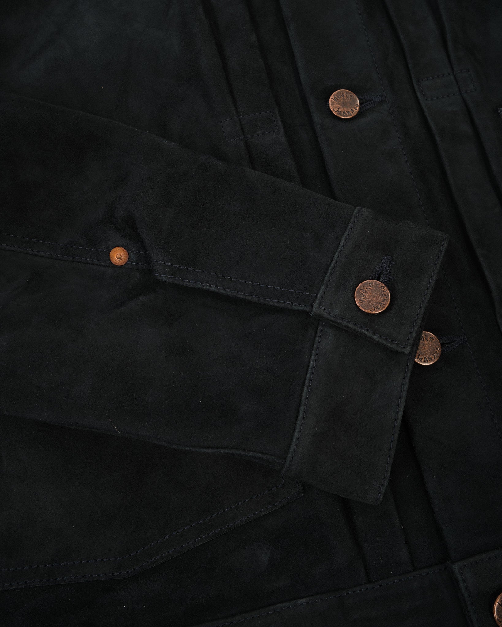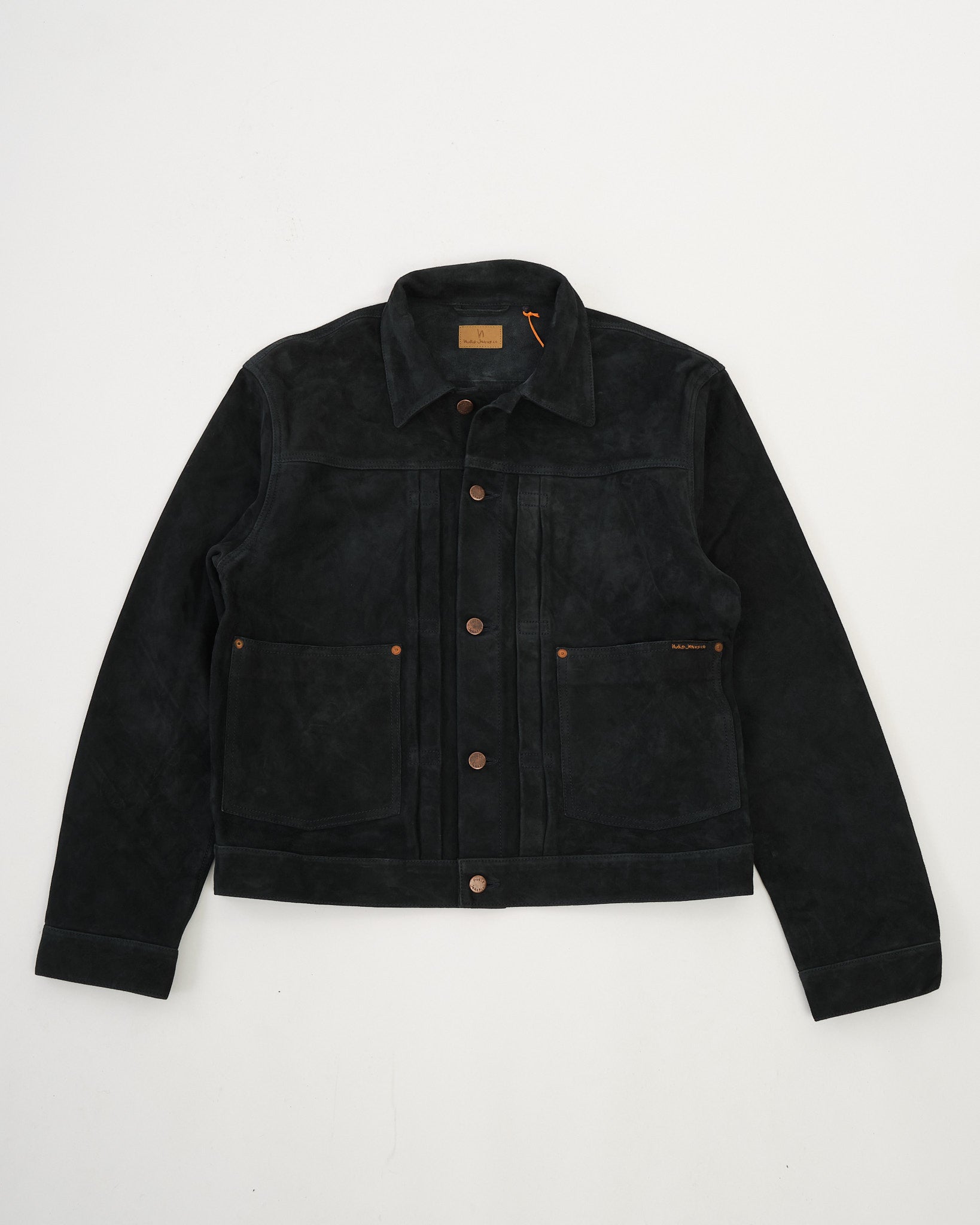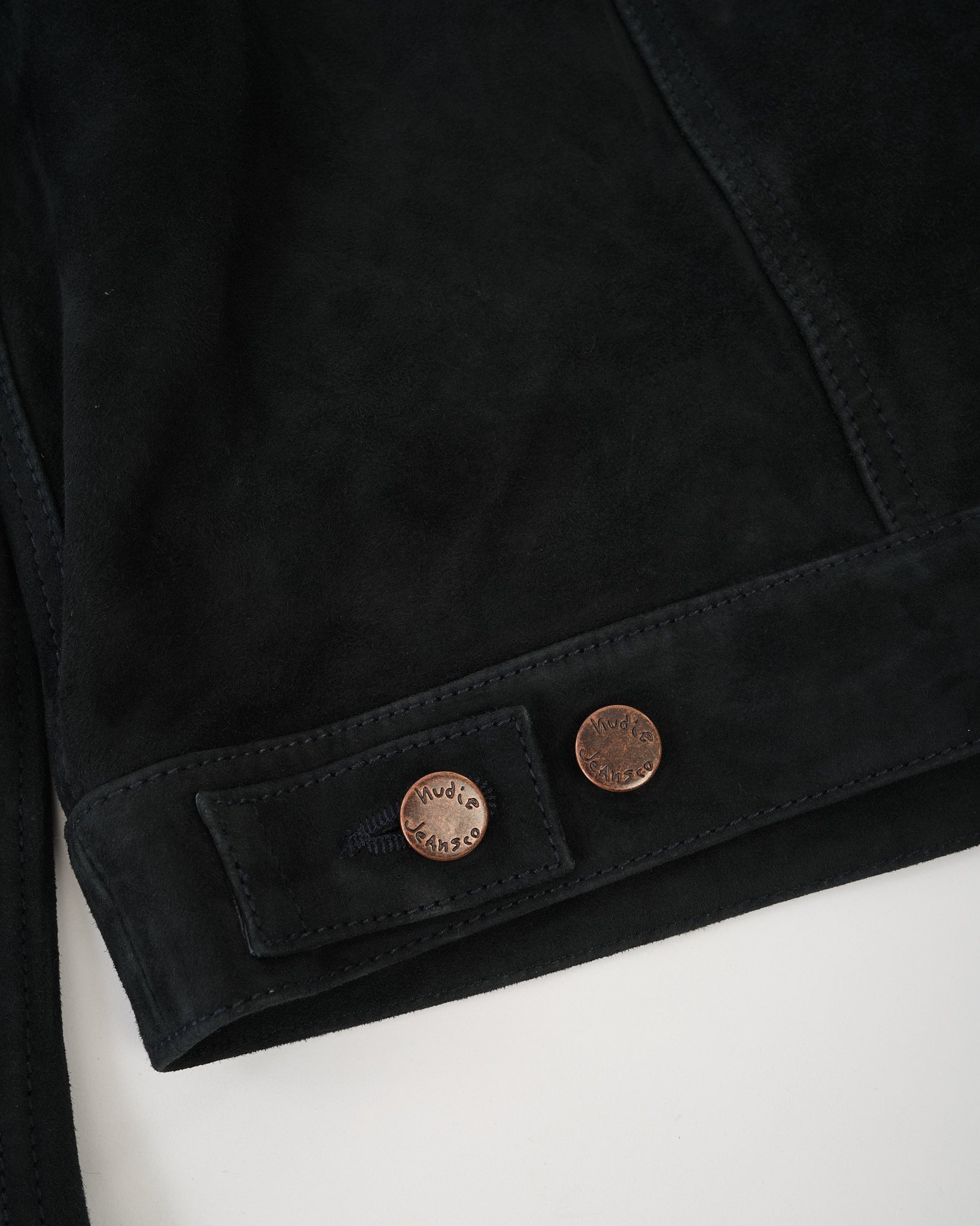 NUDIE JEANS CO. DANTE II MOKKANAHKATAKKI NAVY on hienostunut otos klassisesta farkkutakin siluetista, valmistettu poikkeuksellisen pehmeästä ja taipuisasta vuohenmokkanahasta. Tumma, vaaleansininen sävy korostaa mokkanahan rikasta tekstuuria, antaen sille vaivattoman tyylikkään ilmeen.