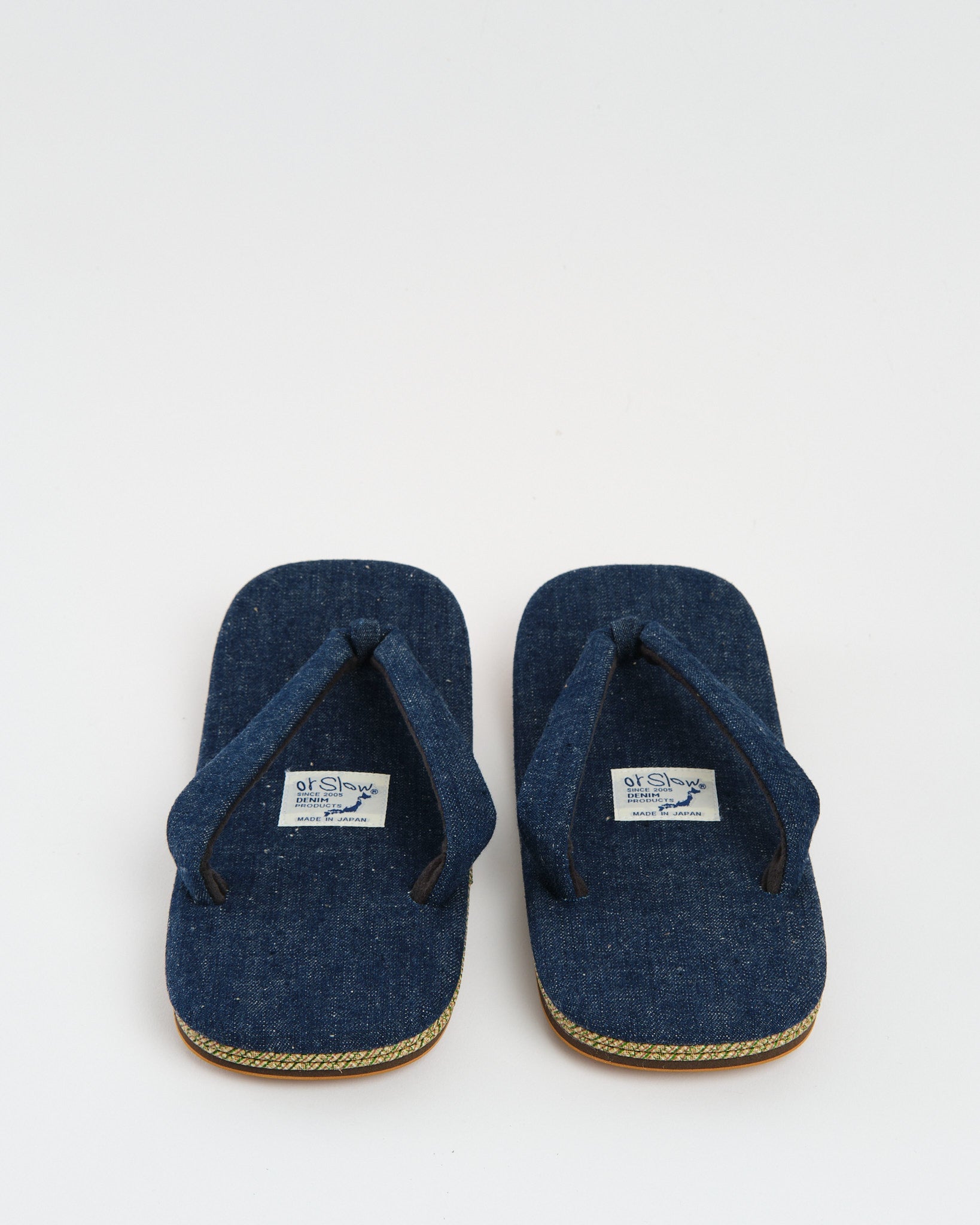 Koe japanilainen kulttuuri orSlow'n Denim Setta -sandaaleilla. Nämä sandaalit on valmistettu alkuperäisestä 9oz denimmateriaalista, joka tarjoaa ainutlaatuisen tekstuuriin ja rennon ulkonäön. Sisäpuolella on eläväinen kuvio, joka luo silmiinpistävän kontrastin denimiin nähden. Pohjaan on lisätty nahkamainen materiaali, antaen sandaaleille ripauksen ylellisyyttä. Sen One Wash -viimeistely korostaa sen erottuvaa estetiikkaa. Nautittavaksi paljain jaloin tai sukkien kanssa, nämä sandaalit ovat täydellinen lisä rennoon asukokonaisuuteesi. Valmistettu Japanissa, laadun ja tyylitajun keskiössä.