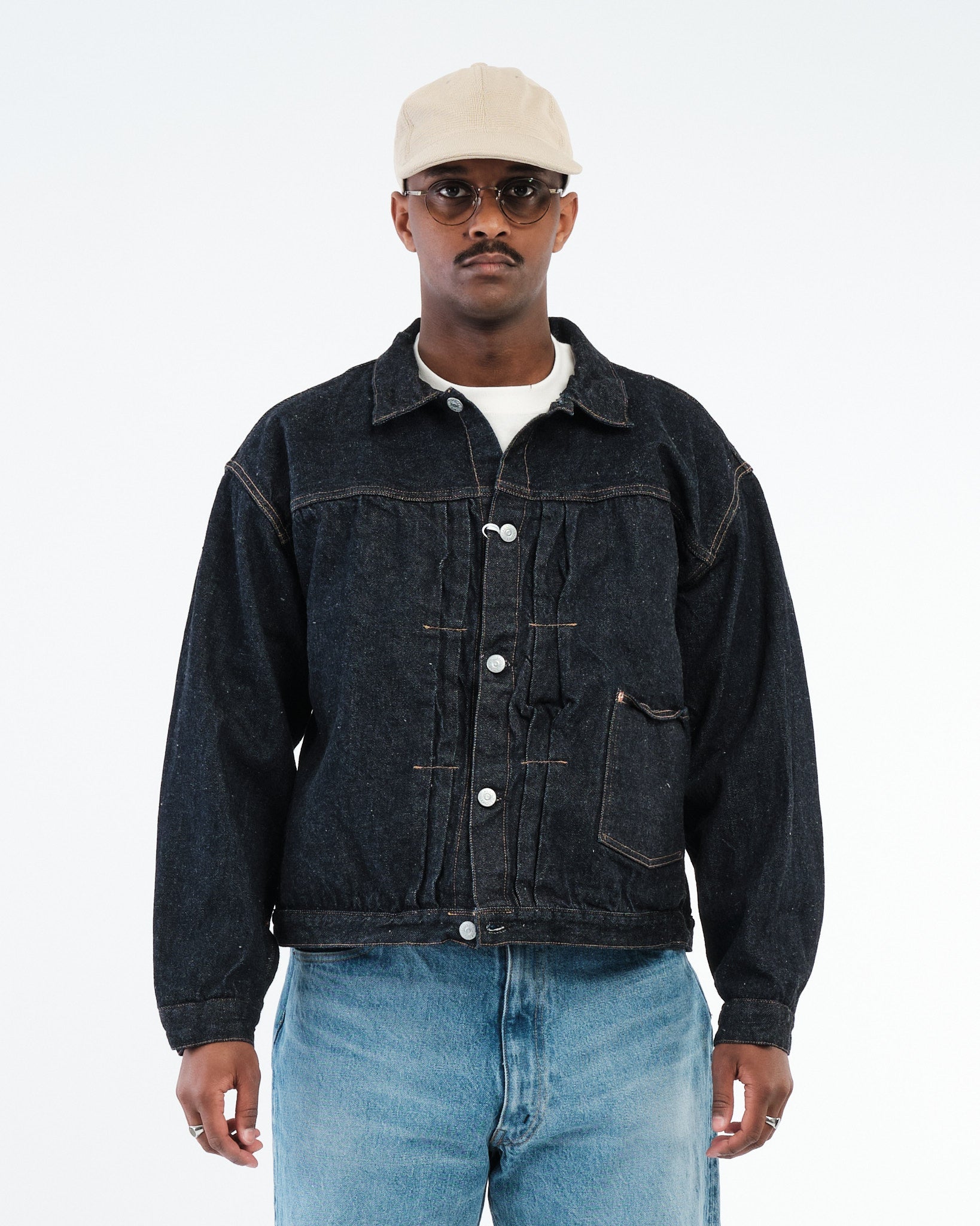 Tutustu takkiin, jota muut takkisi kadehtivat. KAPTAIN SUNSHINE Denim Tracker 1P -takki Indigo One Wash yhdistää karun perinnön ja hienostuneen käsityön yhdeksi rentouttavaksi kerrokseksi. Inspiroituneena 1940-luvun työvaatteista, siinä on tuo laatikkomainen istuvuus, laskostettu etuosa ja yksi rintatasku minimalistisen vintage-ilmeen aikaansaamiseksi. Yhden pesun 13,5 unssin reunasilkkidenimi tuntuu pehmeältä heti alusta, mutta on tarpeeksi kestävä kestämään vuosien käytön. Todellinen ”pukeudu-kaikkialle”-kappale, jolla on japanilaiset juuret ja runsaasti luonnetta.