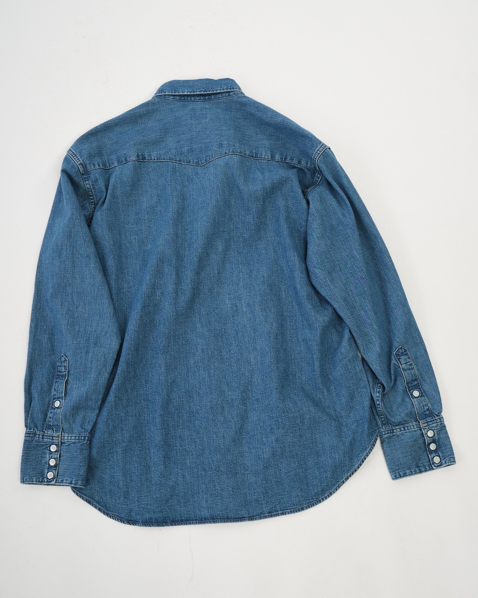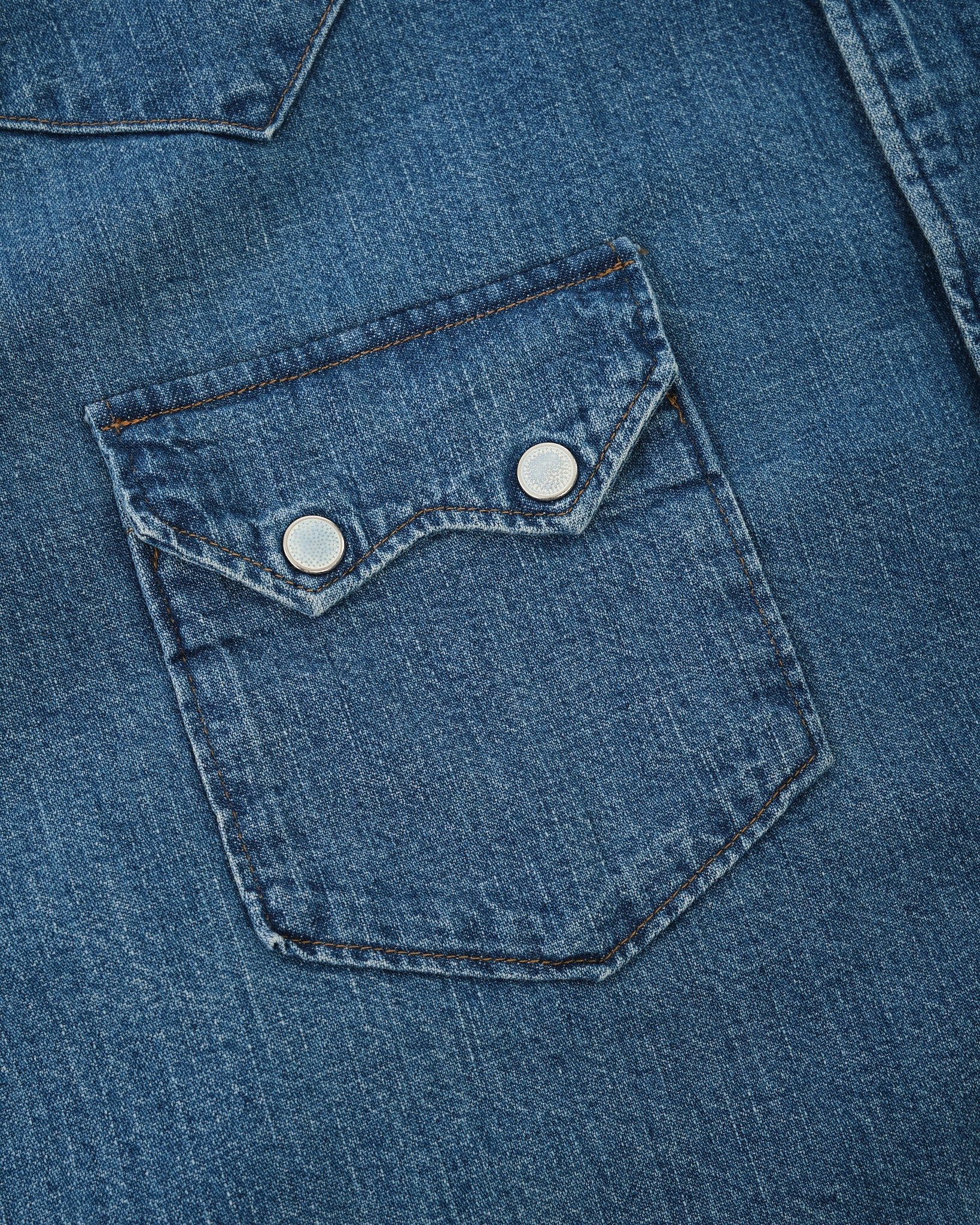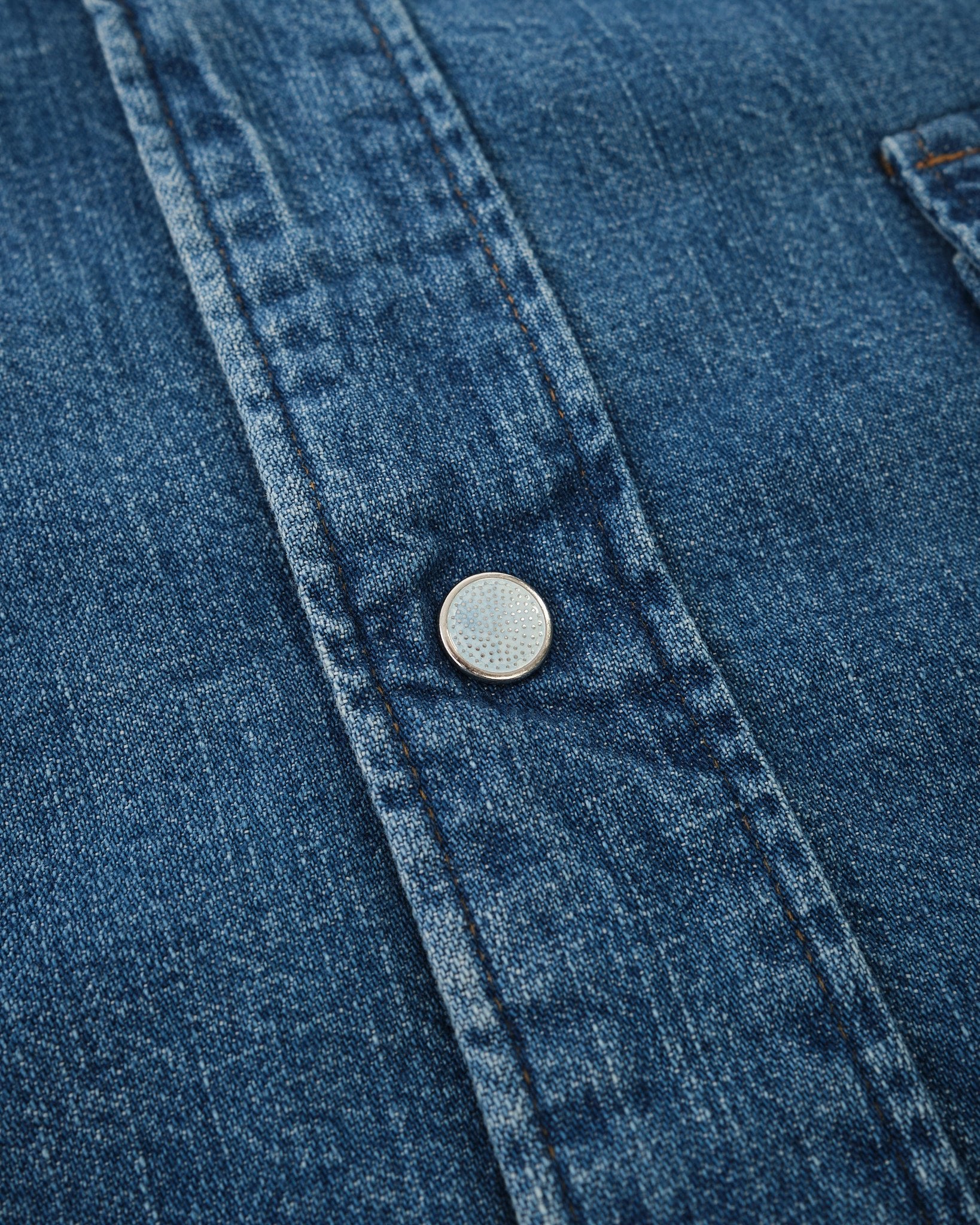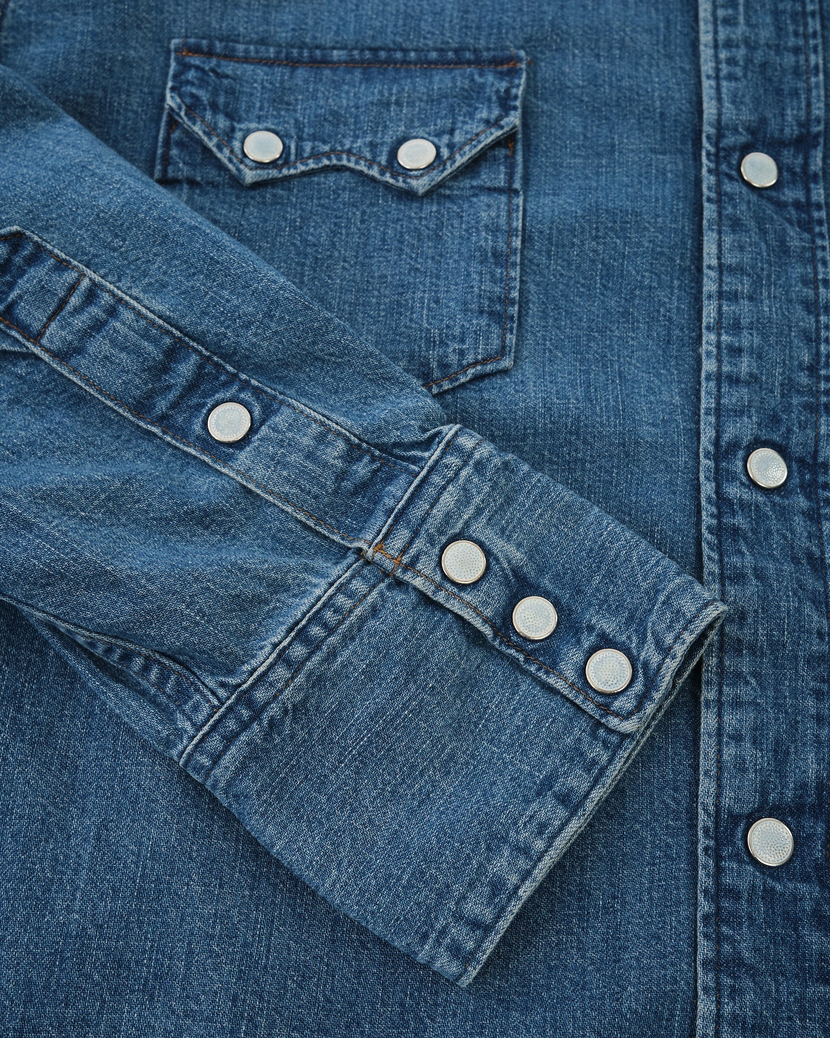 Premium japanilainen denim kestävyyden ja mukavuuden vuoksi Käytetty Wash -viimeistely luonnollisesti kuluneen ilmeen aikaansaamiseksi Regular fit tarjoaa mukavuutta ja liikkumisen vapautta Nappikiristysnepparit ja terävä yoke aitoa Lännen tyyliä varten Kaksi rintataskua nappiläpällä käytännöllisyyden vuoksi Nappikiristysnepparit säädettävän mukavuuden vuoksi Vahvistetut ompeleet lisääntyneen kestävyyden vuoksi Kaareva helma tasapainoisen siluetin aikaansaamiseksi Hienovarainen orSlow-branding hillityn estetiikan vuoksi Suunniteltu ja valmistettu Japanissa Tuotekoodi: 01-8124-95