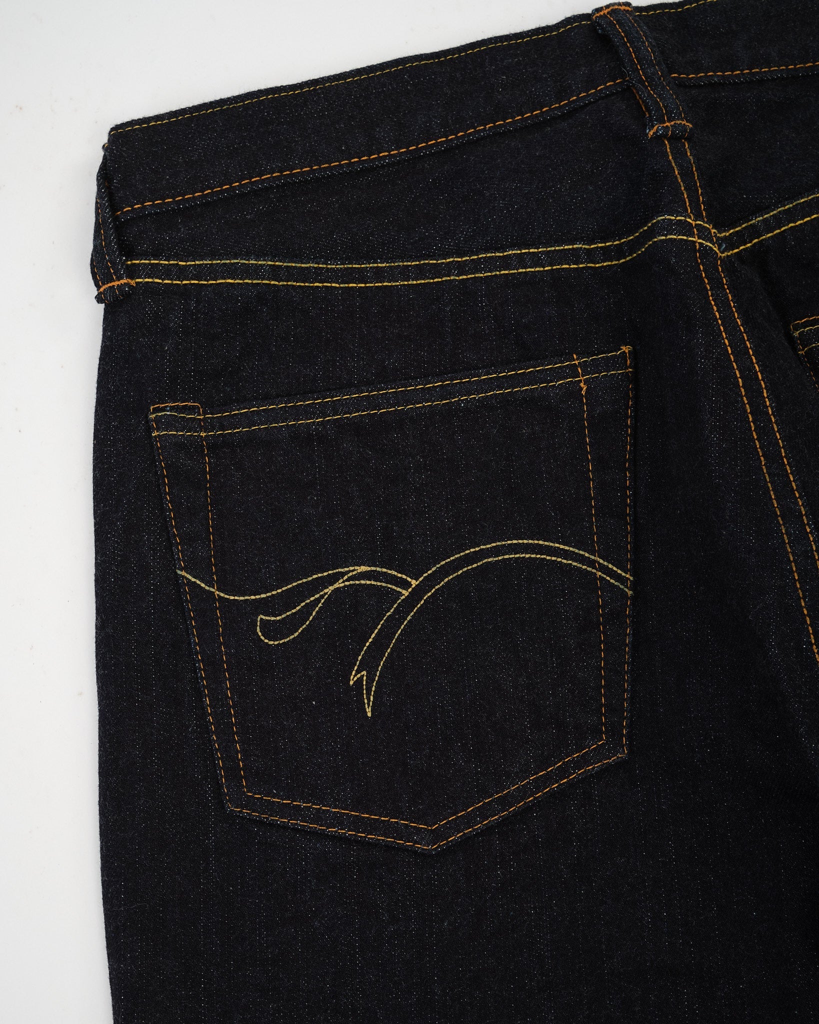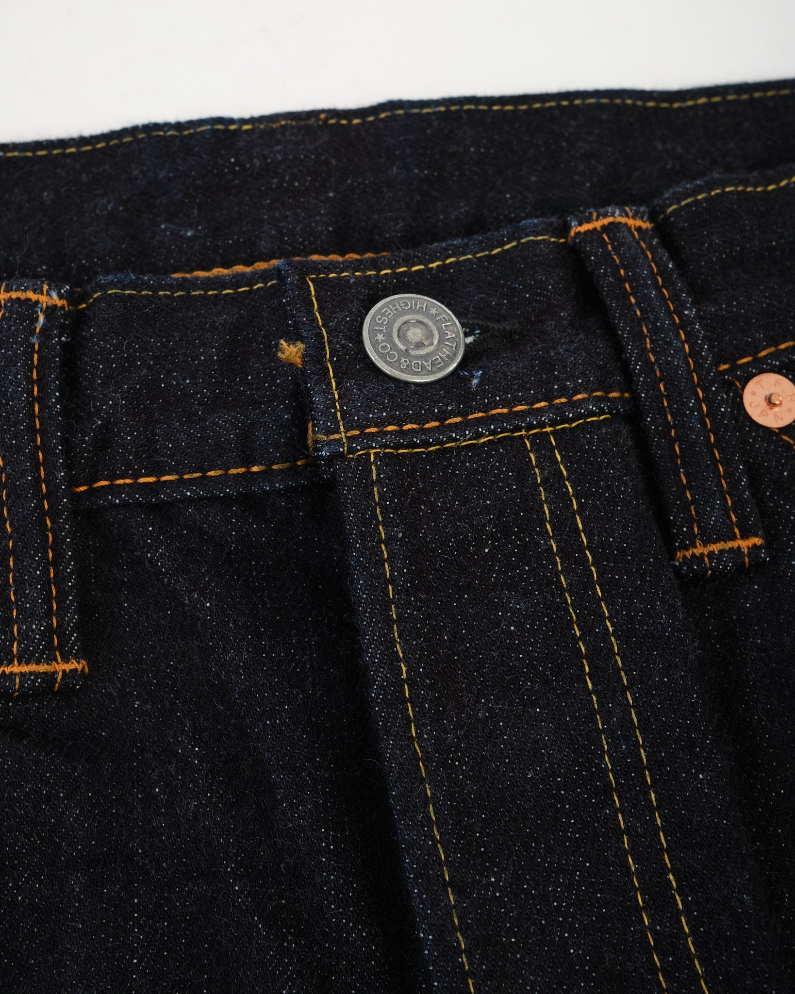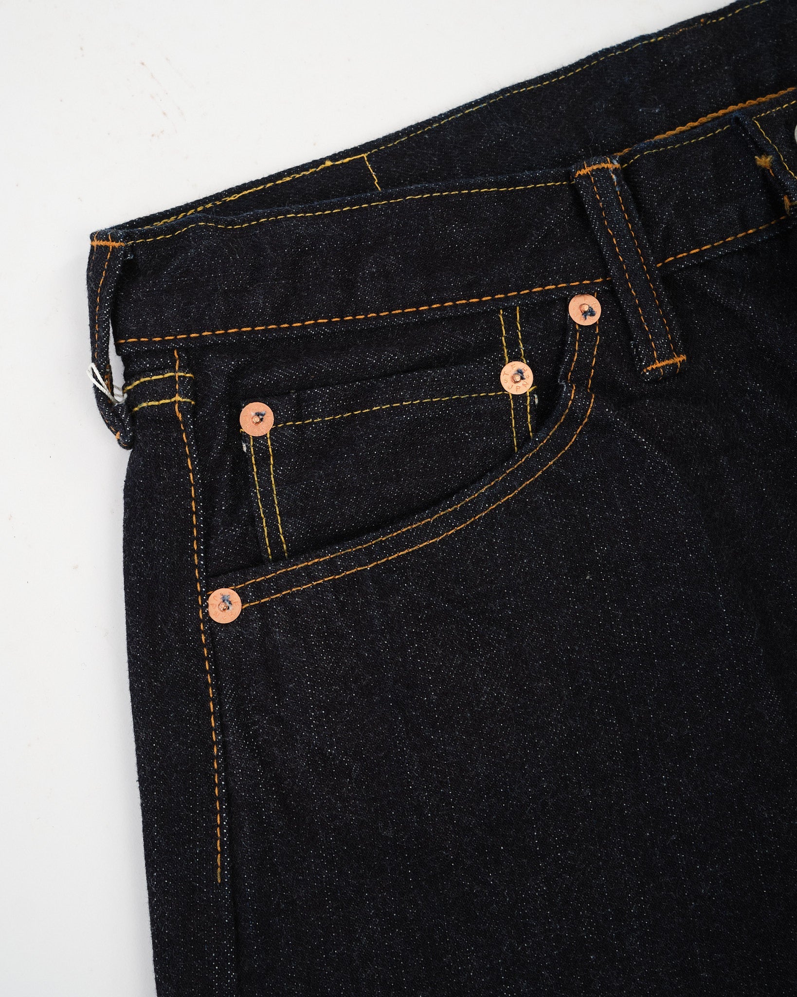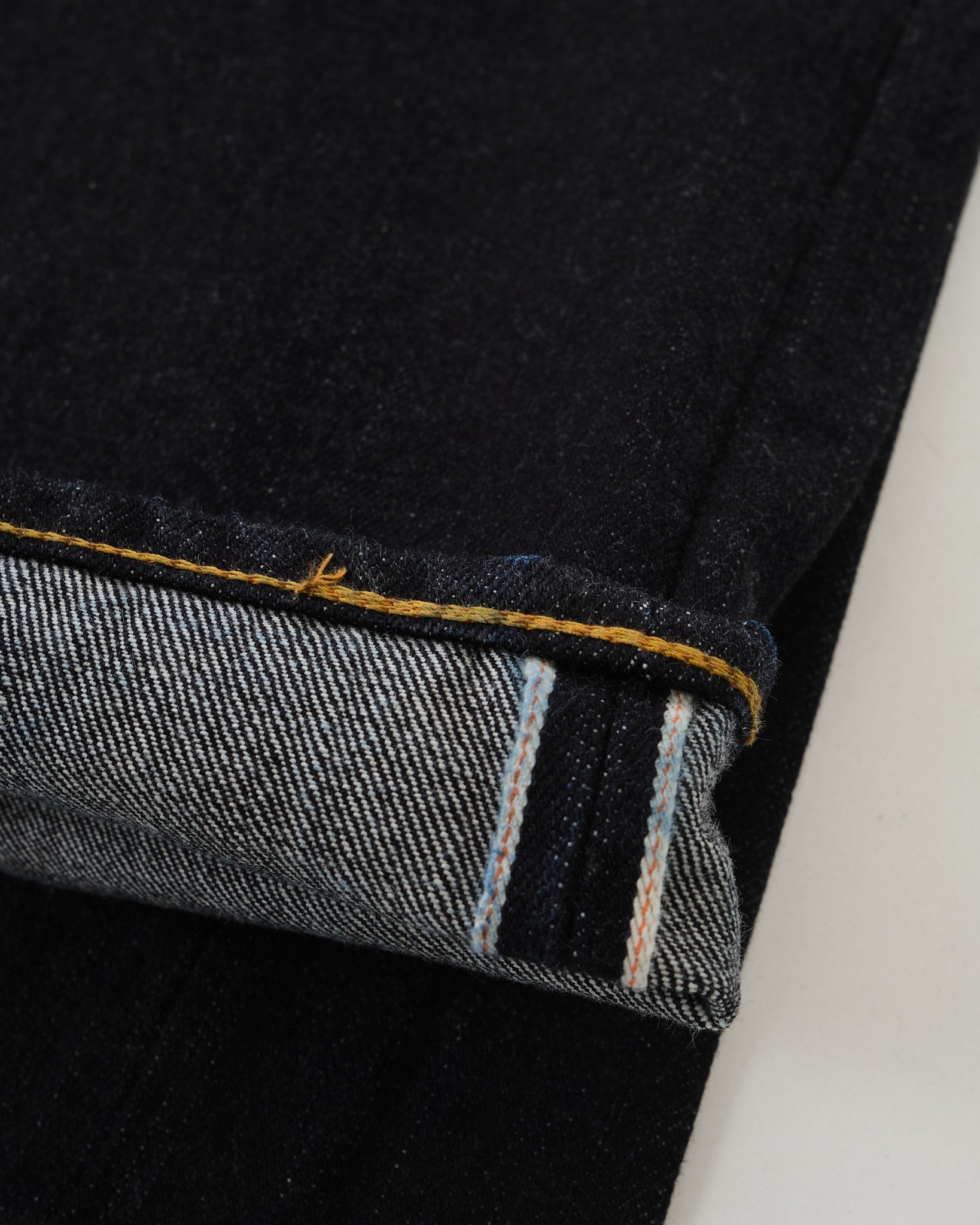 • 14,5 oz selväreunainen denim, kudottu perinteisillä sukkulaloimilla
