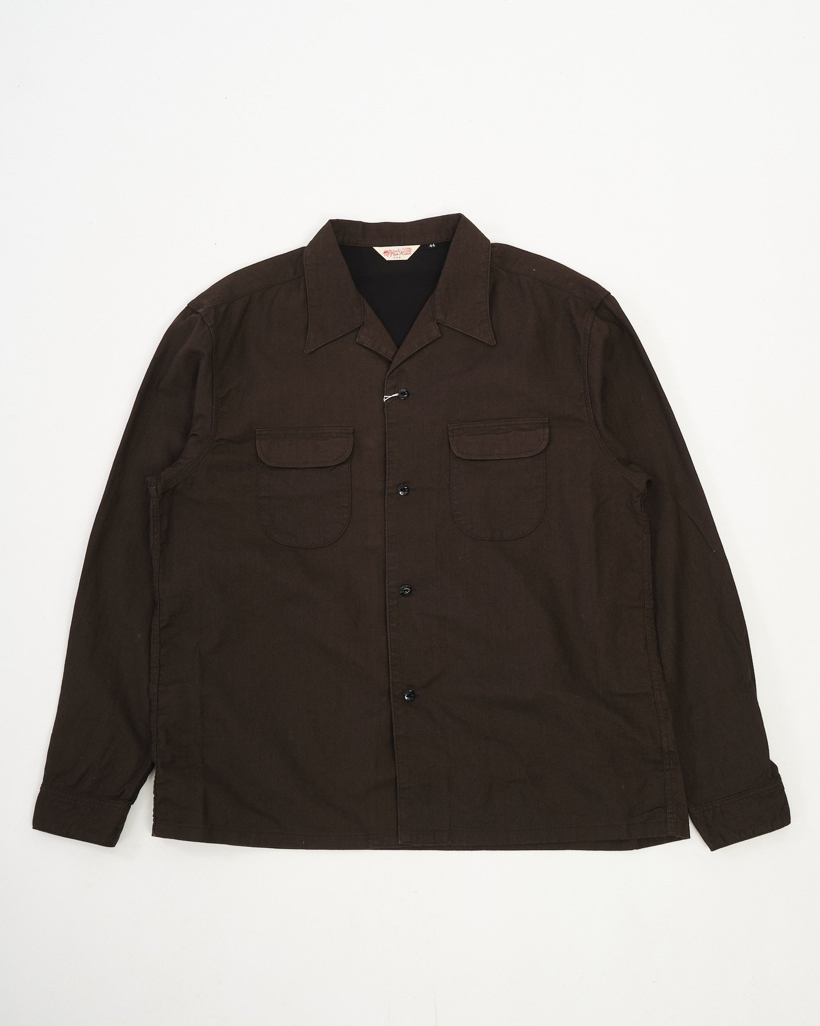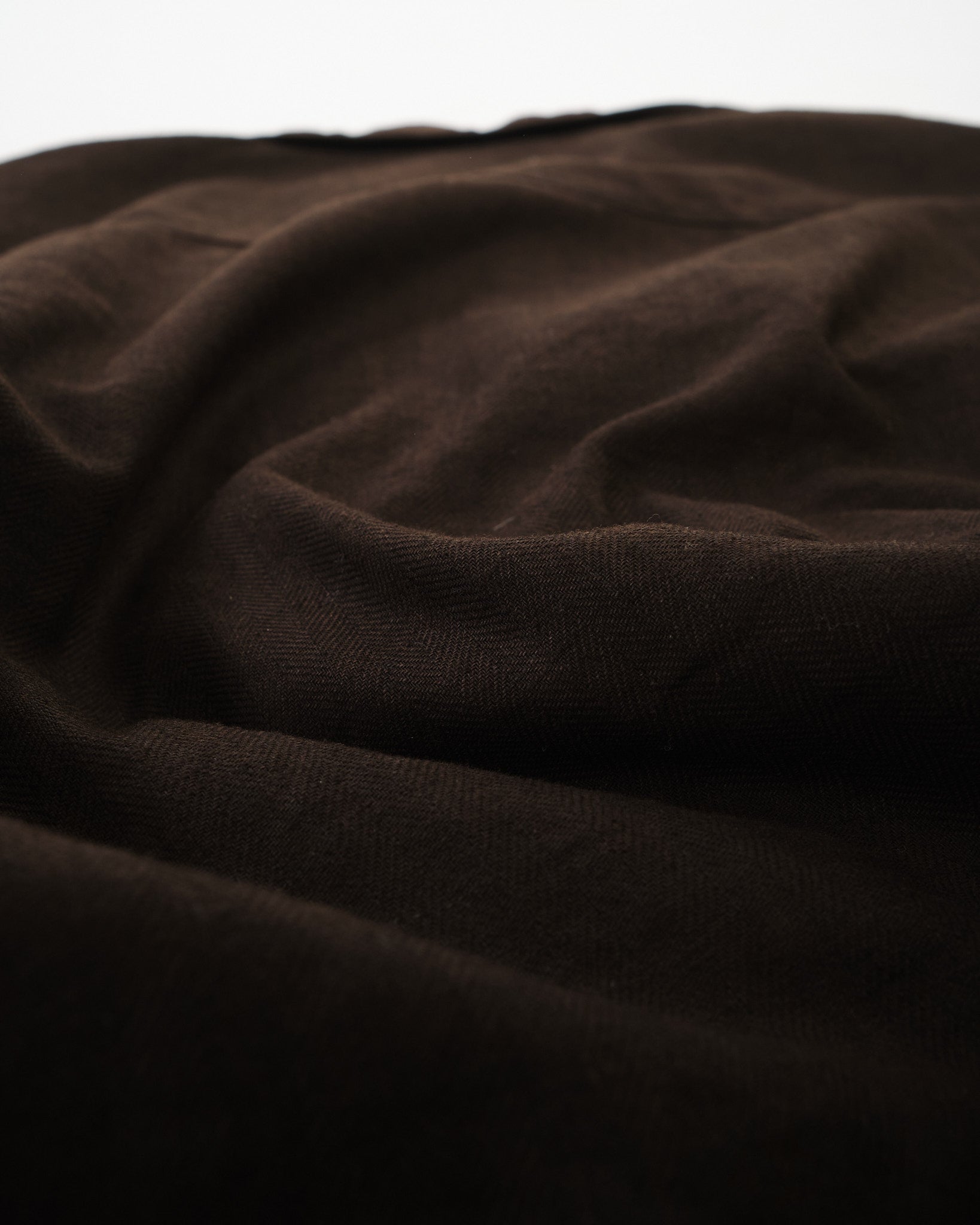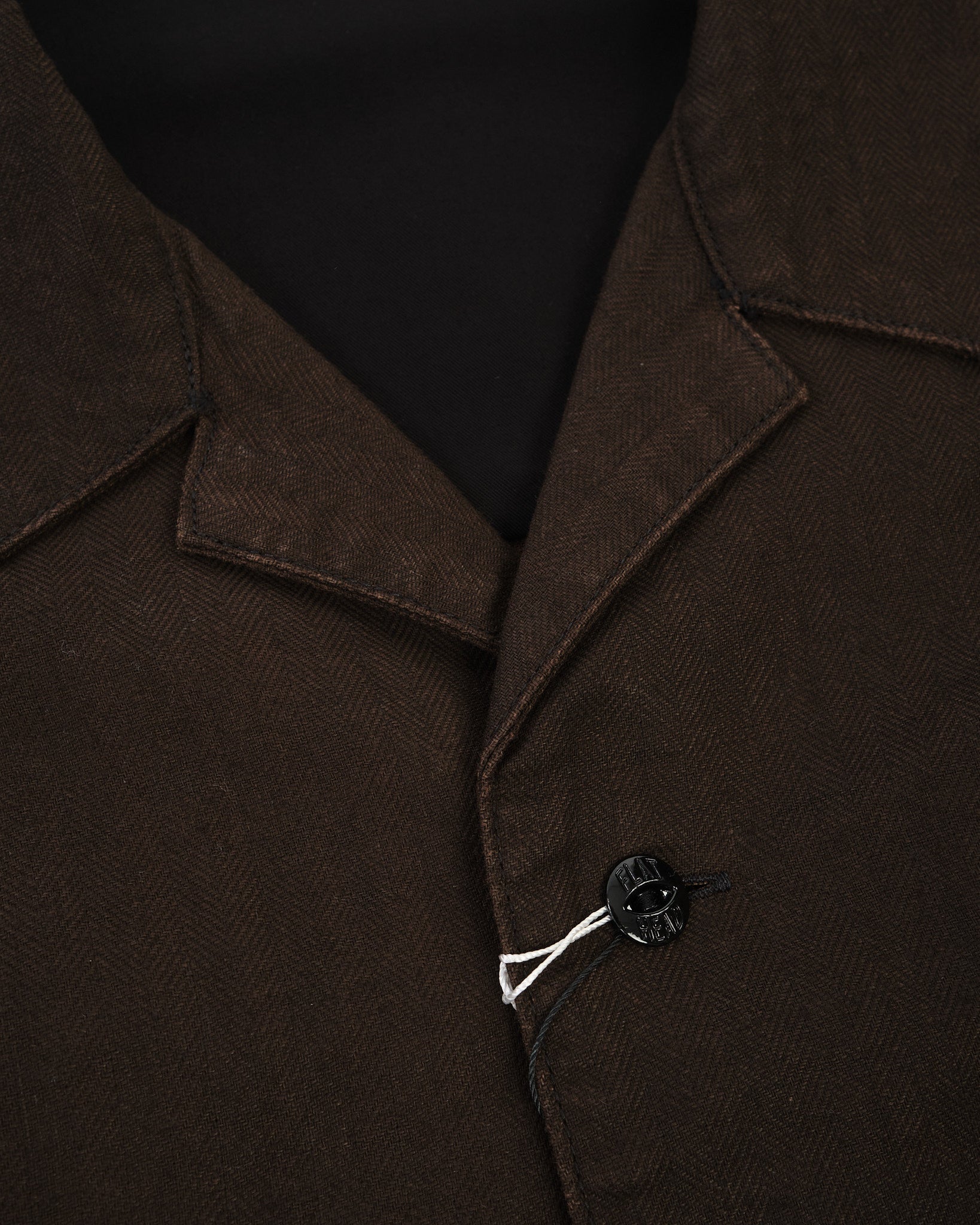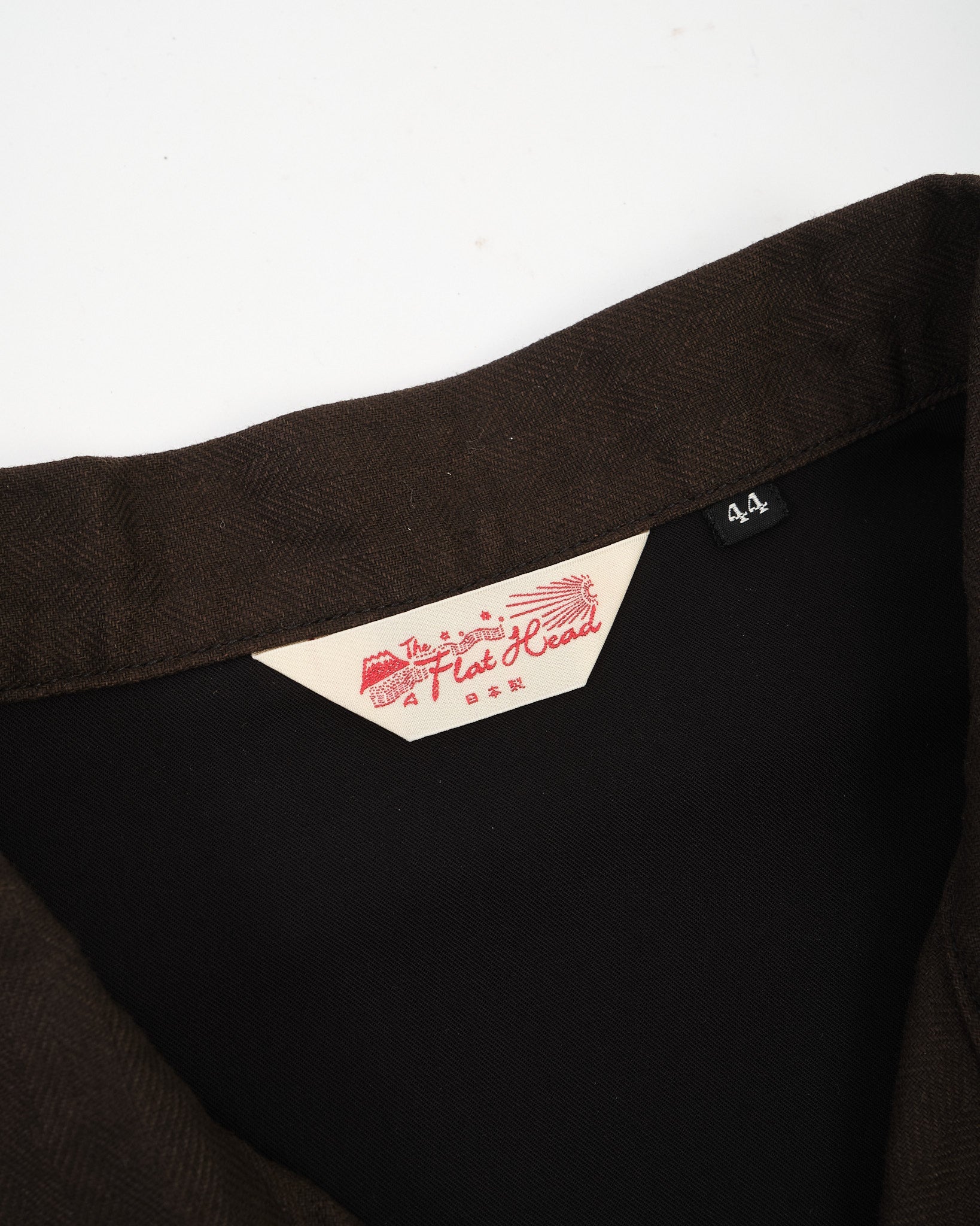 The cloth features a subtle herringbone structure that adds visual depth to the rich brown “Bengala” tone. Over time, the fabric develops a softer hand and a more personal character, reflecting The Flat Head’s focus on garments that evolve naturally through wear.