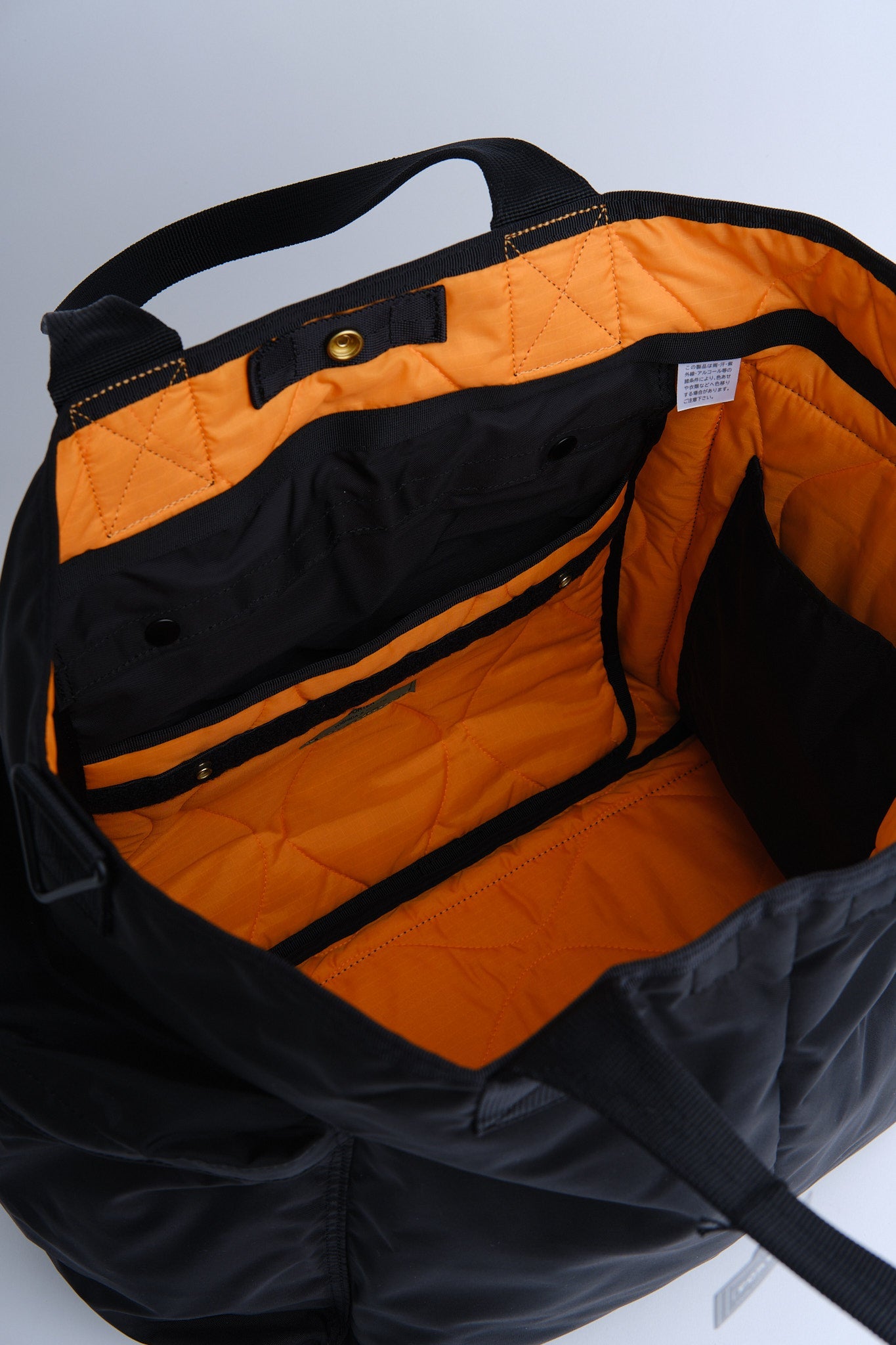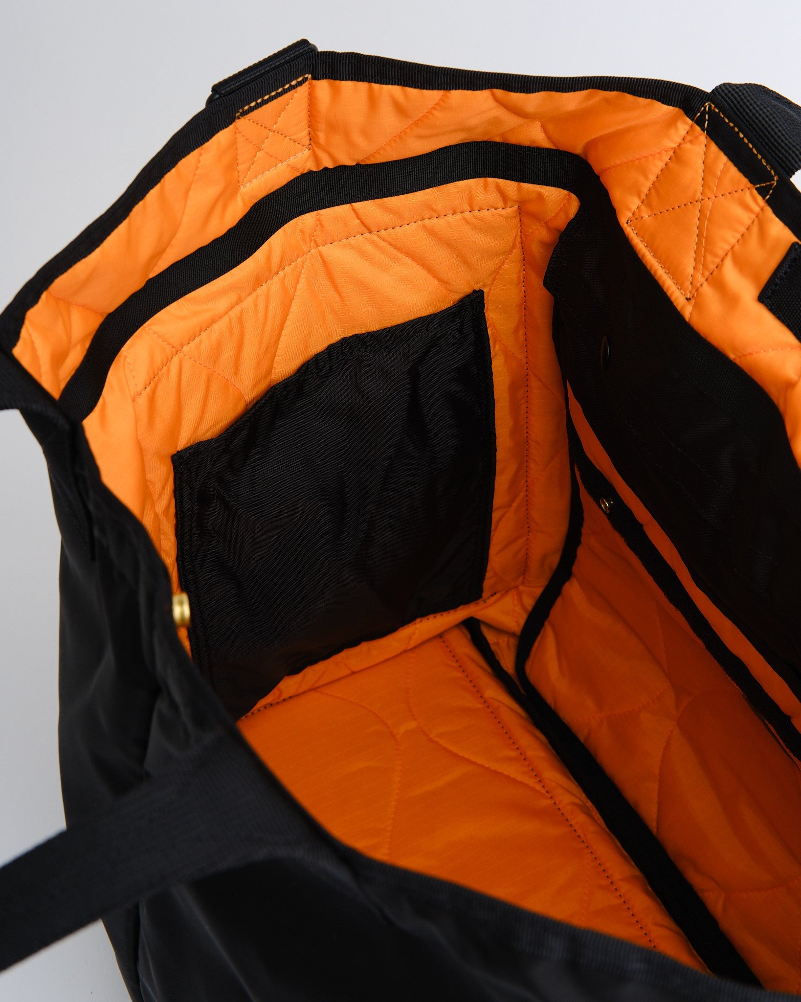 Valmistettu teollisuusluokan kankaasta, joka on kudottu 210 denierin 6 nylonia vahvalla langalla, jota alun perin käytettiin kumiveneissä, tämä laukku tarjoaa poikkeuksellista kestävyyttä. Sisusta on vuorattu hätäväri oranssilla, joka on saanut inspiraationsa sotilastakeista, ja ominaisuuksiin kuuluu tikattu ripstop-nylon lisäämään lujuutta.