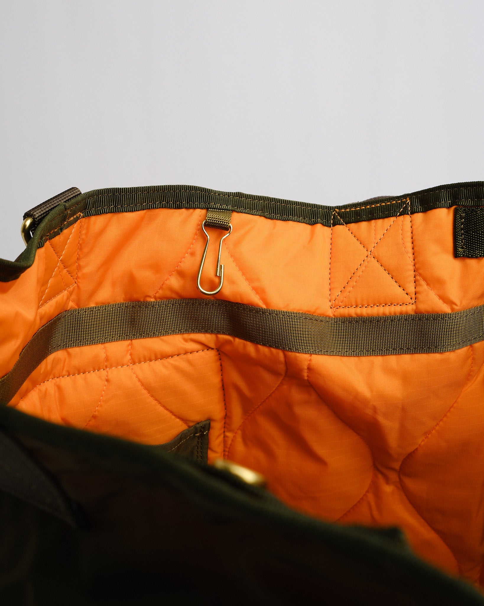 Valmistettu teollisuustason kankaasta, joka on kudottu 210 denierin 6 nylon vahvasta langasta, jota alun perin käytettiin kumiveneisiin, tämä laukku tarjoaa poikkeuksellista kestävyyttä. Sisusta on vuorattu hätäväri oranssilla, joka on saanut inspiraationsa sotilastakeista, ja ominaisuuksina on tikattu ripstop-nylon lisävahvuuden saamiseksi.