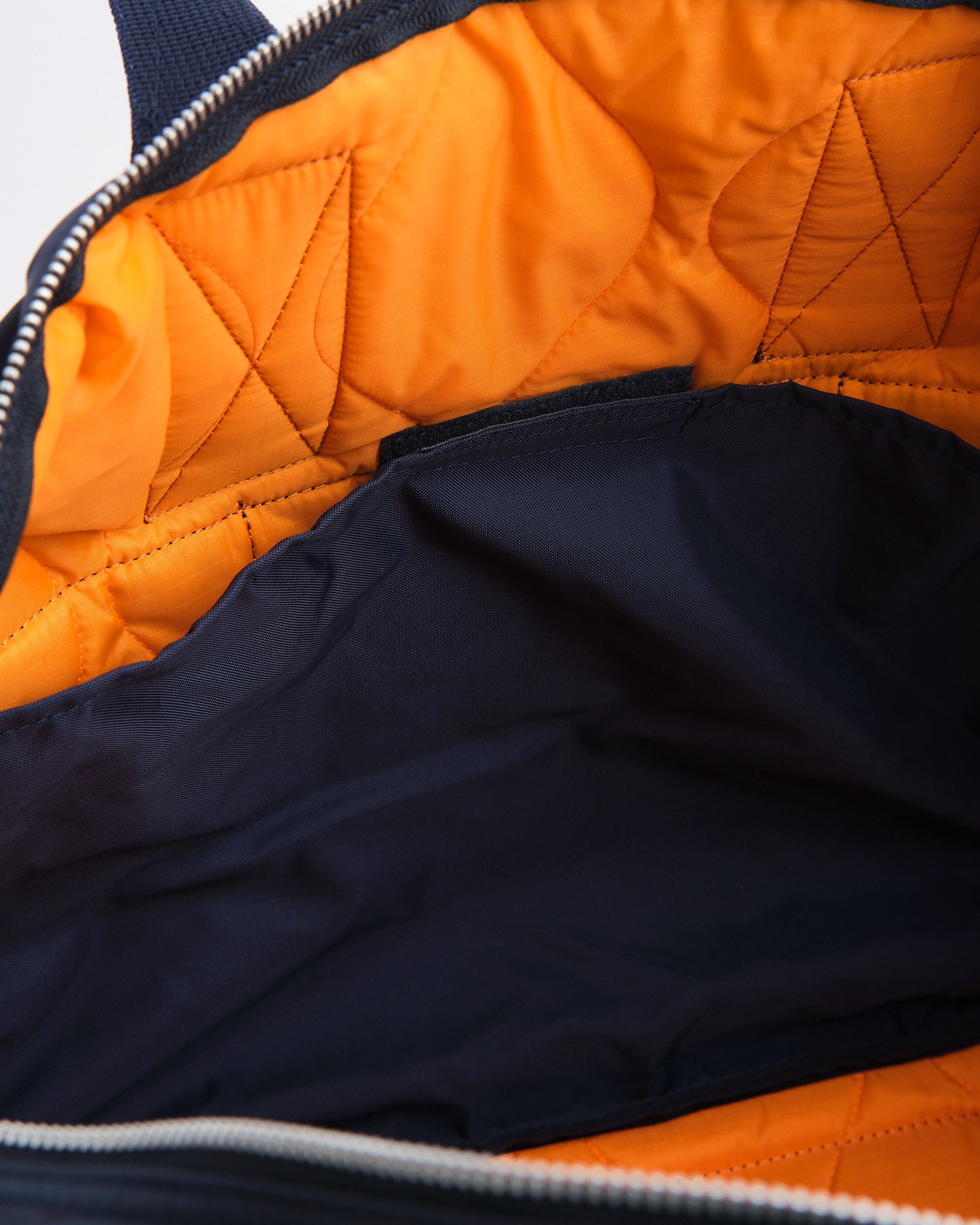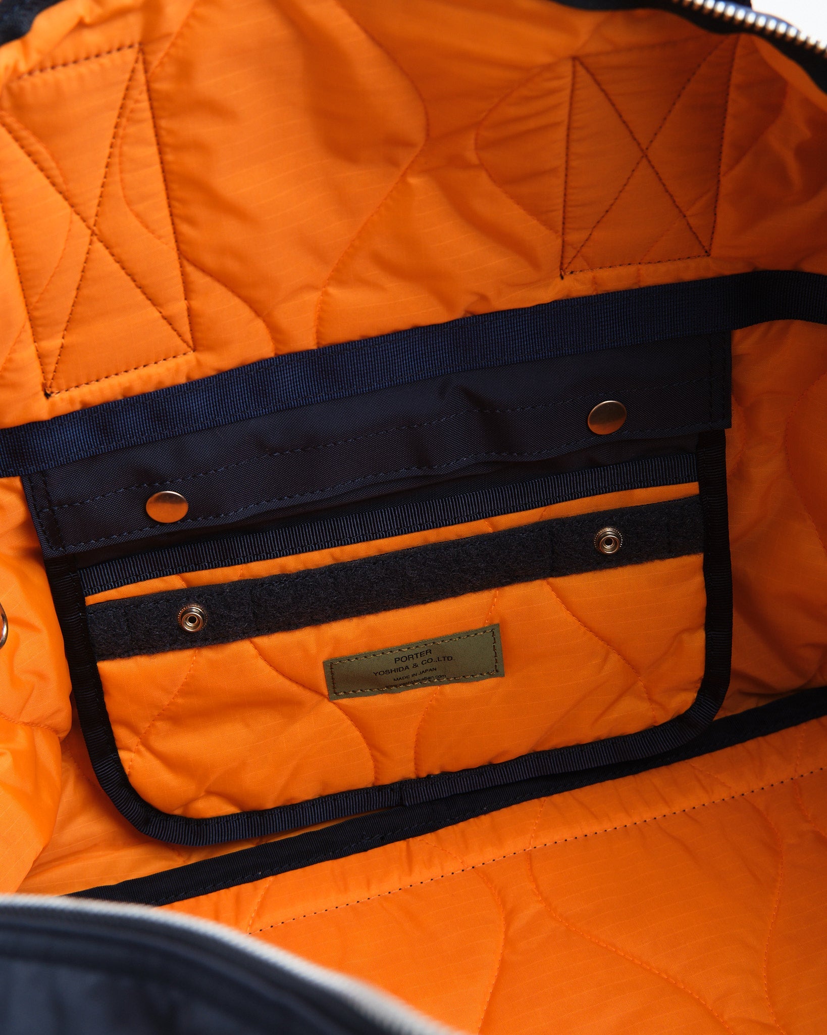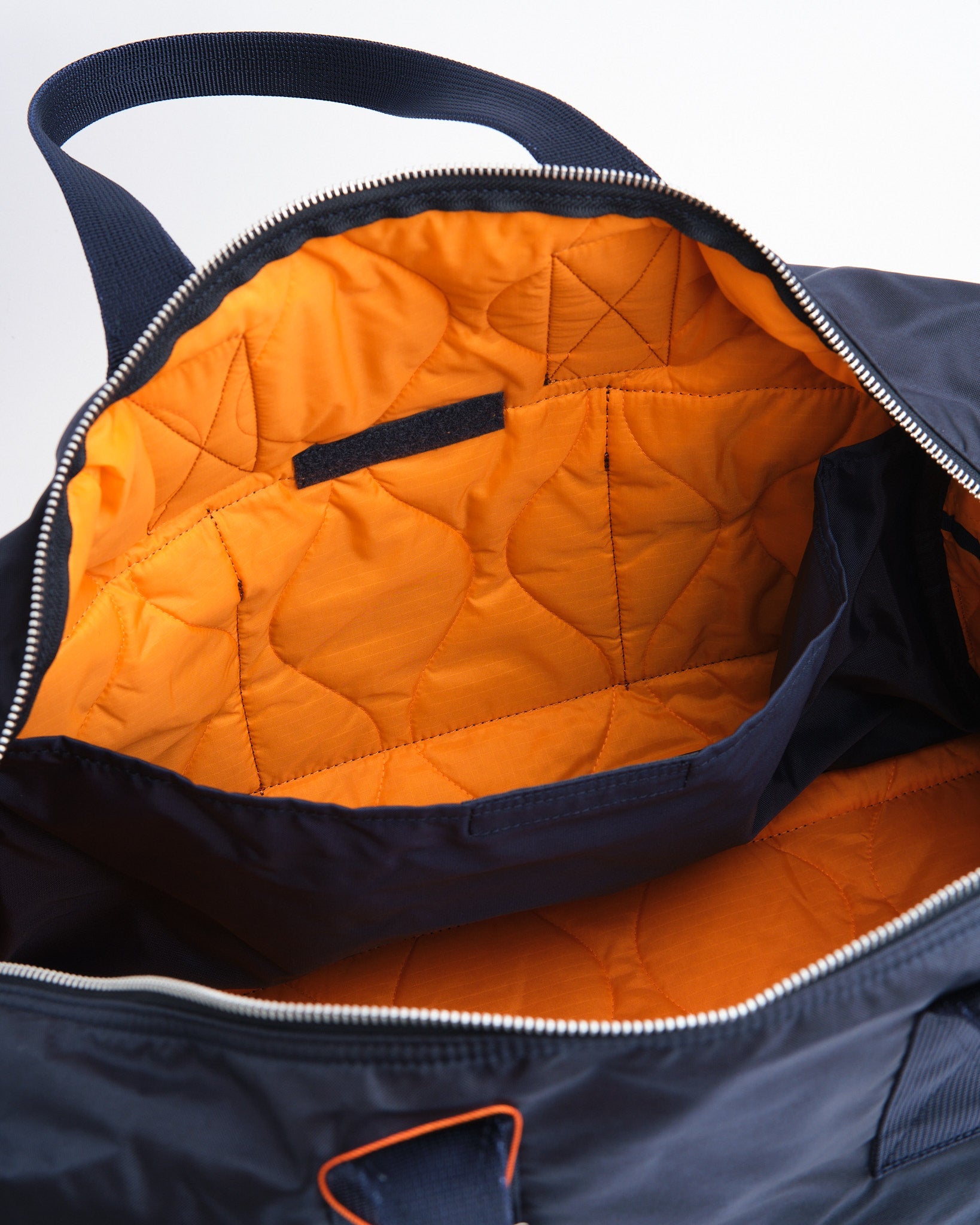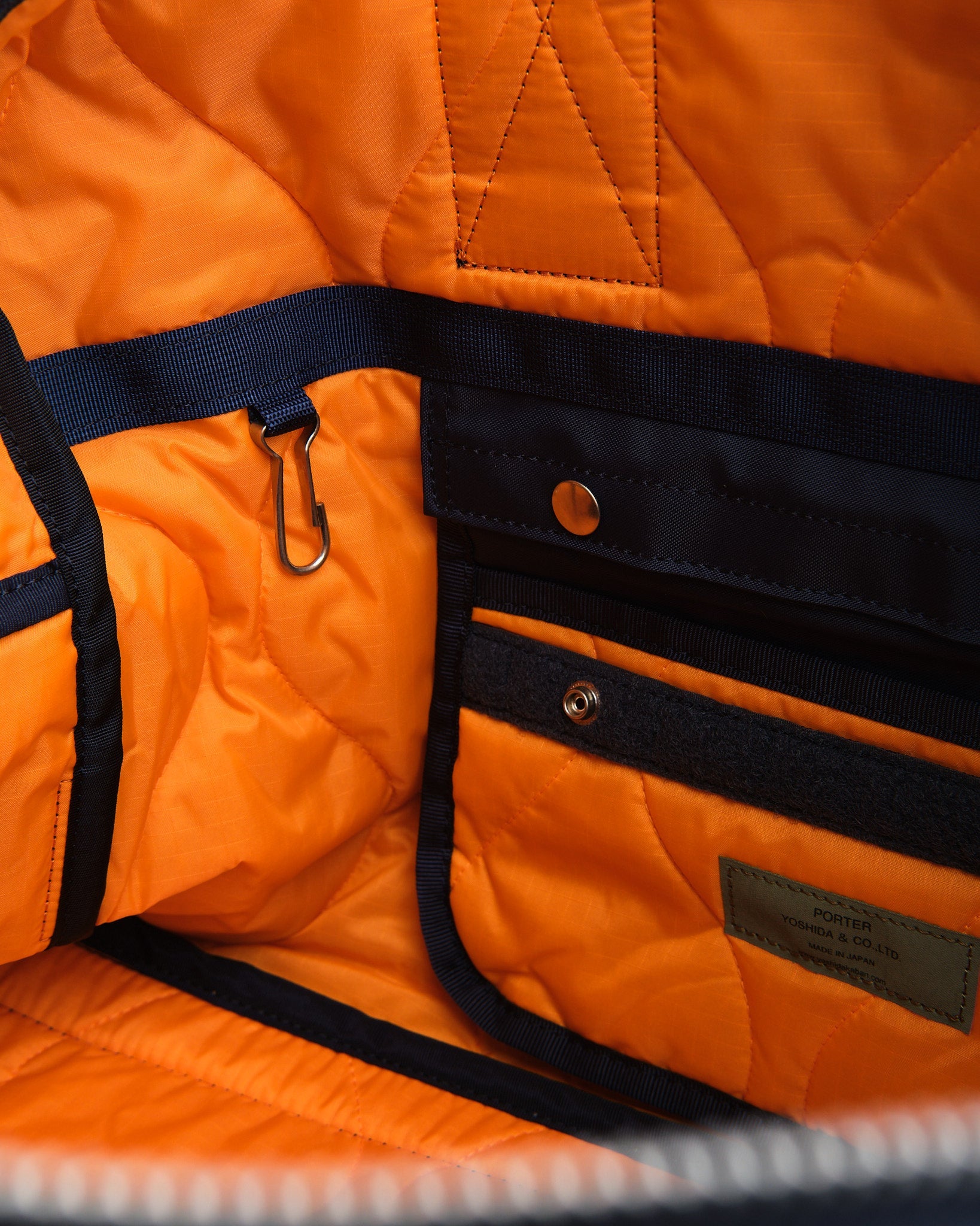 Valmistettu teollisuustason kankaasta, joka on kudottu 210 denierin 6 nylonia vahvalla langalla, alun perin käytetty kumiveneisiin, laukku on erittäin kestävä. Sisäpuoli kerskuu hätäväri oranssilla vuorilla, joka on inspiroitunut sotilastakkien vuorista, ja ominaisuuksiin kuuluu tikattu ripstop-nylon lisääntyneellä kestävyydellä.